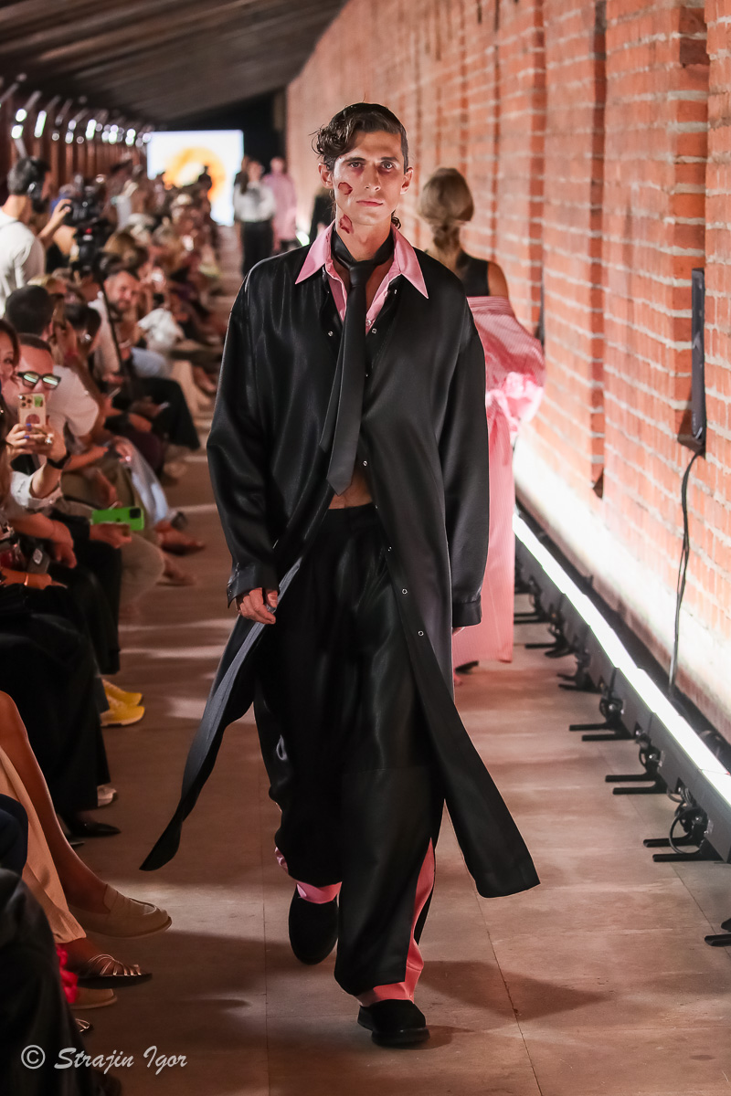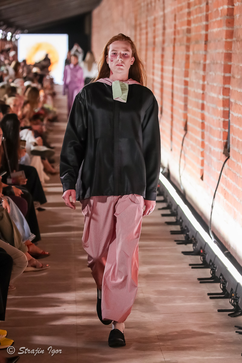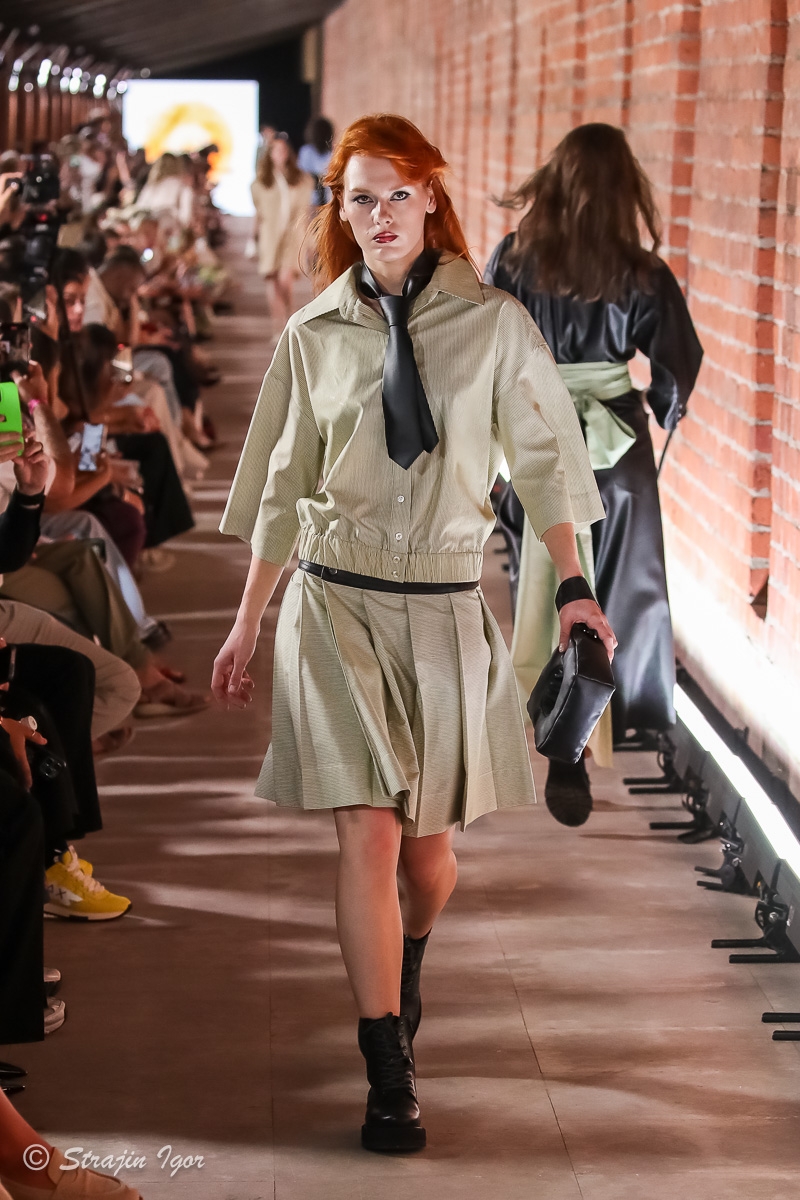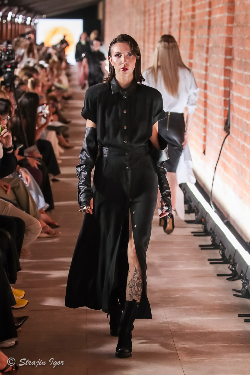 Бренд представил коллекцию «Couture», в основе которой — работа с экологичными материалами, такими как яблочная кожура и тенсель. Линейка построена на контрастах: классические рубашечные ткани сочетаются с черной яблочной кожей, создавая выразительное сочетание фактур.