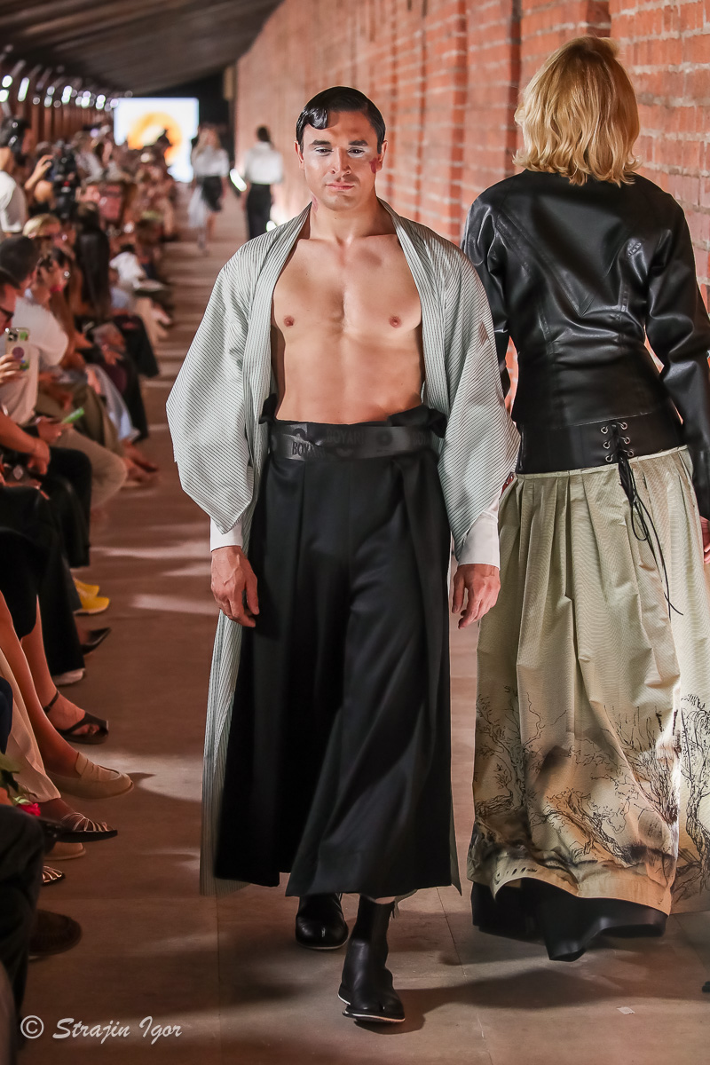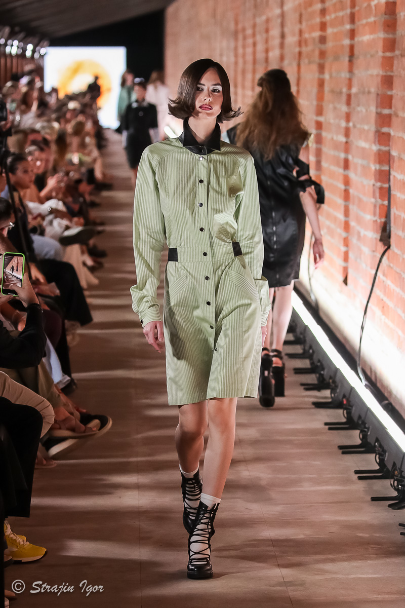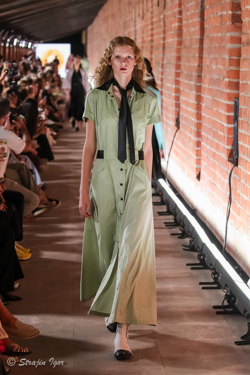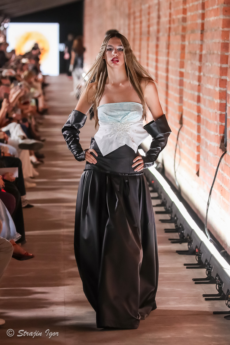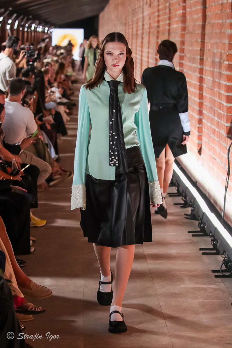 Бренд представил коллекцию «Couture», в основе которой — работа с экологичными материалами, такими как яблочная кожура и тенсель. Линейка построена на контрастах: классические рубашечные ткани сочетаются с черной яблочной кожей, создавая выразительное сочетание фактур.
