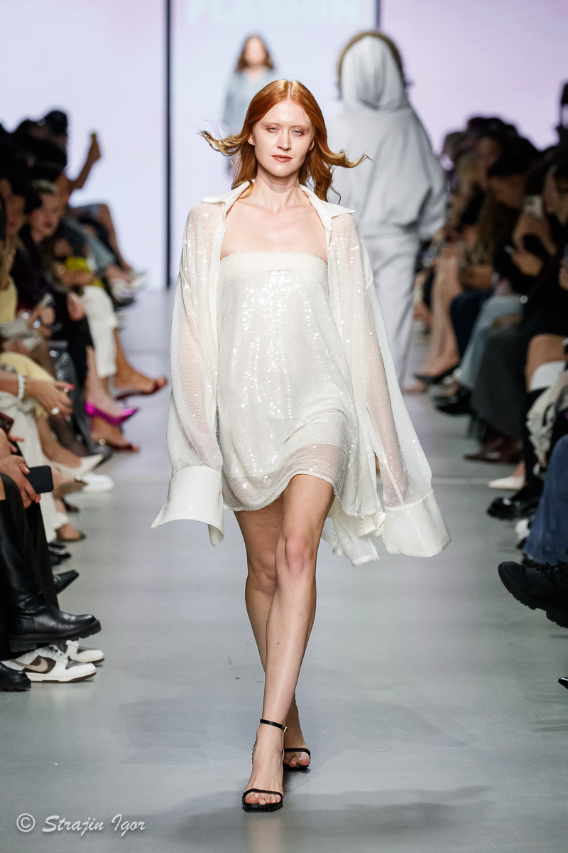 Команда работала с разнообразными силуэтами — от облегающих до свободных форм. В коллекции использовались экомех, шёлк, кружево и трикотаж. Нейтральная палитра дополнена яркими акцентами, среди которых выделяется модель шубы с неоново-зелёными переливами.