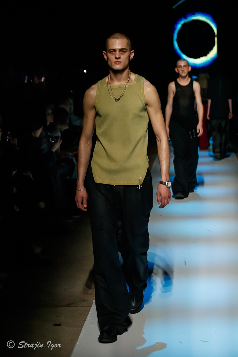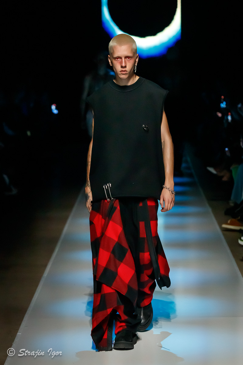 Принцип совместить несовместимое стал ключевым при создании коллекции SOLIS FINIS — сочетания блестящих и матовых тканей, красной клетки и тафты, шерсти и нейлона. Основой линейки стали стритвир и эстетика гранжа.