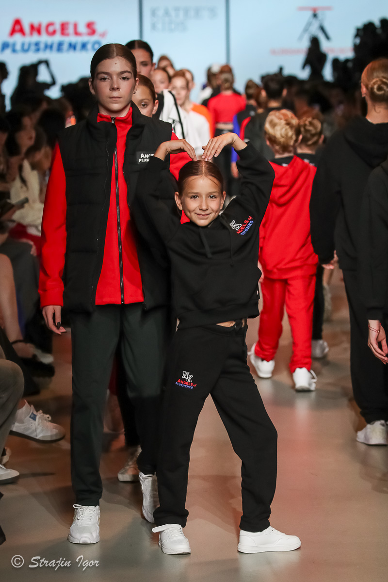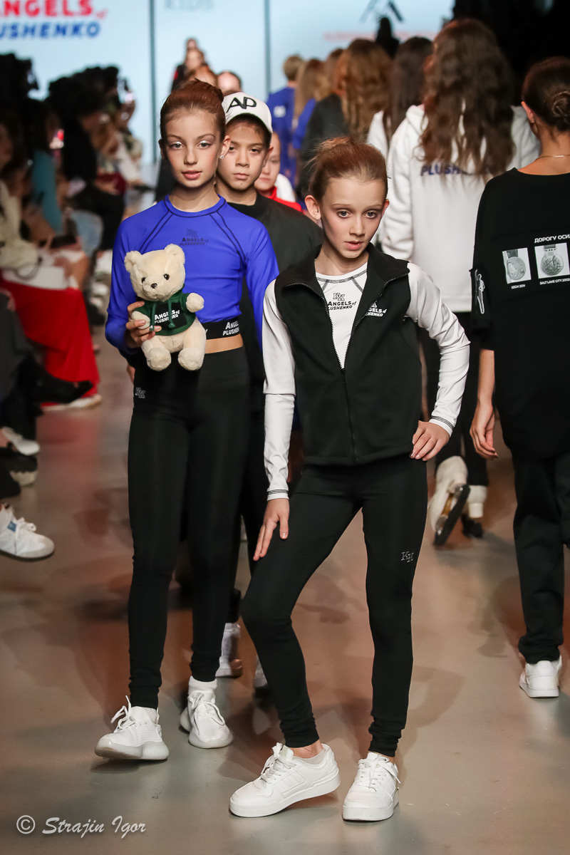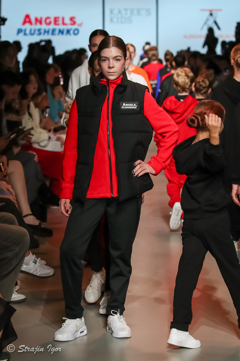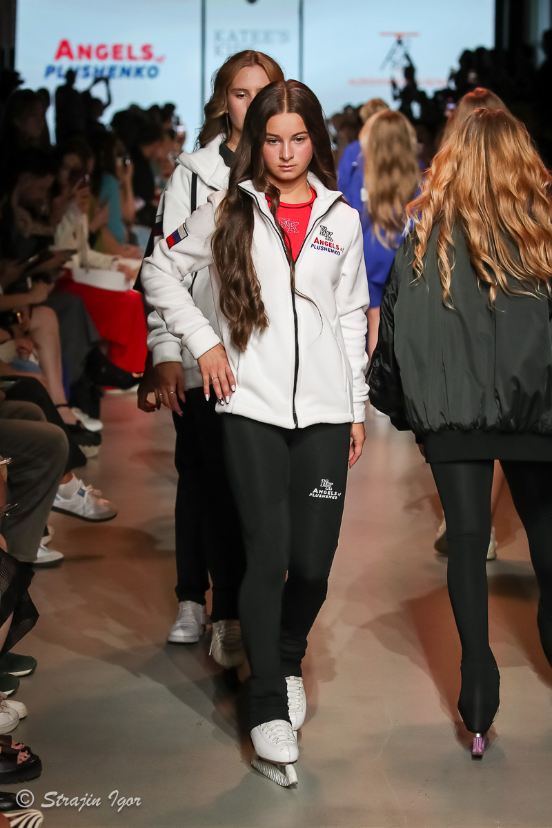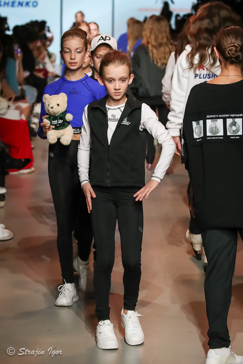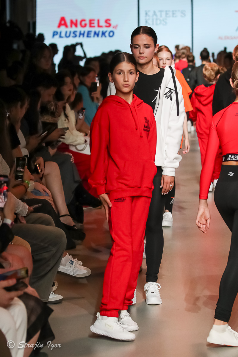 Открыли показ образы из линейки в стиле кэжуал для детей и подростков. Далее модели вышли в образах из коллаборации KATEE’S KIDS & Angels of Plushenko, при создании которой команда вдохновлялась фигурным катанием и спортивными достижениями чемпиона. Также ярким акцентом в образах стала профессиональная экипировка KATEE’S KIDS x Angels of Plushenko, разработанная для воспитанников Академии фигурного катания Евгения Плющенко с учётом потребностей спортсменов.