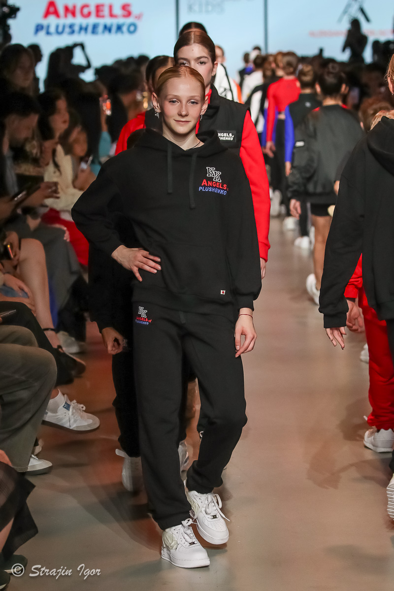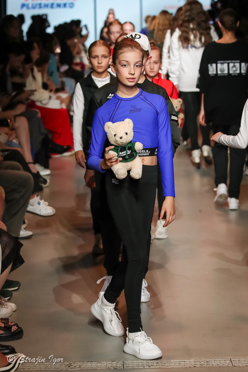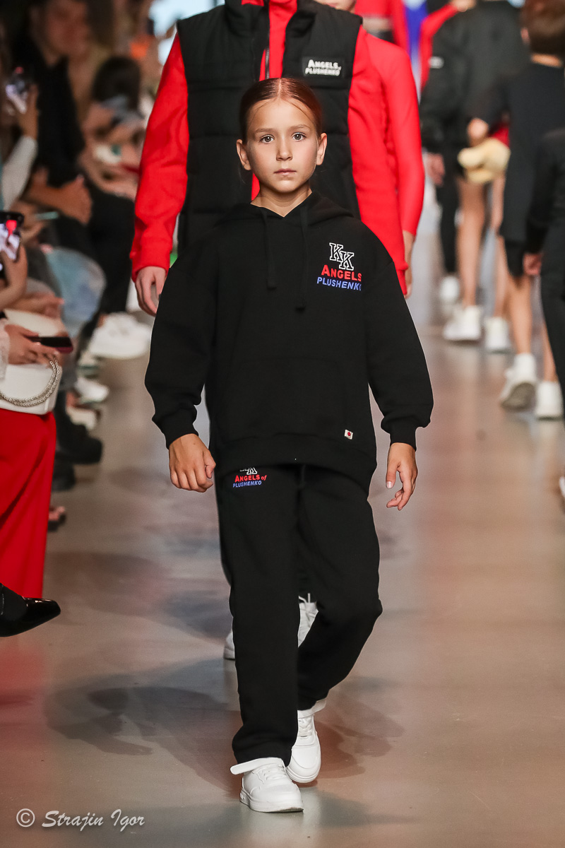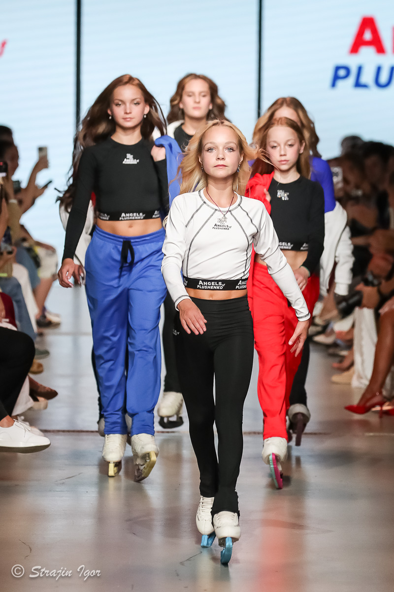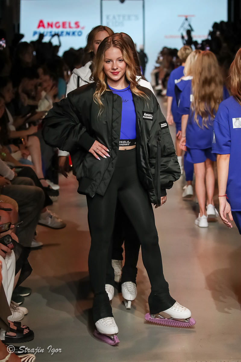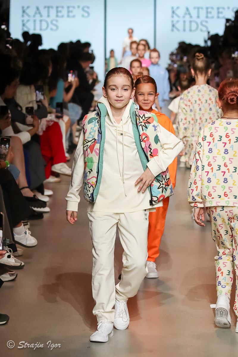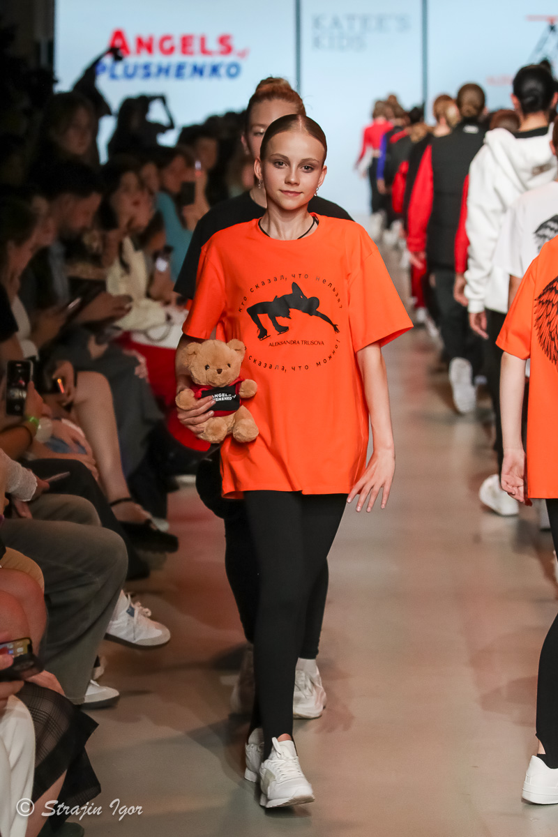 Открыли показ образы из линейки в стиле кэжуал для детей и подростков. Далее модели вышли в образах из коллаборации KATEE’S KIDS & Angels of Plushenko, при создании которой команда вдохновлялась фигурным катанием и спортивными достижениями чемпиона. Также ярким акцентом в образах стала профессиональная экипировка KATEE’S KIDS x Angels of Plushenko, разработанная для воспитанников Академии фигурного катания Евгения Плющенко с учётом потребностей спортсменов.