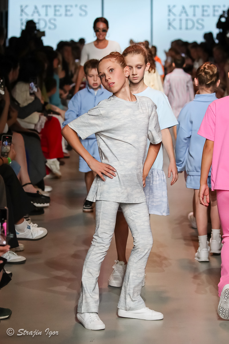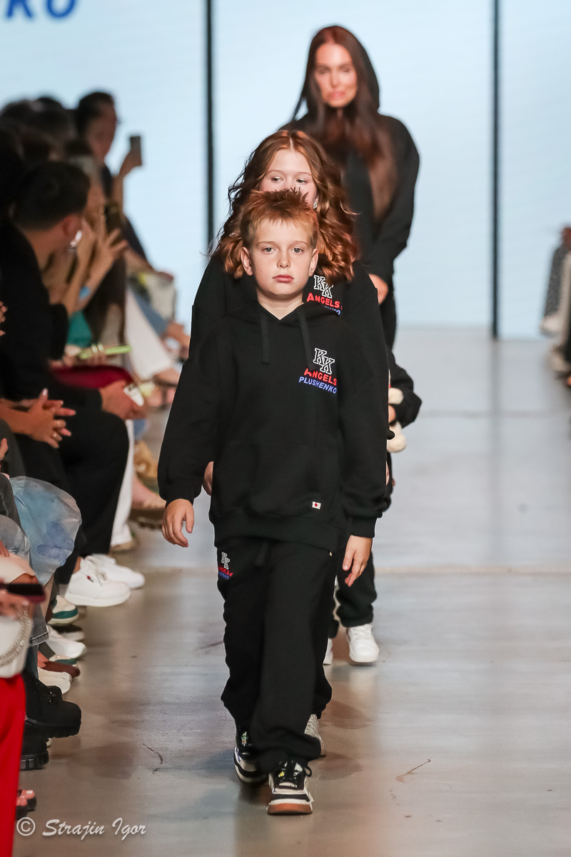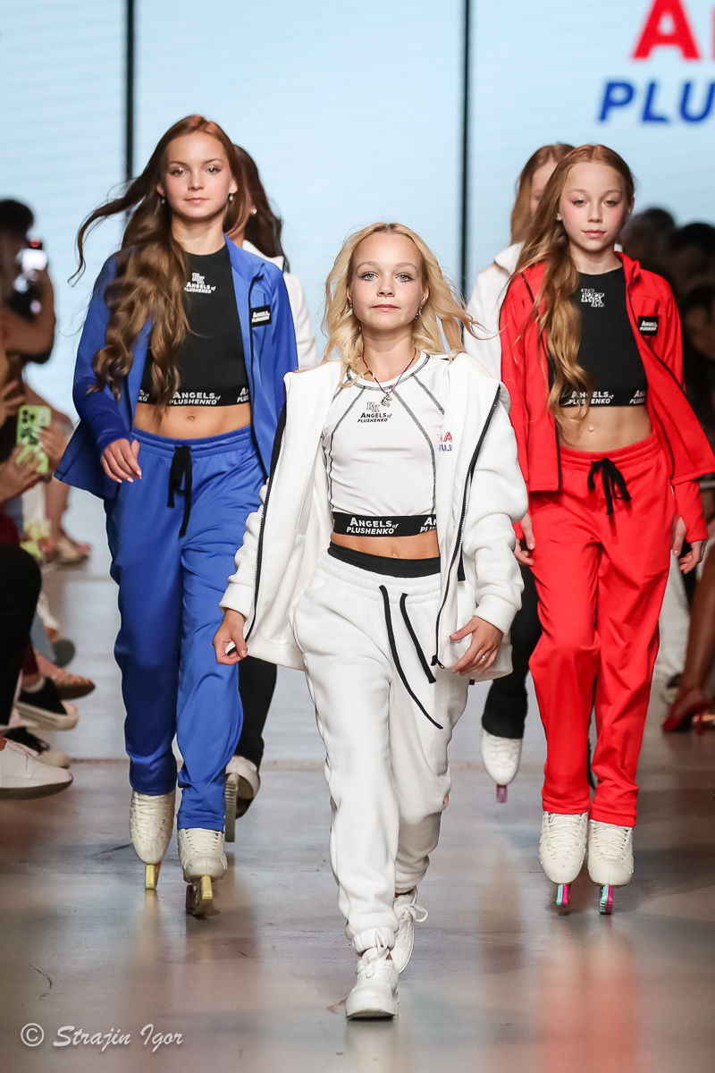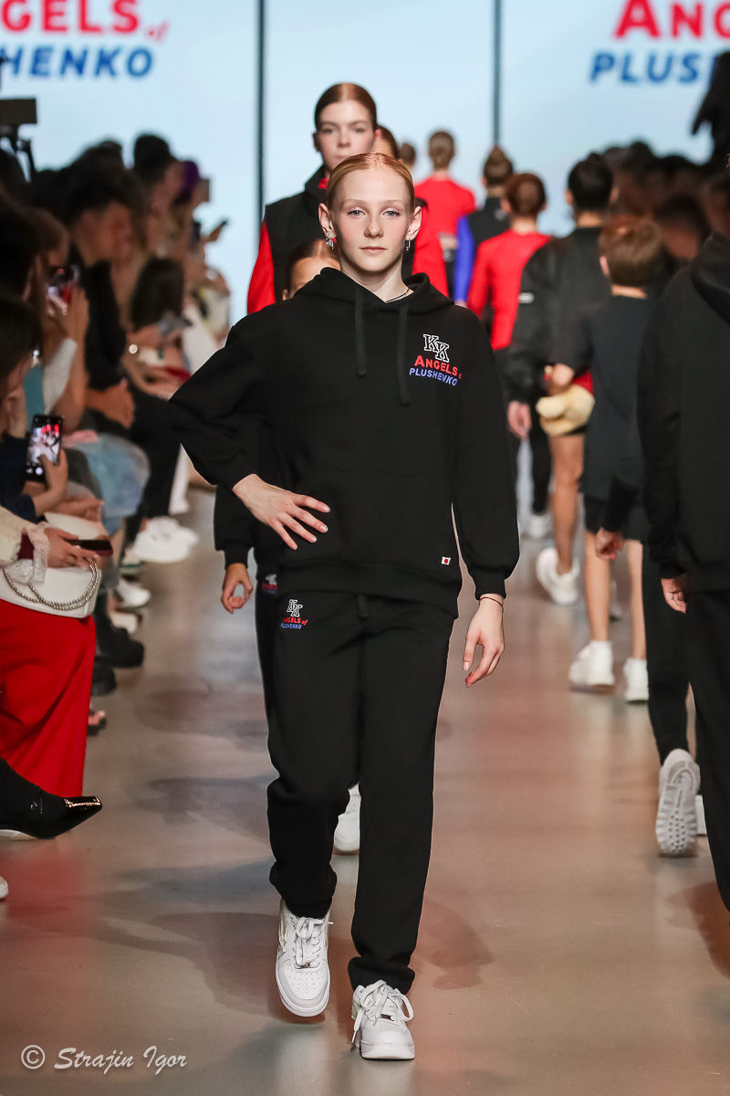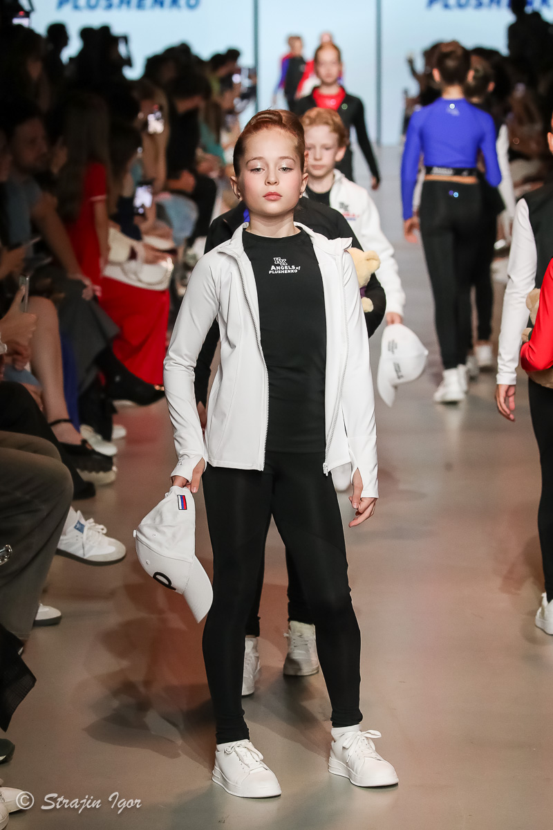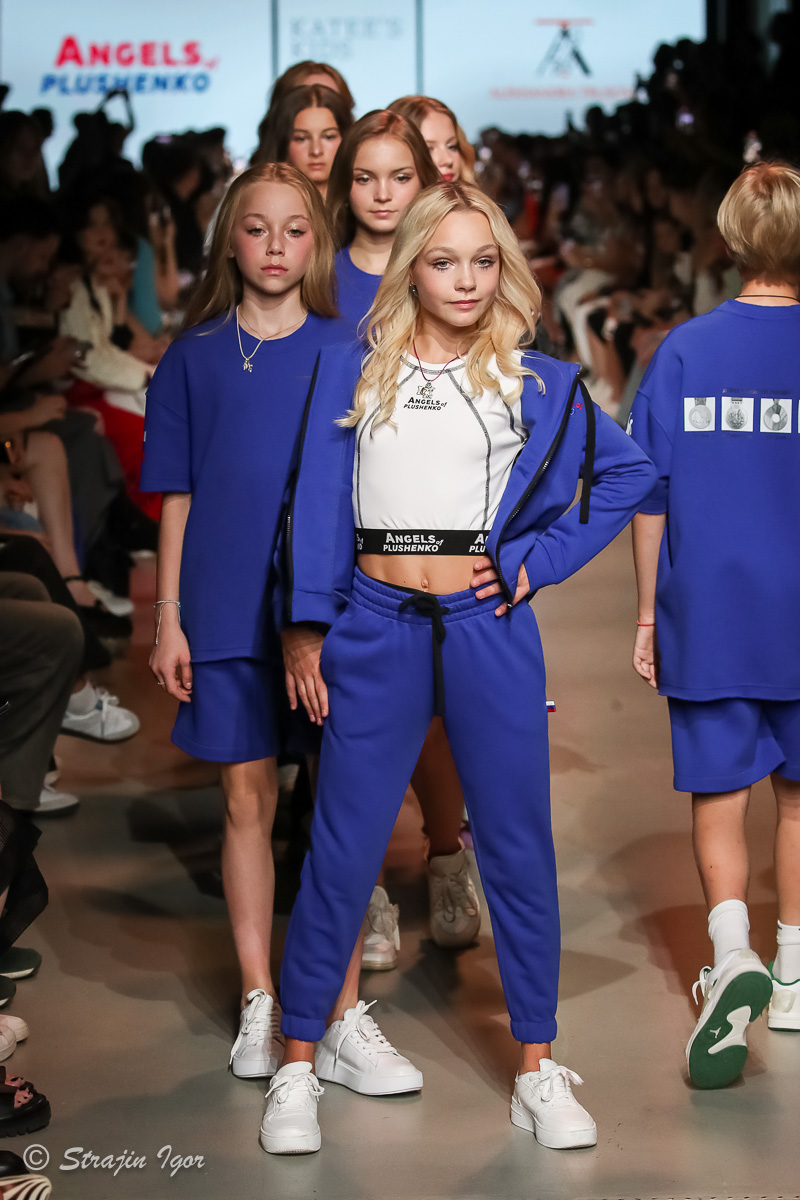 Открыли показ образы из линейки в стиле кэжуал для детей и подростков. Далее модели вышли в образах из коллаборации KATEE’S KIDS & Angels of Plushenko, при создании которой команда вдохновлялась фигурным катанием и спортивными достижениями чемпиона. Также ярким акцентом в образах стала профессиональная экипировка KATEE’S KIDS x Angels of Plushenko, разработанная для воспитанников Академии фигурного катания Евгения Плющенко с учётом потребностей спортсменов.