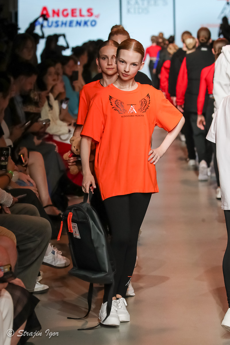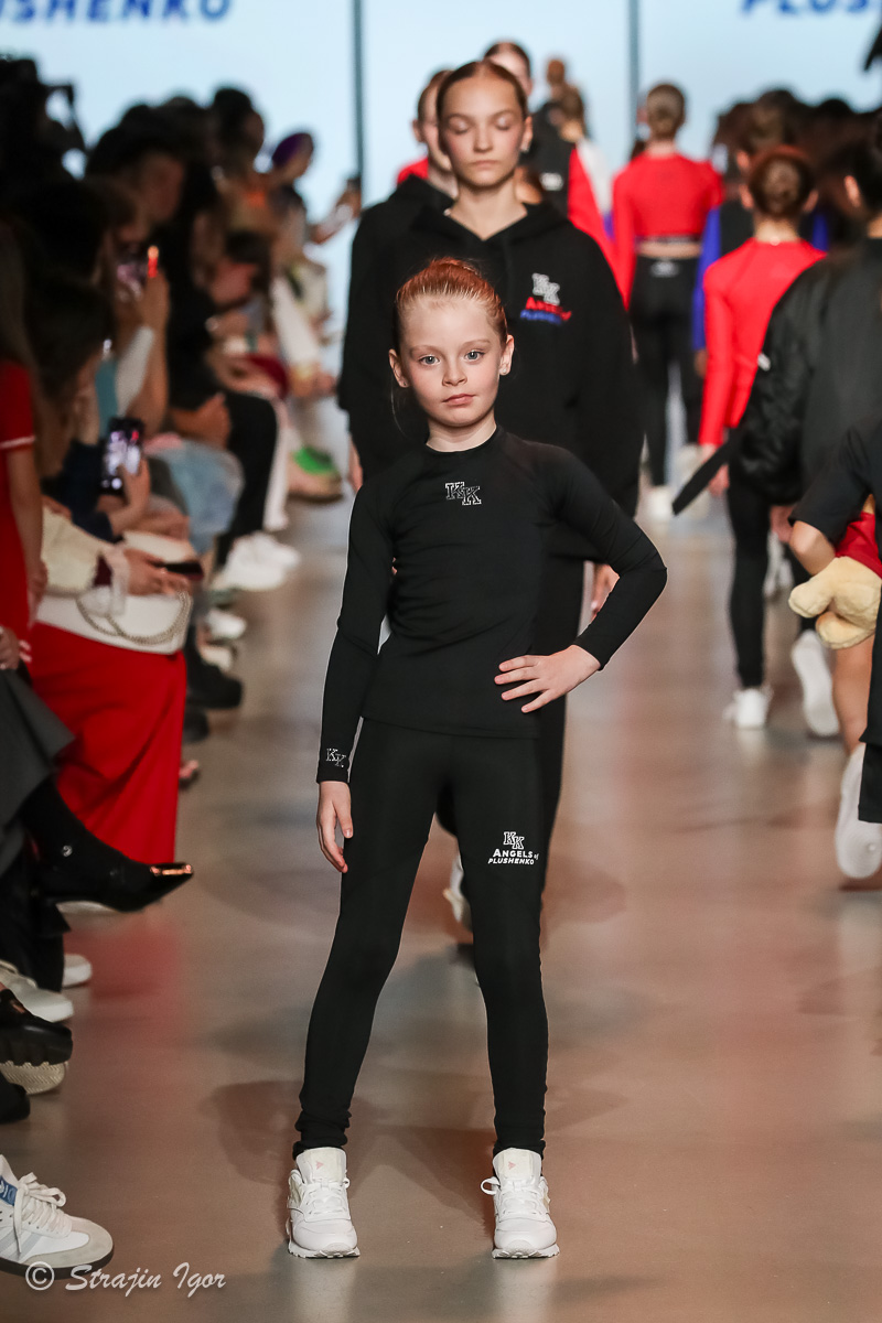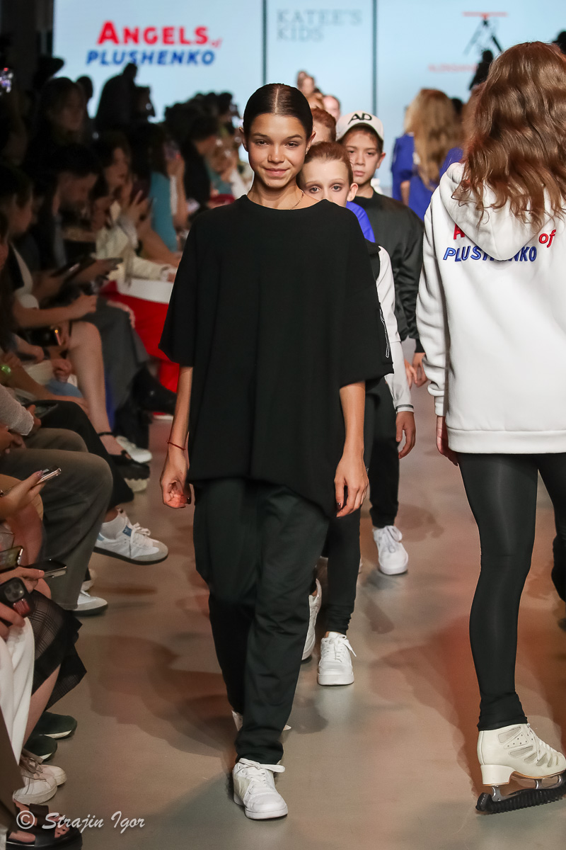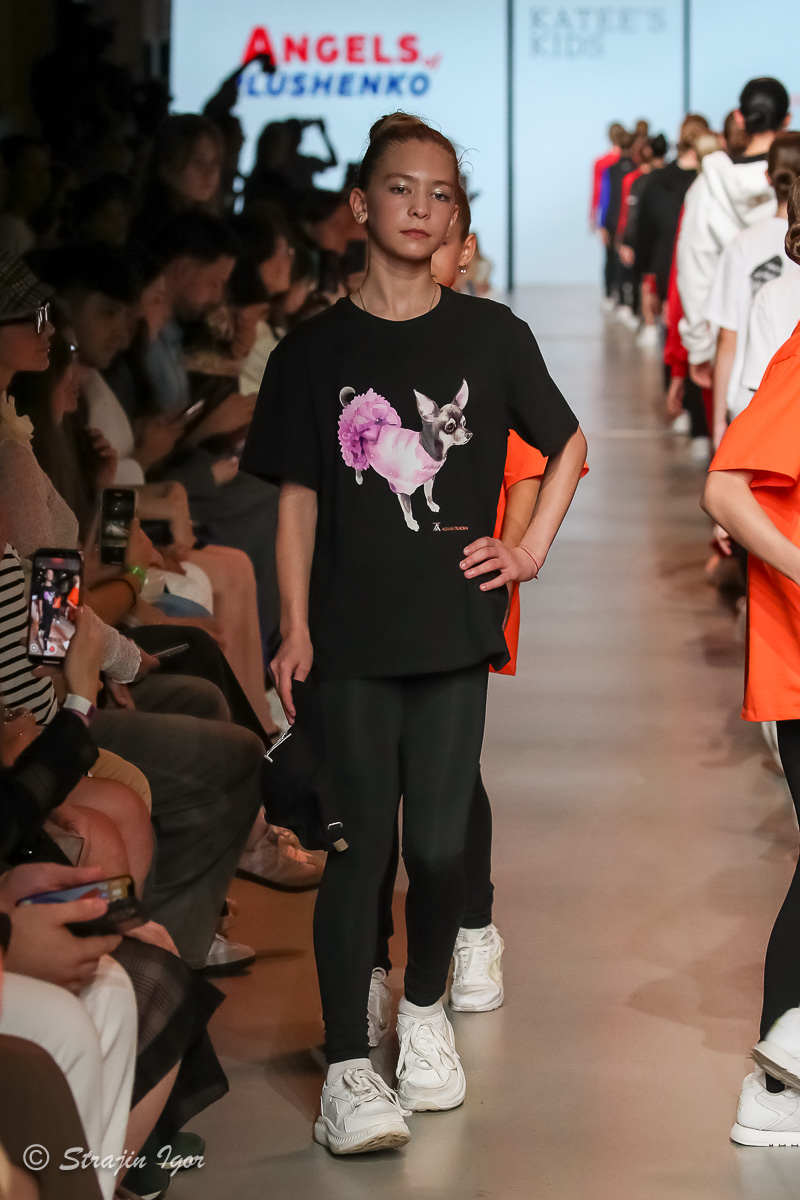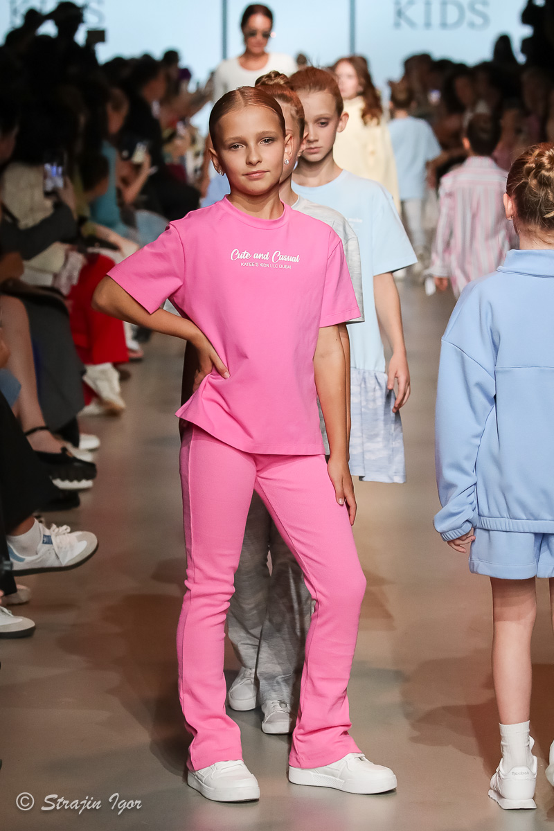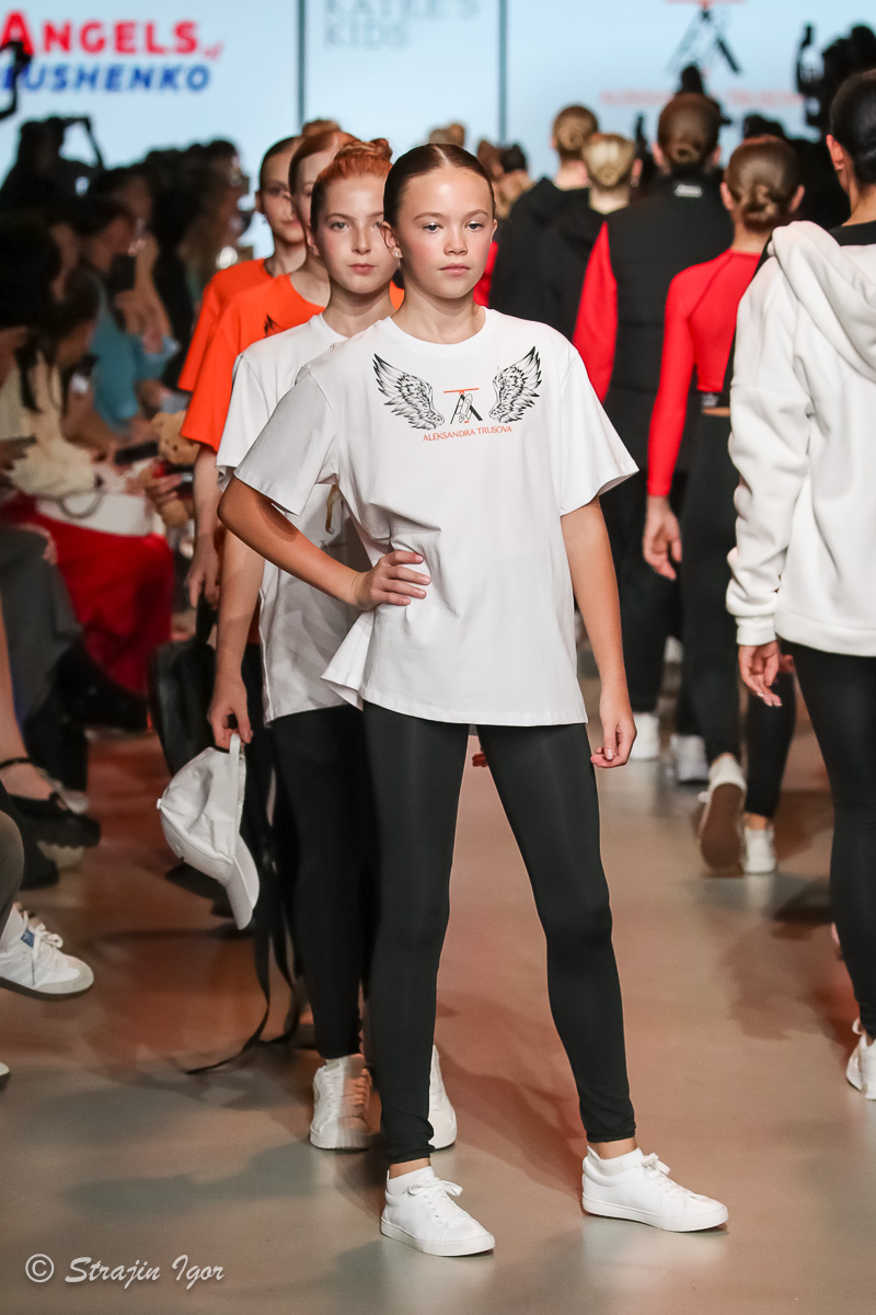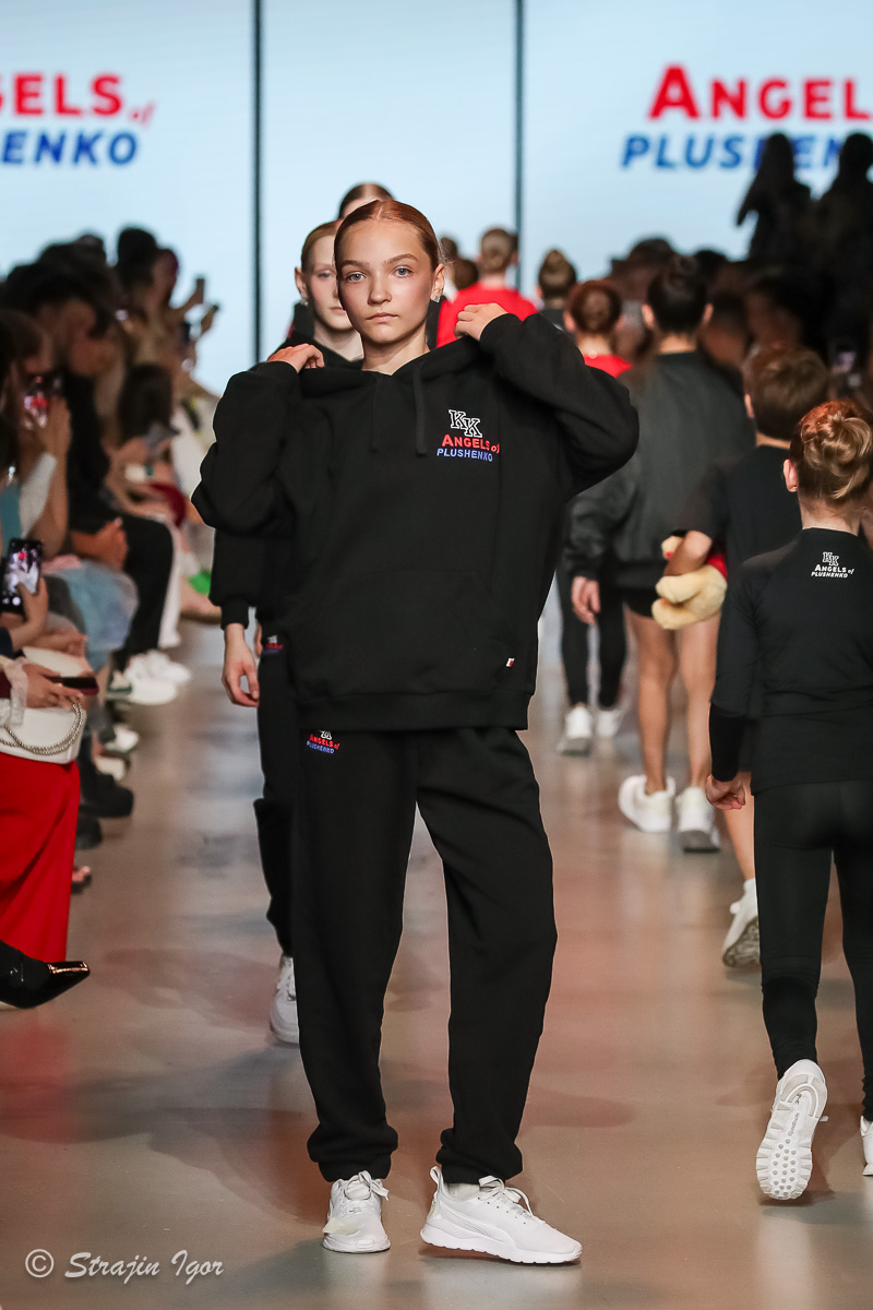 Открыли показ образы из линейки в стиле кэжуал для детей и подростков. Далее модели вышли в образах из коллаборации KATEE’S KIDS & Angels of Plushenko, при создании которой команда вдохновлялась фигурным катанием и спортивными достижениями чемпиона. Также ярким акцентом в образах стала профессиональная экипировка KATEE’S KIDS x Angels of Plushenko, разработанная для воспитанников Академии фигурного катания Евгения Плющенко с учётом потребностей спортсменов.