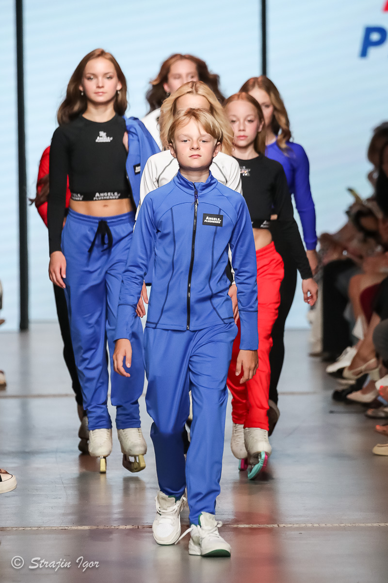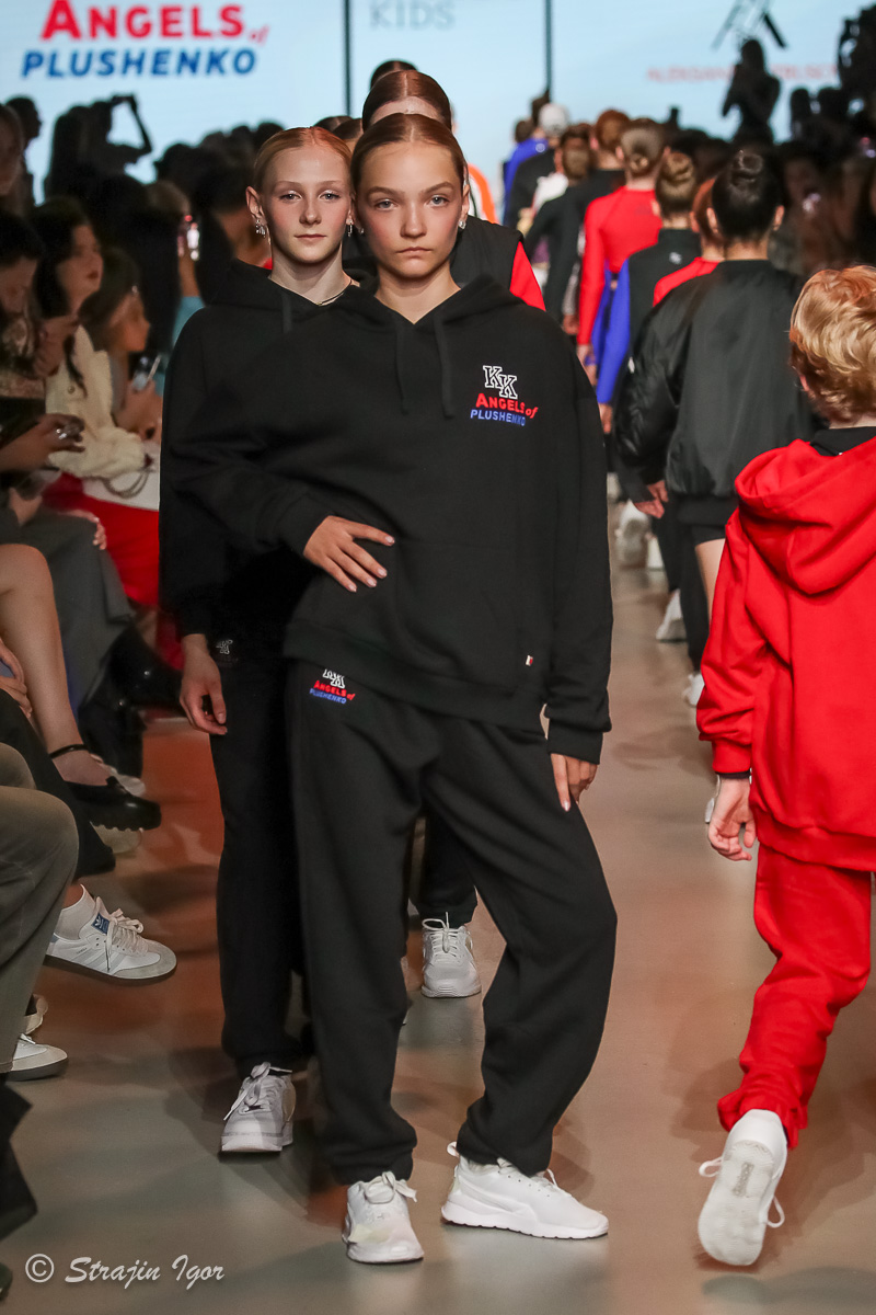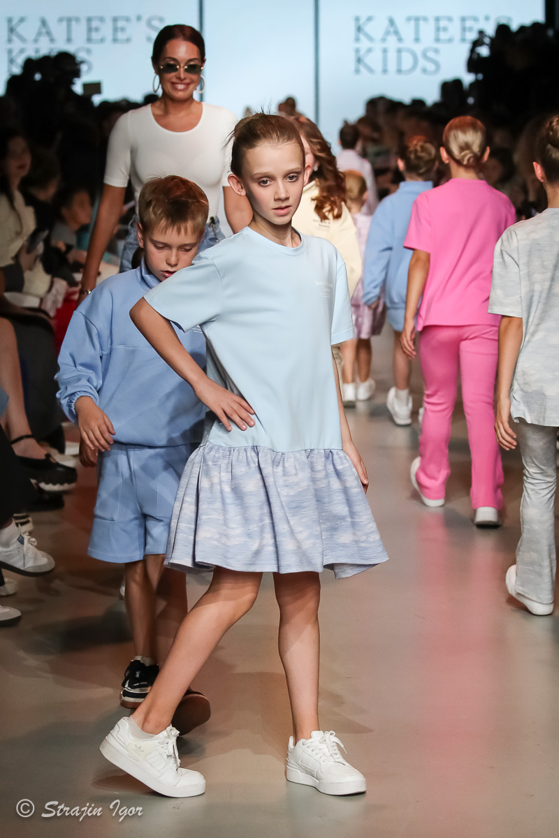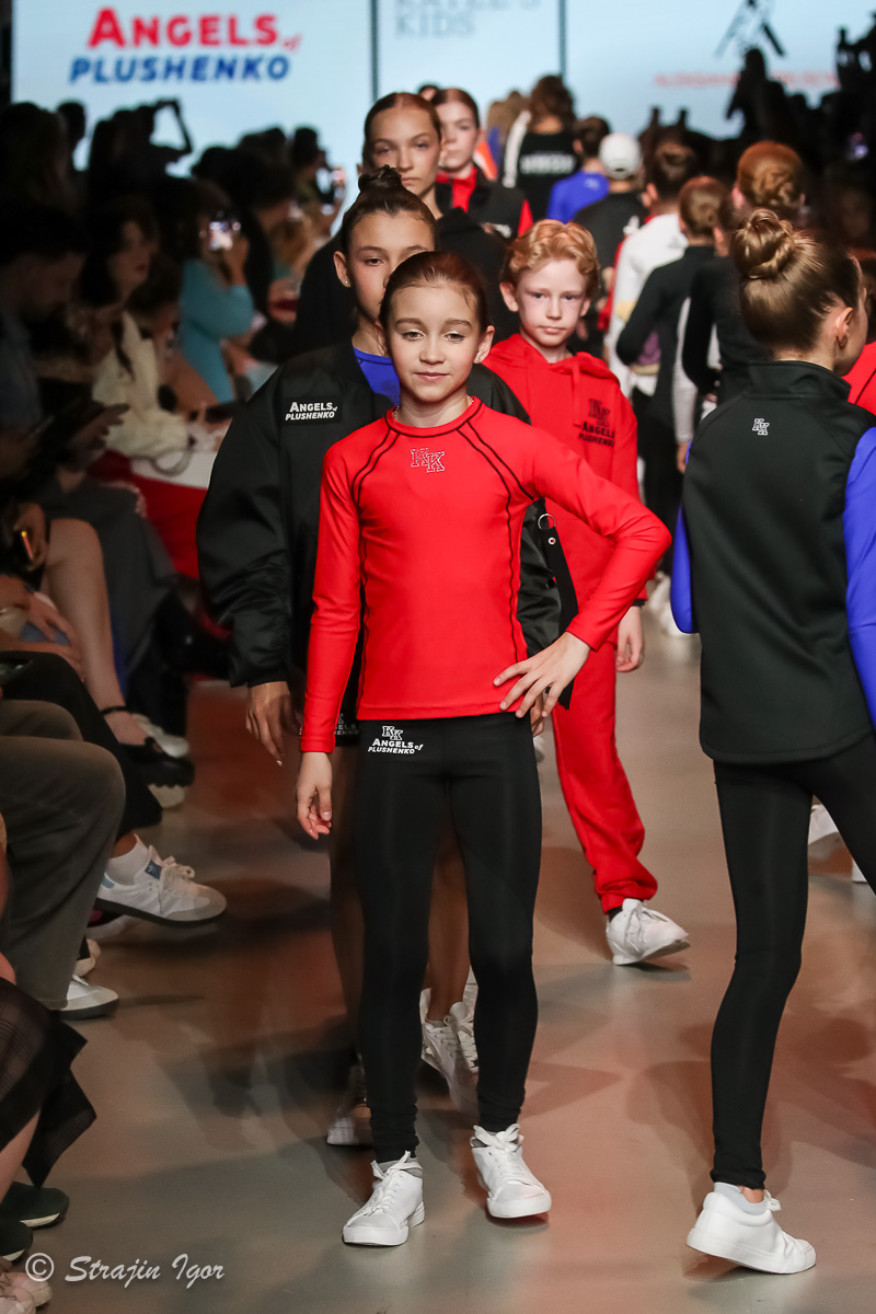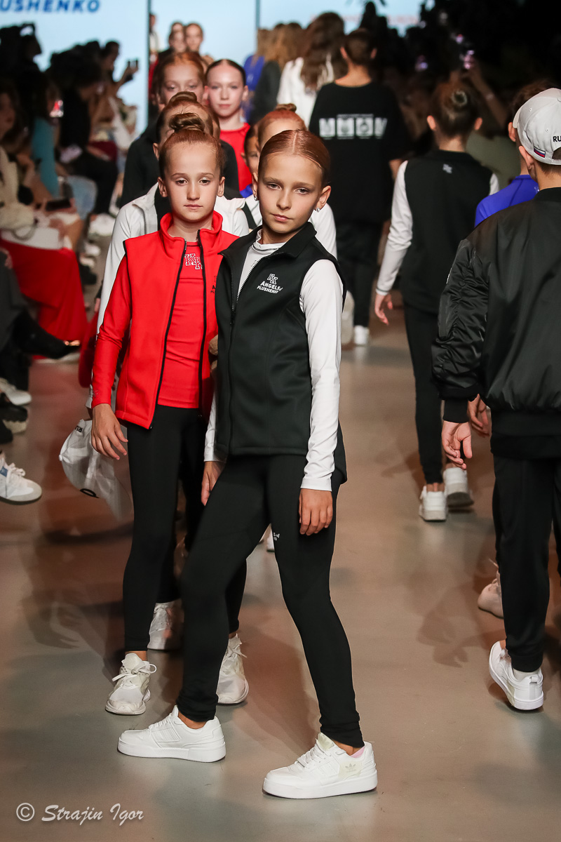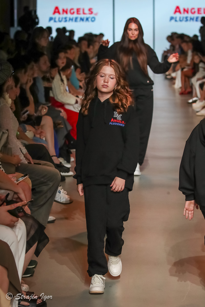Открыли показ образы из линейки в стиле кэжуал для детей и подростков. Далее модели вышли в образах из коллаборации KATEE’S KIDS & Angels of Plushenko, при создании которой команда вдохновлялась фигурным катанием и спортивными достижениями чемпиона. Также ярким акцентом в образах стала профессиональная экипировка KATEE’S KIDS x Angels of Plushenko, разработанная для воспитанников Академии фигурного катания Евгения Плющенко с учётом потребностей спортсменов.