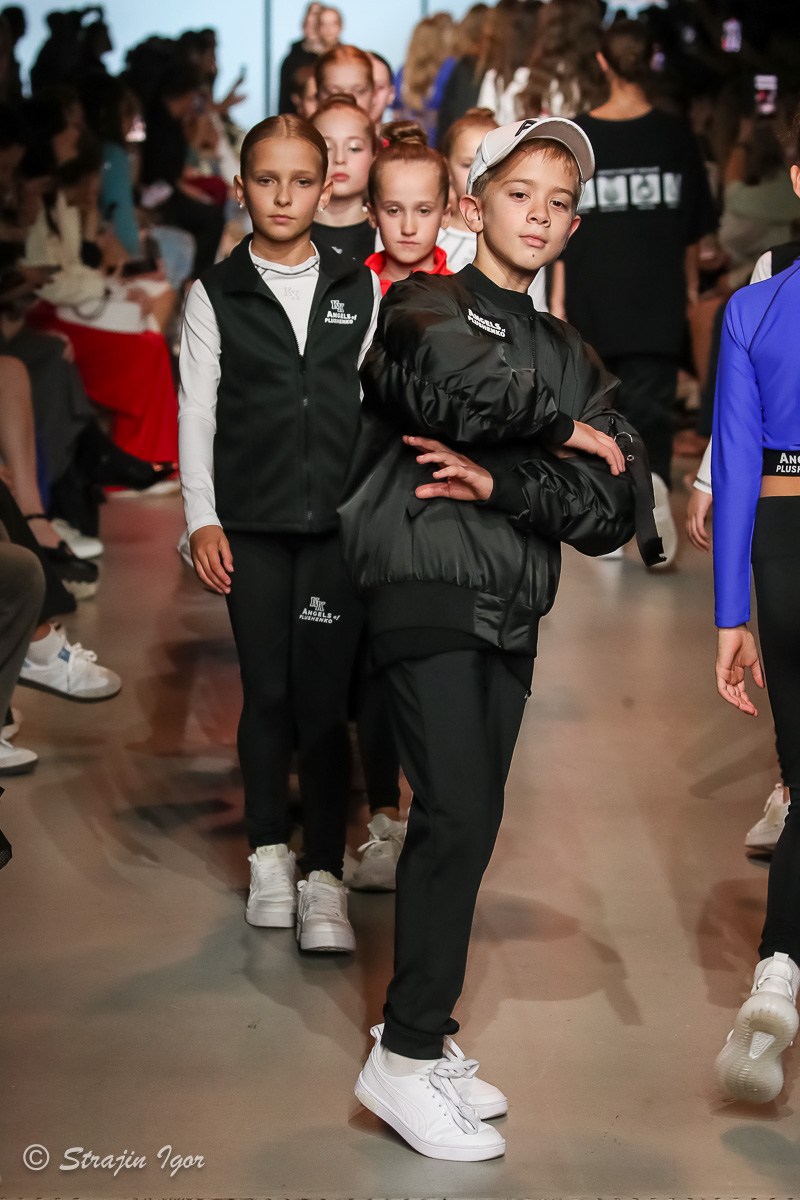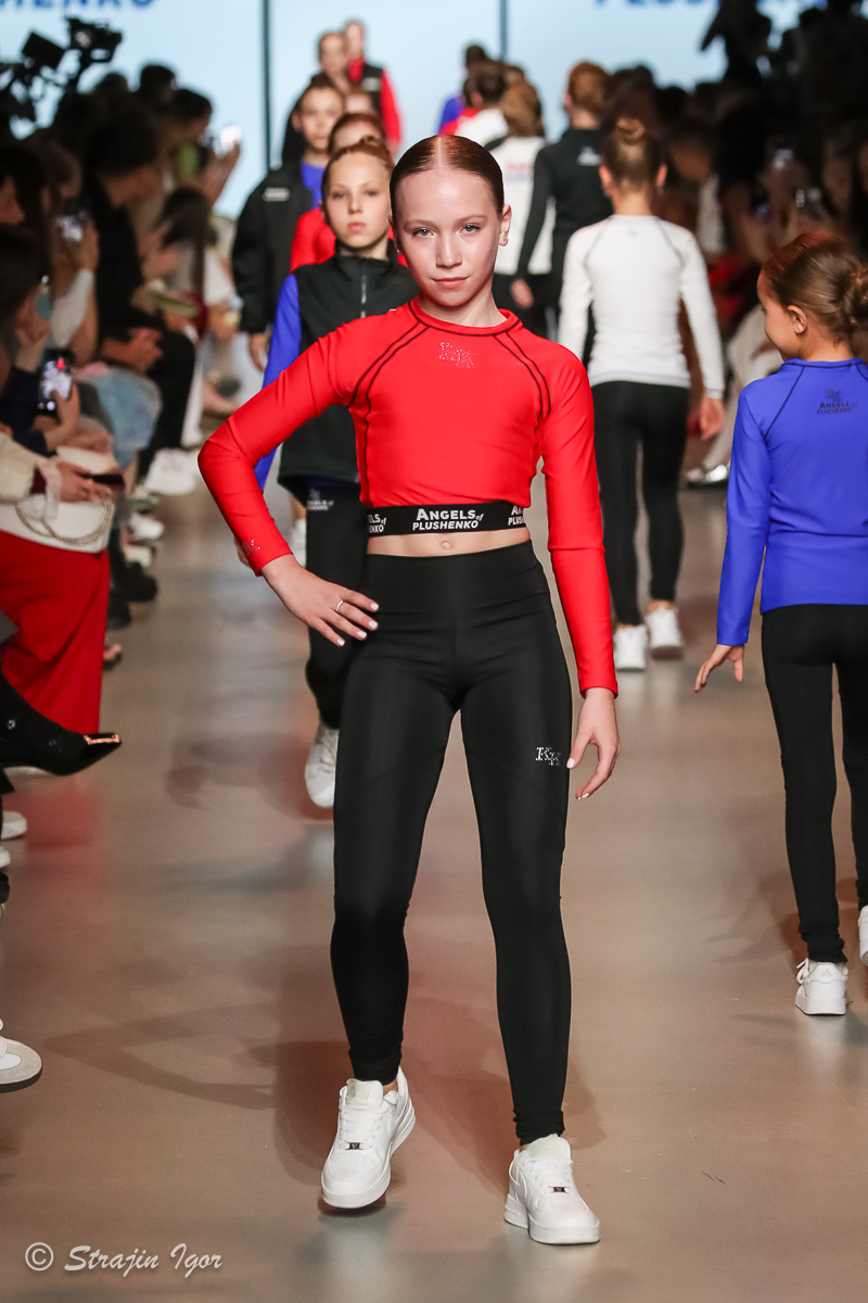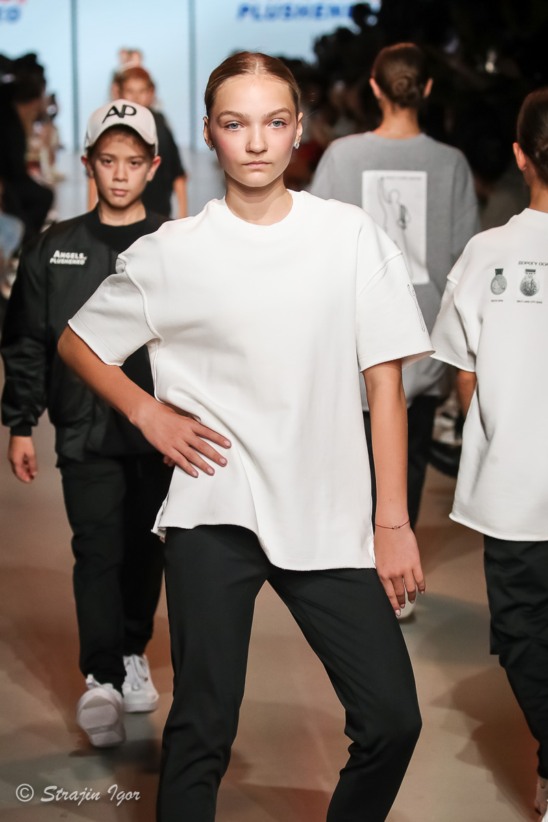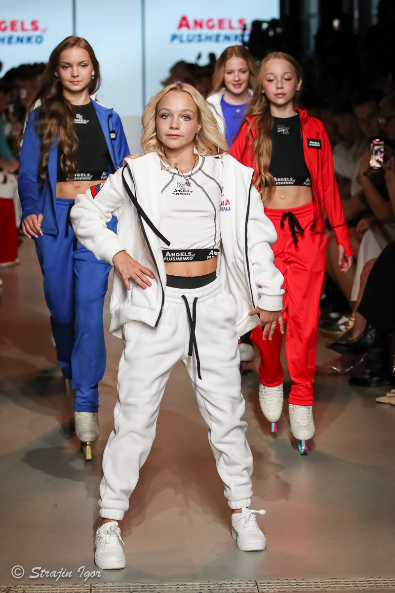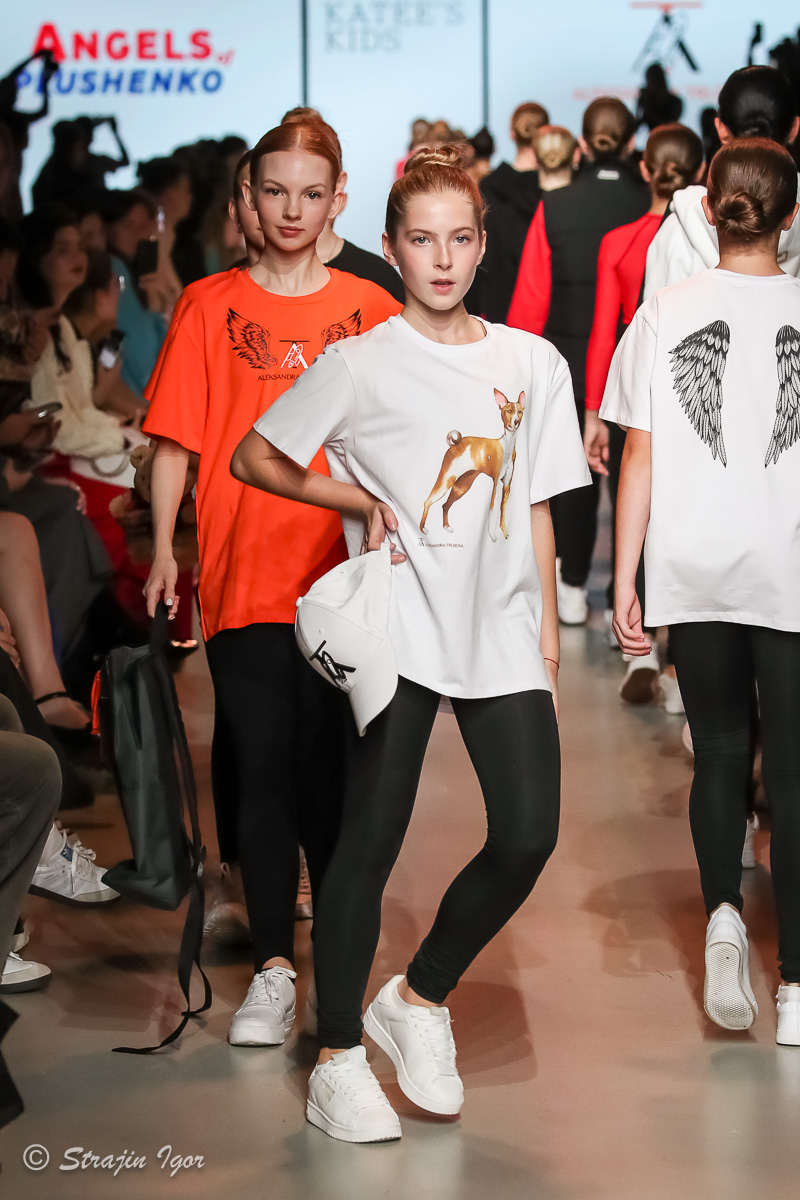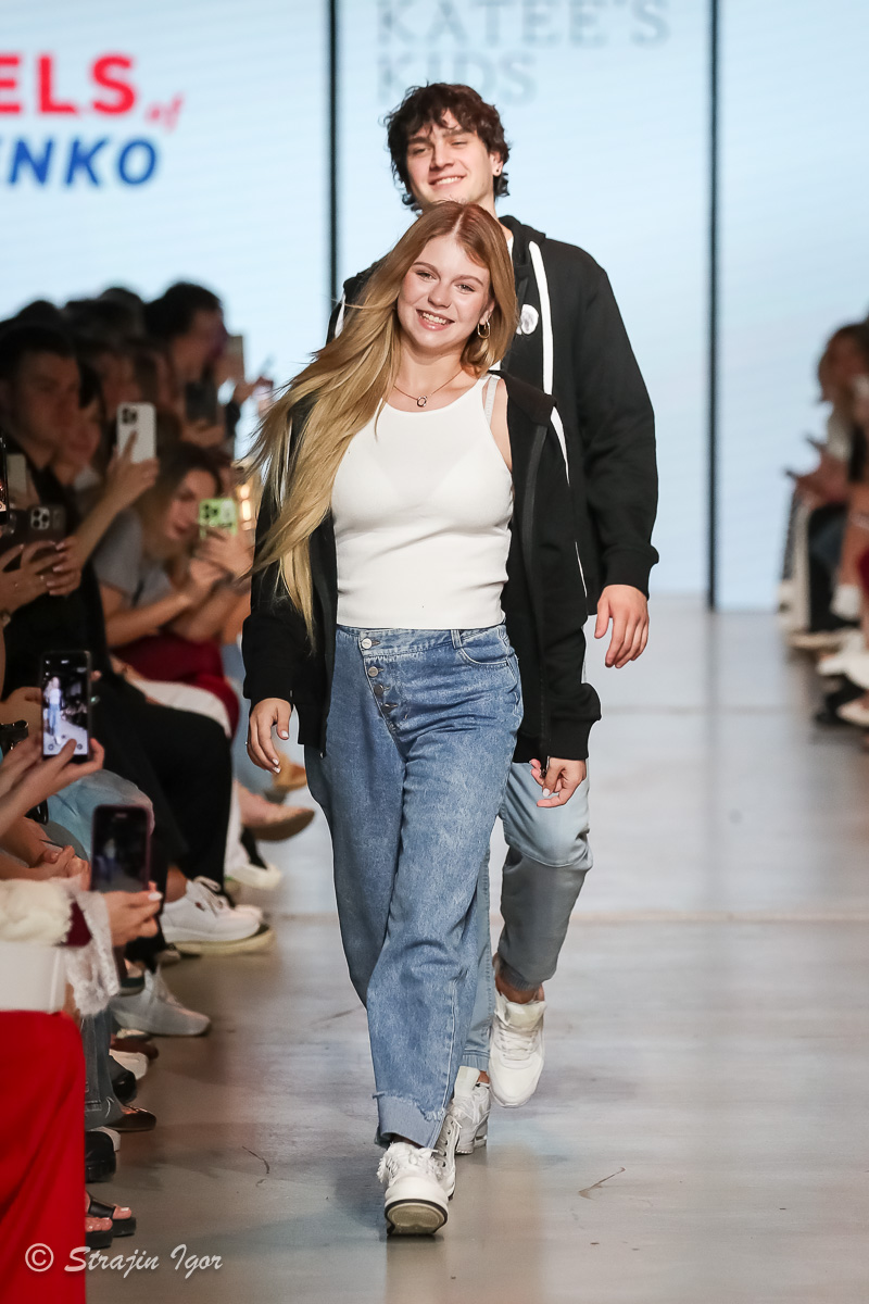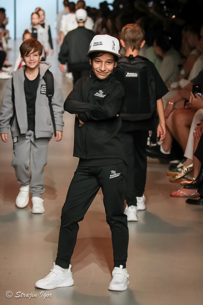 Открыли показ образы из линейки в стиле кэжуал для детей и подростков. Далее модели вышли в образах из коллаборации KATEE’S KIDS & Angels of Plushenko, при создании которой команда вдохновлялась фигурным катанием и спортивными достижениями чемпиона. Также ярким акцентом в образах стала профессиональная экипировка KATEE’S KIDS x Angels of Plushenko, разработанная для воспитанников Академии фигурного катания Евгения Плющенко с учётом потребностей спортсменов.