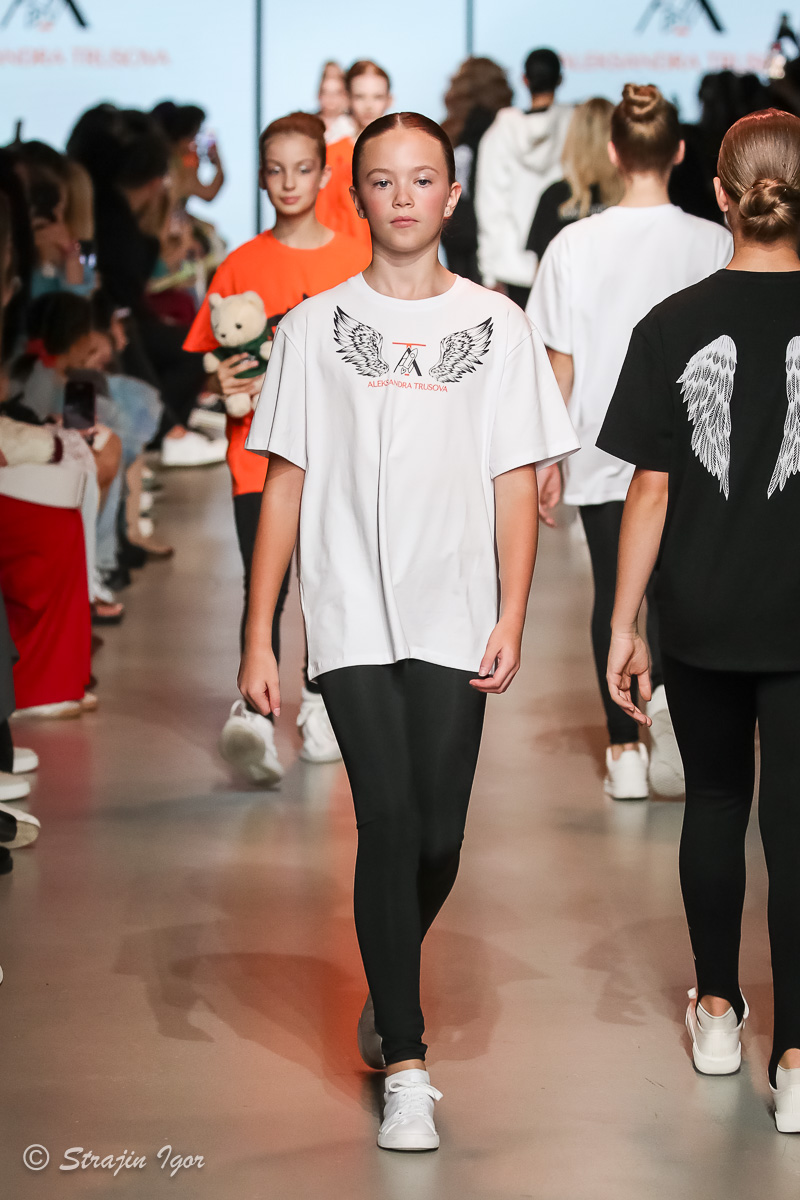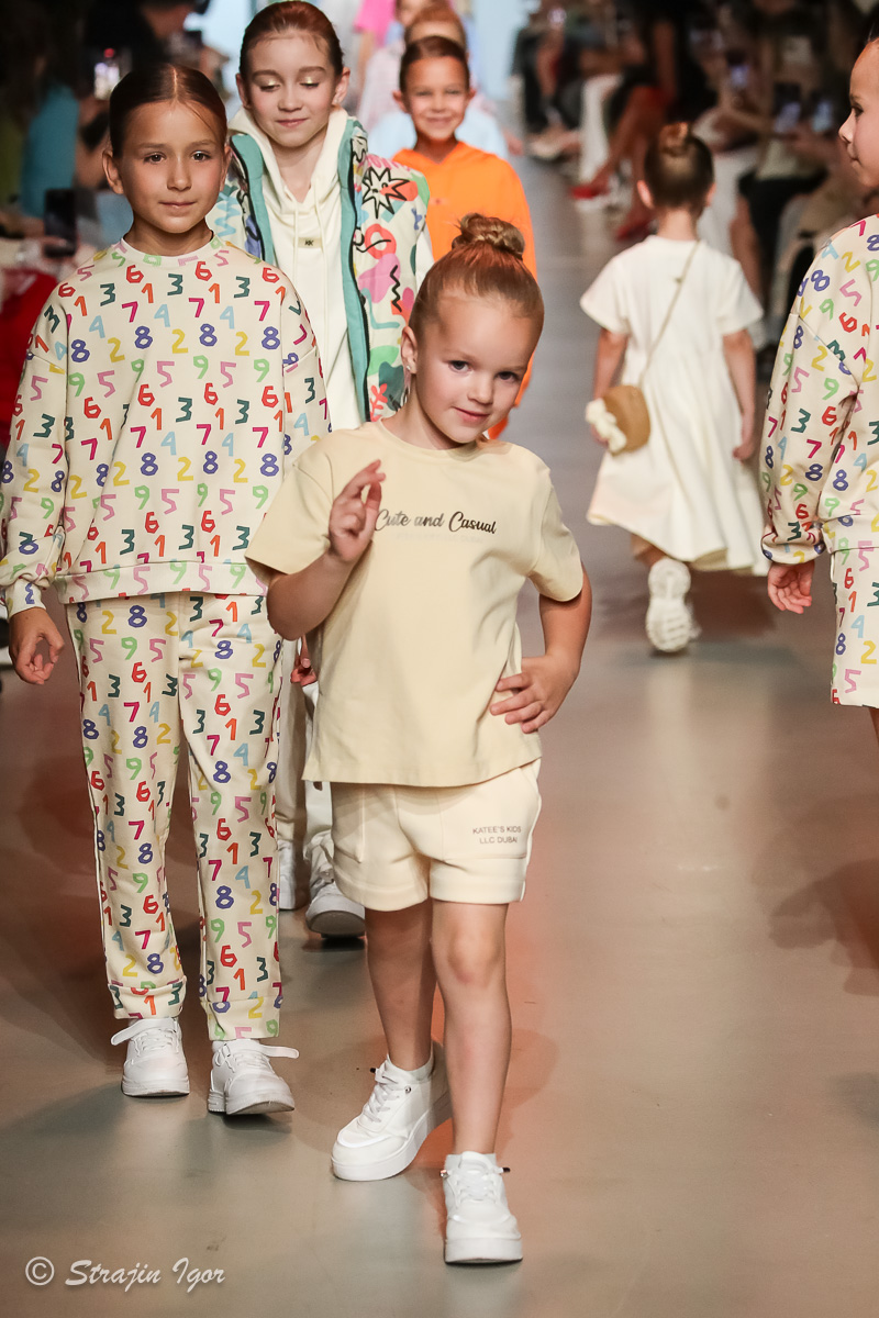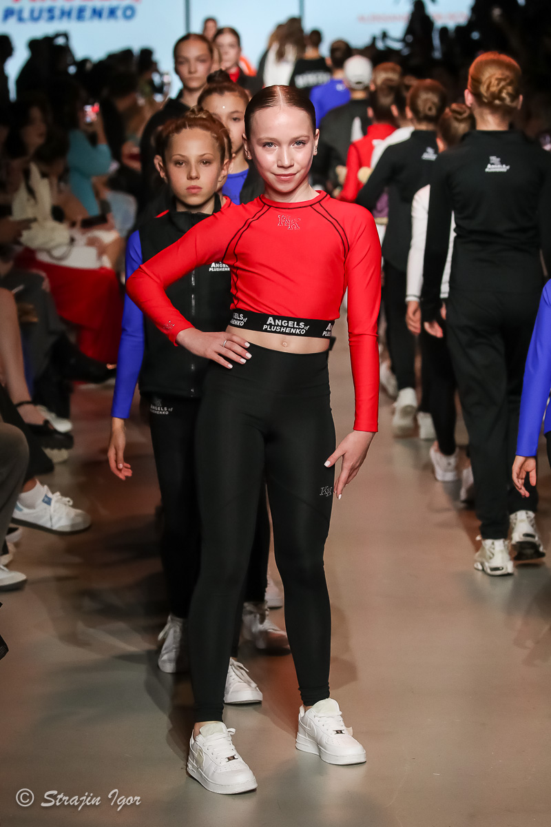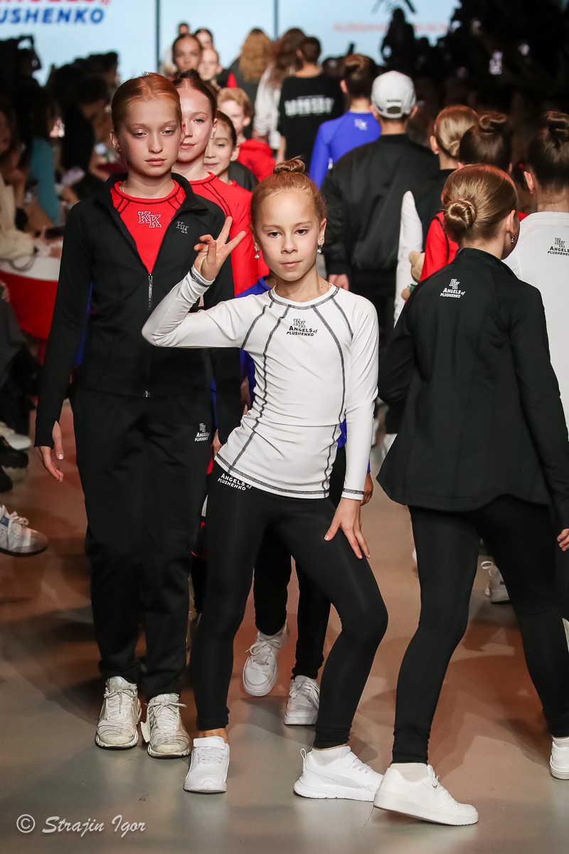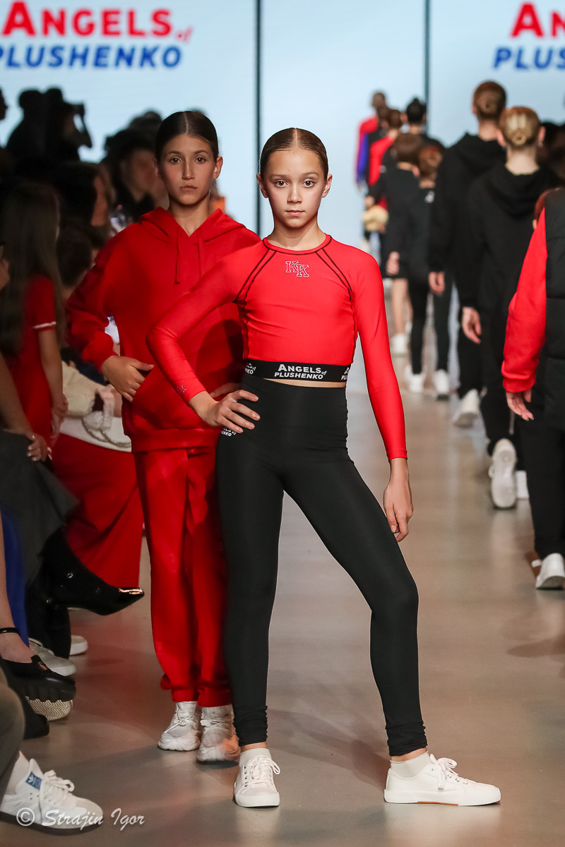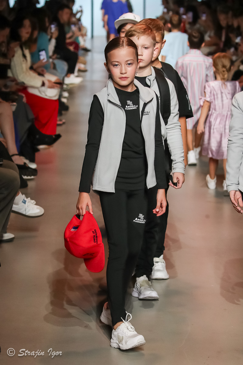 Открыли показ образы из линейки в стиле кэжуал для детей и подростков. Далее модели вышли в образах из коллаборации KATEE’S KIDS & Angels of Plushenko, при создании которой команда вдохновлялась фигурным катанием и спортивными достижениями чемпиона. Также ярким акцентом в образах стала профессиональная экипировка KATEE’S KIDS x Angels of Plushenko, разработанная для воспитанников Академии фигурного катания Евгения Плющенко с учётом потребностей спортсменов.