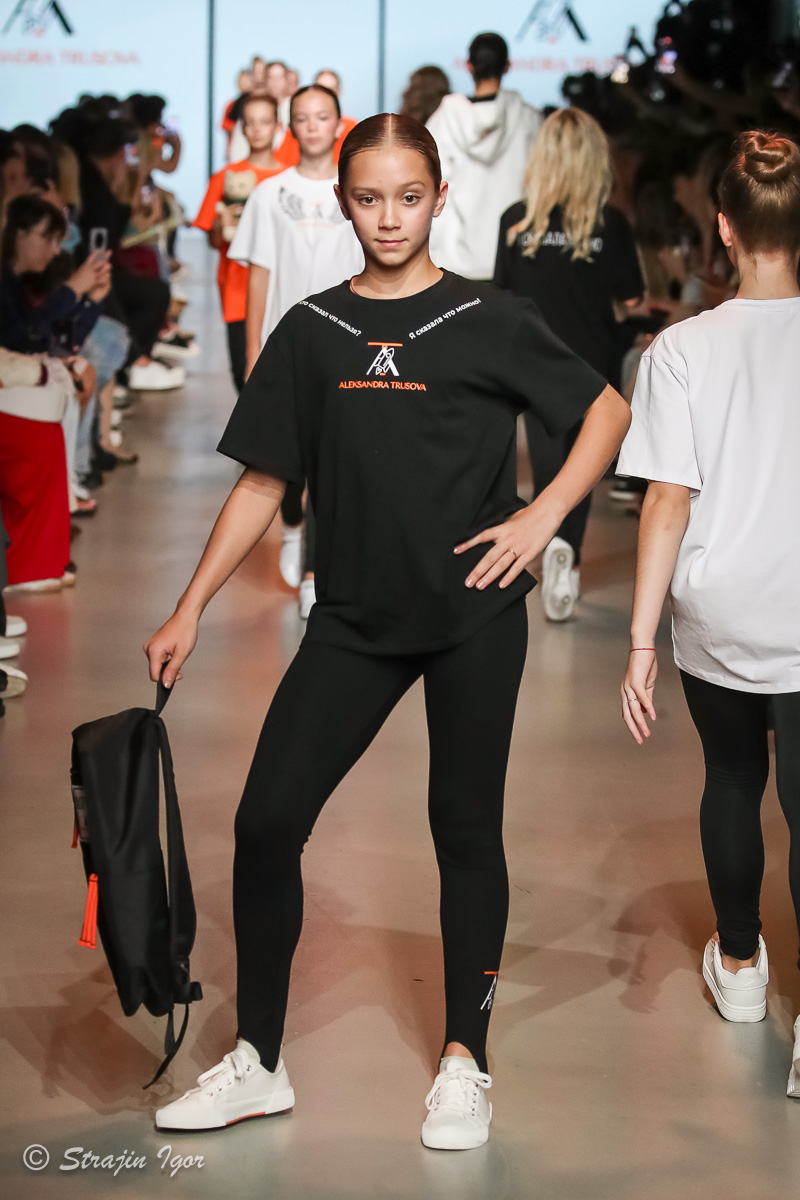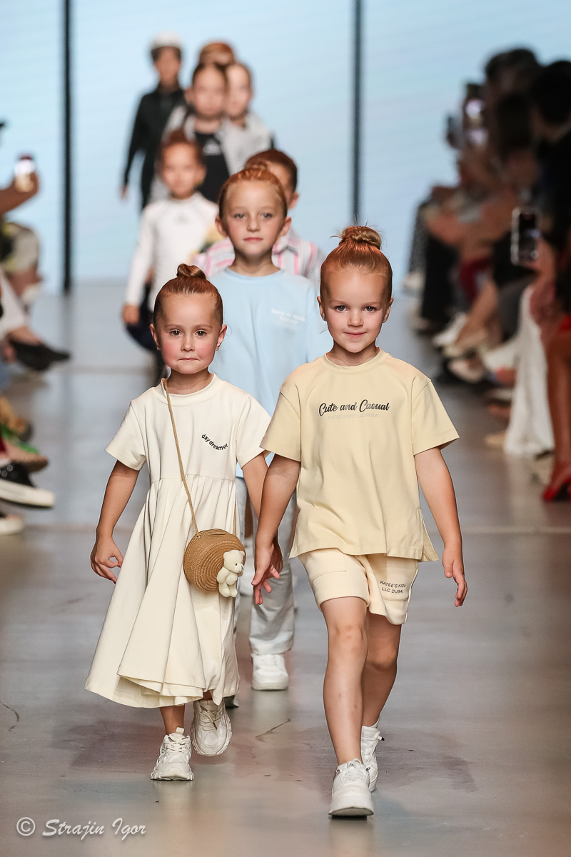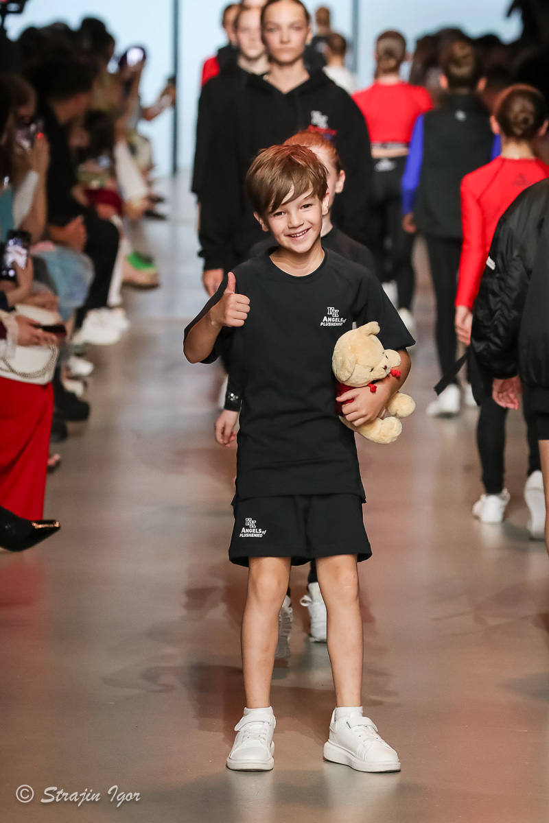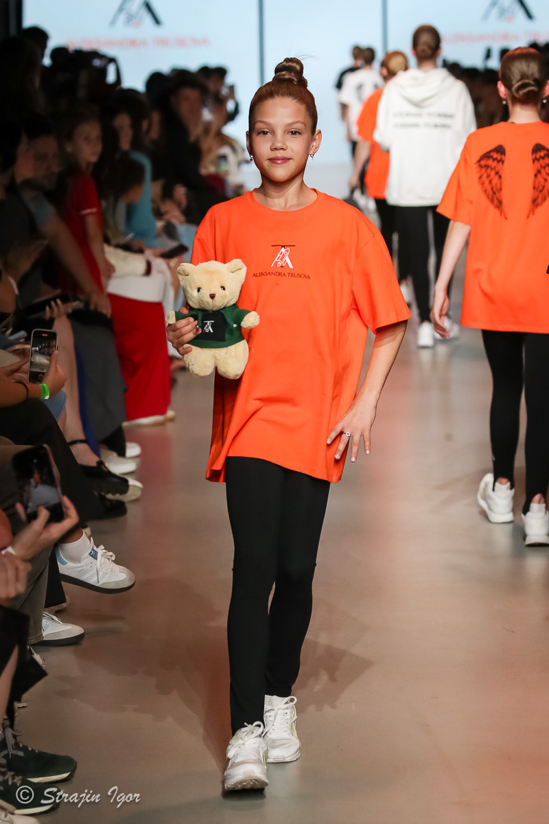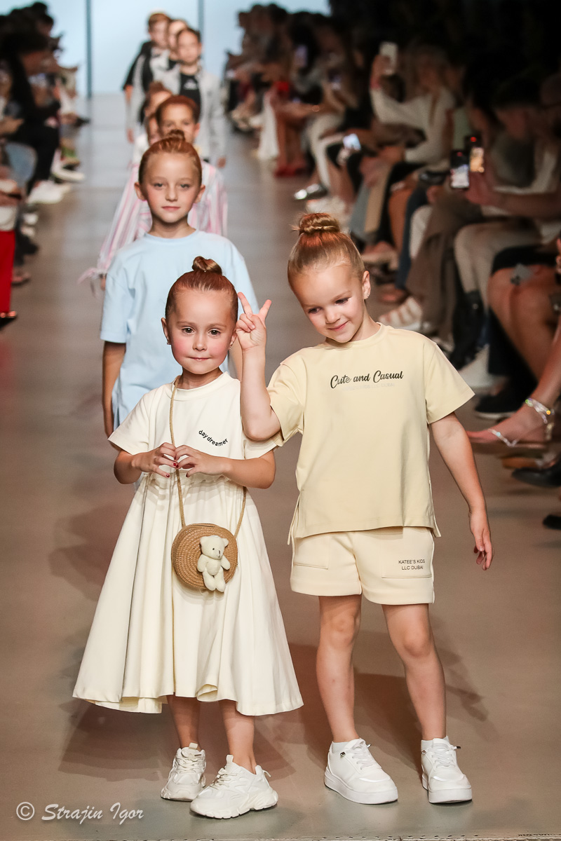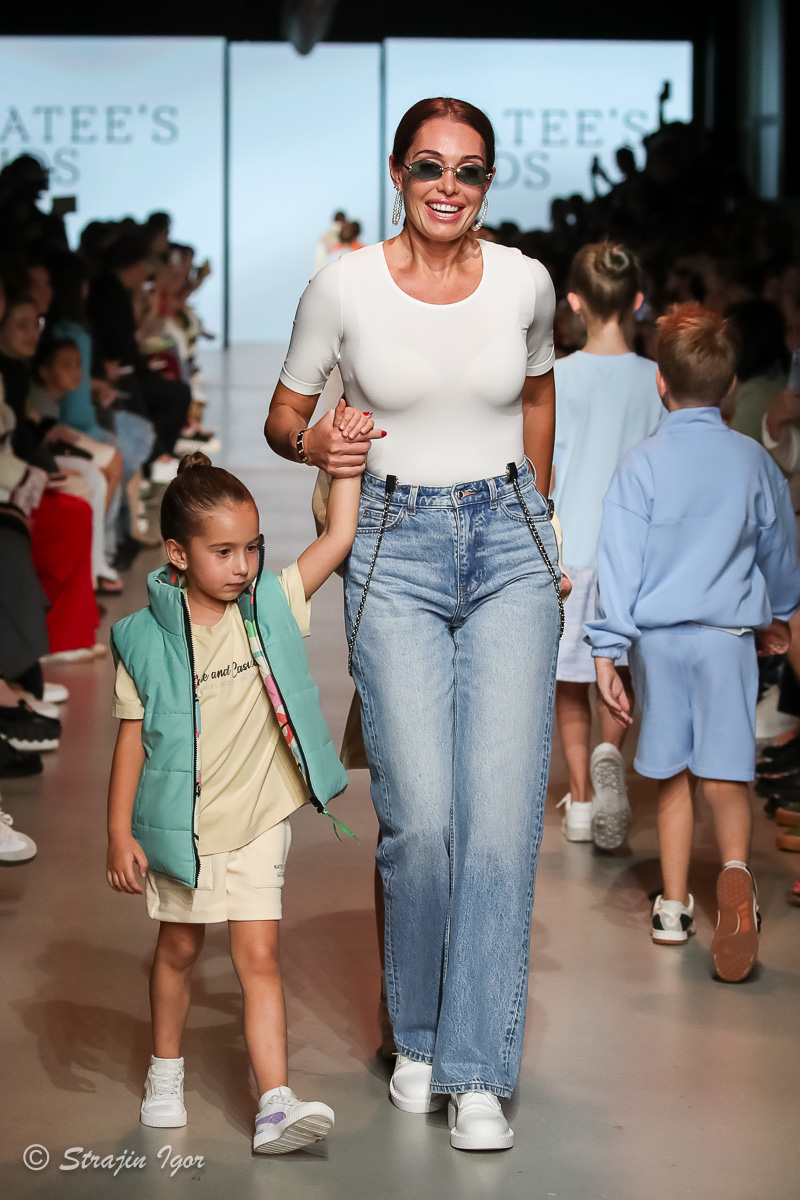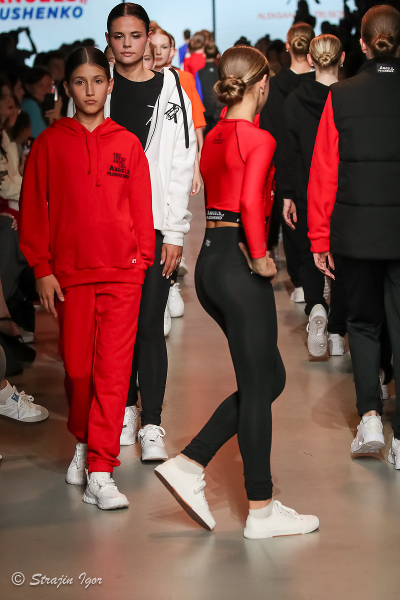 Открыли показ образы из линейки в стиле кэжуал для детей и подростков. Далее модели вышли в образах из коллаборации KATEE’S KIDS & Angels of Plushenko, при создании которой команда вдохновлялась фигурным катанием и спортивными достижениями чемпиона. Также ярким акцентом в образах стала профессиональная экипировка KATEE’S KIDS x Angels of Plushenko, разработанная для воспитанников Академии фигурного катания Евгения Плющенко с учётом потребностей спортсменов.