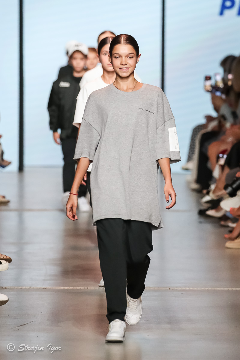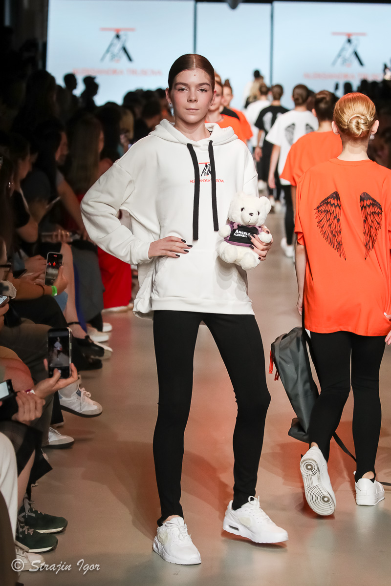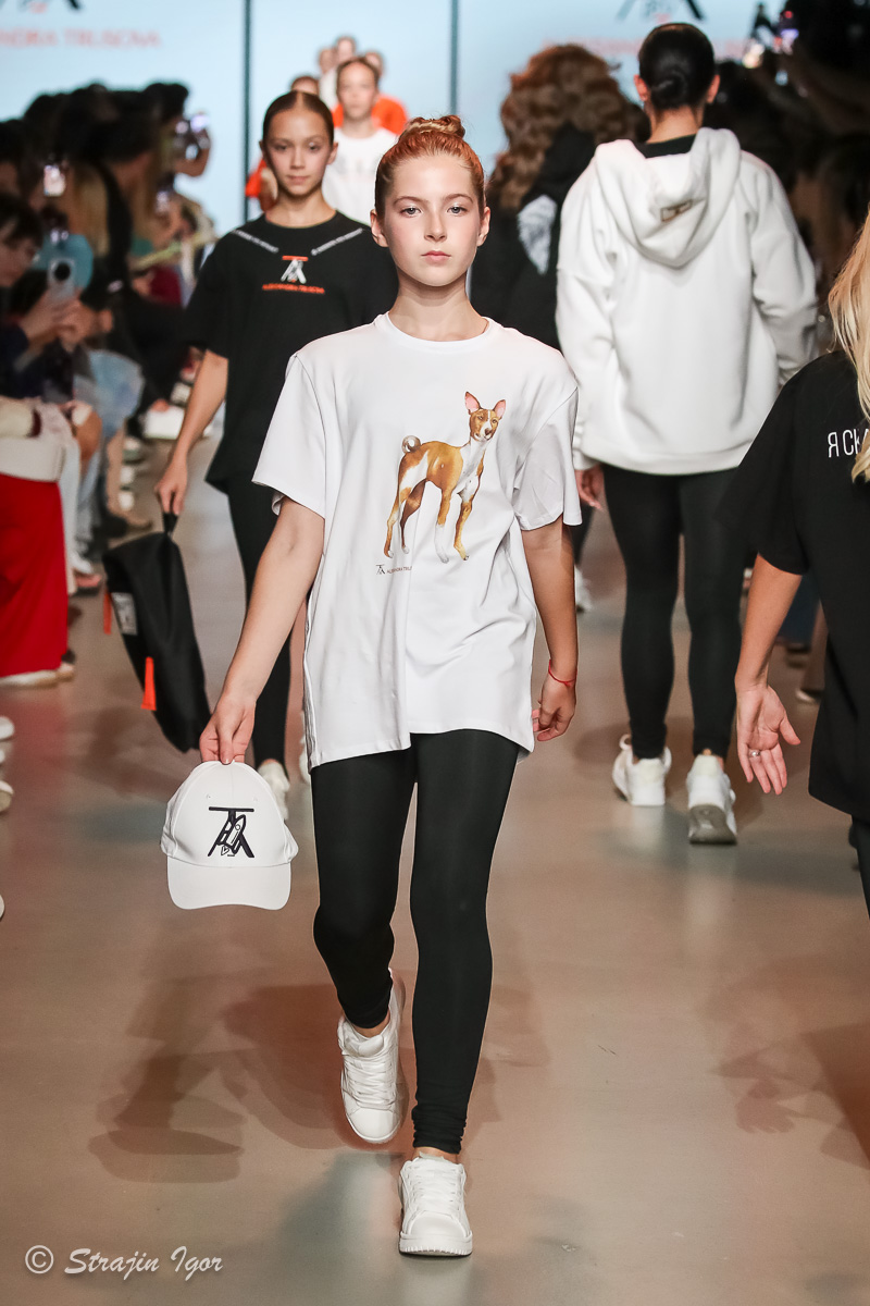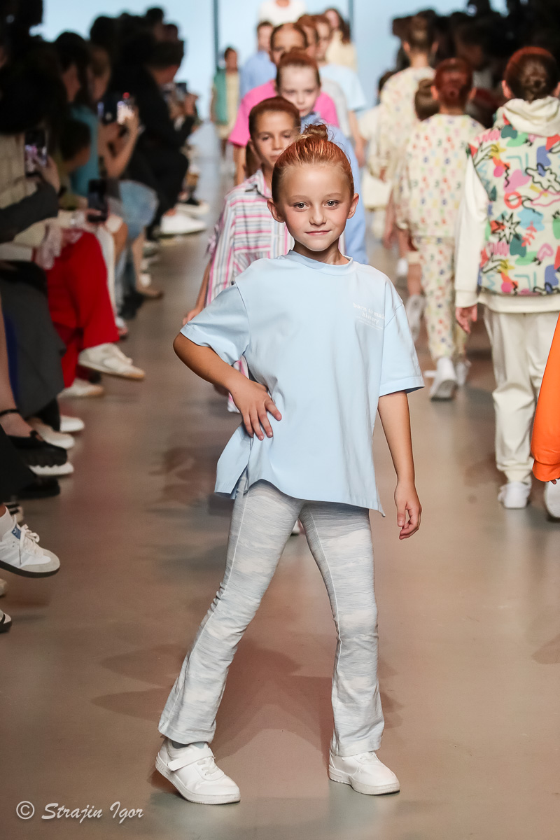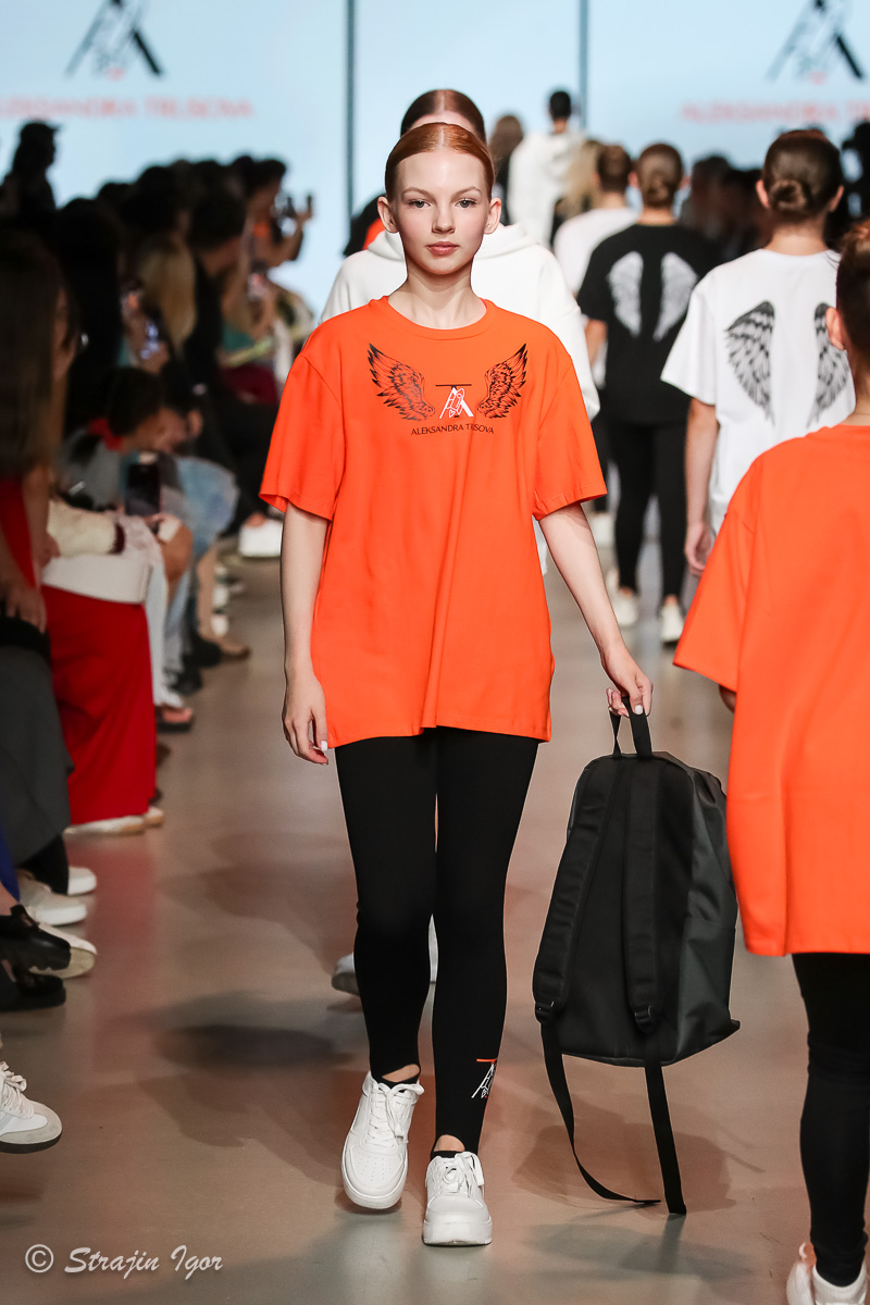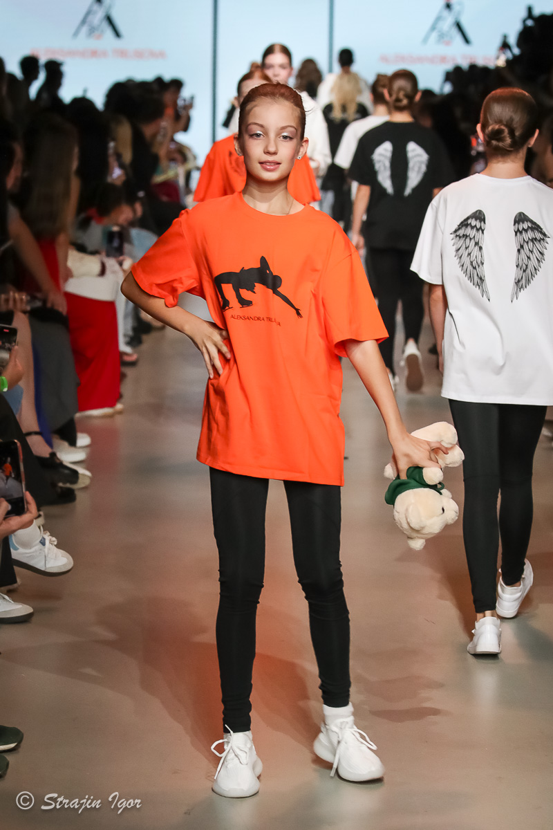 Открыли показ образы из линейки в стиле кэжуал для детей и подростков. Далее модели вышли в образах из коллаборации KATEE’S KIDS & Angels of Plushenko, при создании которой команда вдохновлялась фигурным катанием и спортивными достижениями чемпиона. Также ярким акцентом в образах стала профессиональная экипировка KATEE’S KIDS x Angels of Plushenko, разработанная для воспитанников Академии фигурного катания Евгения Плющенко с учётом потребностей спортсменов.