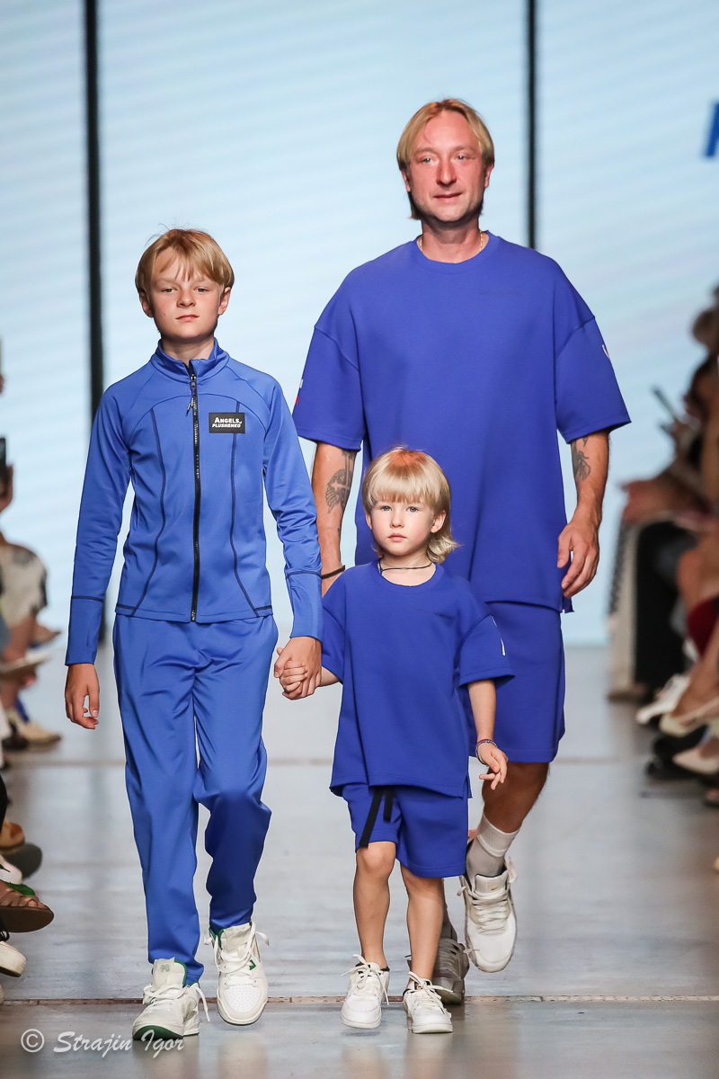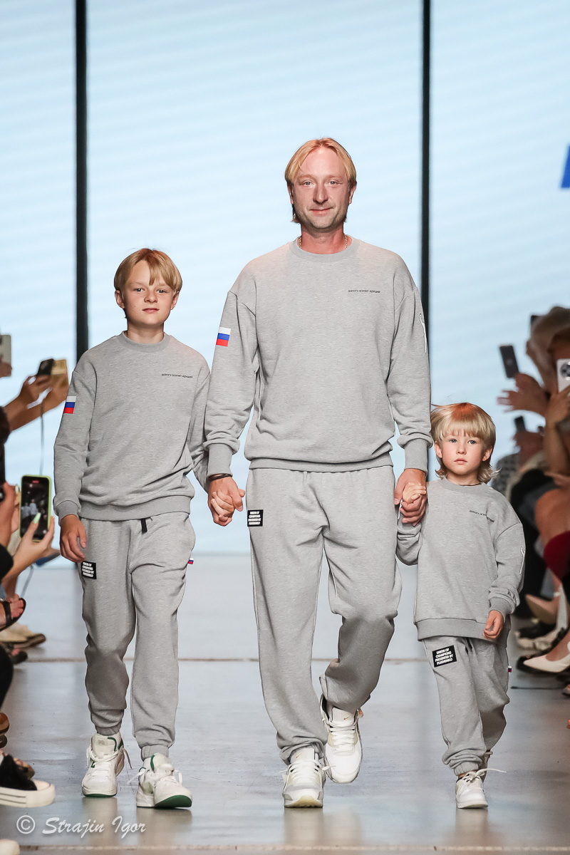 «Я всегда принимаю участие в показах – люблю это дело. С Екатериной Давыдовой мы давно создали совместный бренд KATEE’S KIDS x Angels of Plushenko. Эту одежду носят все дети из моих академий фигурного катания – они катаются в ней, ходят каждый день. Сейчас мы выводим её и в casual-направление. Для нас важно сочетать комфорт, качество и удобство. И, конечно, всё производится в России. Я и раньше сотрудничал со многими, но сейчас появился свой бренд, который нужно развивать и двигать дальше. Уверен в нашем качестве и обязательно подчёркиваю российский флаг в каждом изделии»,