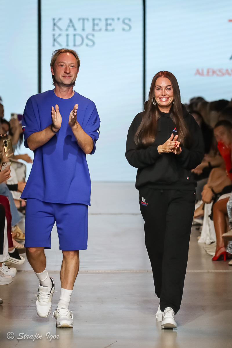 Отдельное внимание и на звёздный, а точнее спортивный, состав моделей. В образах из новой коллекции KATEE’S KIDS на подиум вышли Евгений Плющенко с сыновьями – Сашей (Гном Гномычем) и Арсением, фигуристка и основатель бренда KATEE’S KIDS Екатерина Давыдова, фигуристка Александра Трусова и воспитанники академии Angels of Plushenko. На фронт-роу – Яна Рудковская, Ксения Собчак, фигурист Макар Игнатов и многие другие.