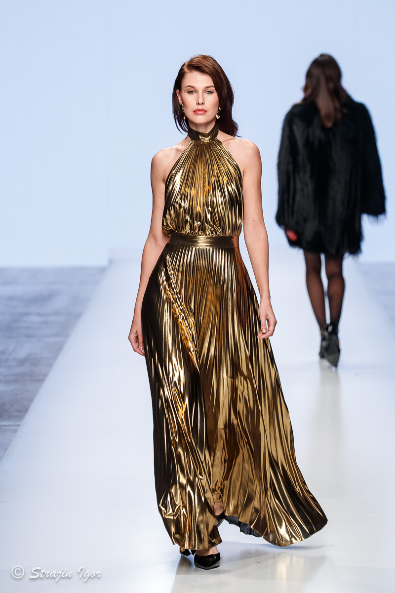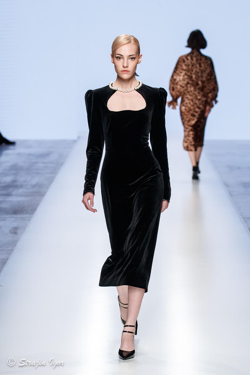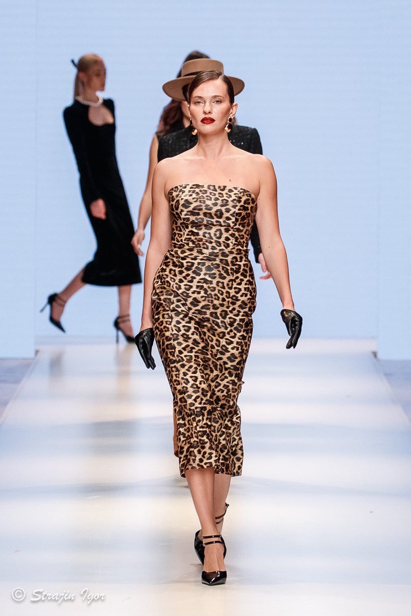 При создании коллекции дизайнер бренда вдохновлялся образом сильной женщины в современном мегаполисе. Главным акцентом новой линейки стал анималистичный принт «леопард», а ключевыми моделями — жакеты из твида, костюмы, коктейльные и вечерние платья.