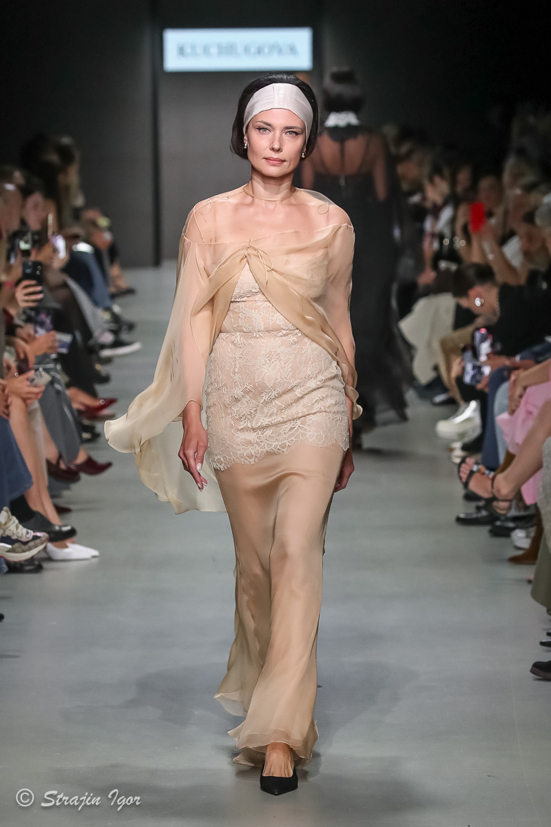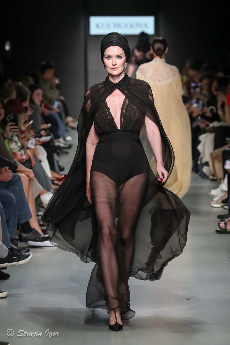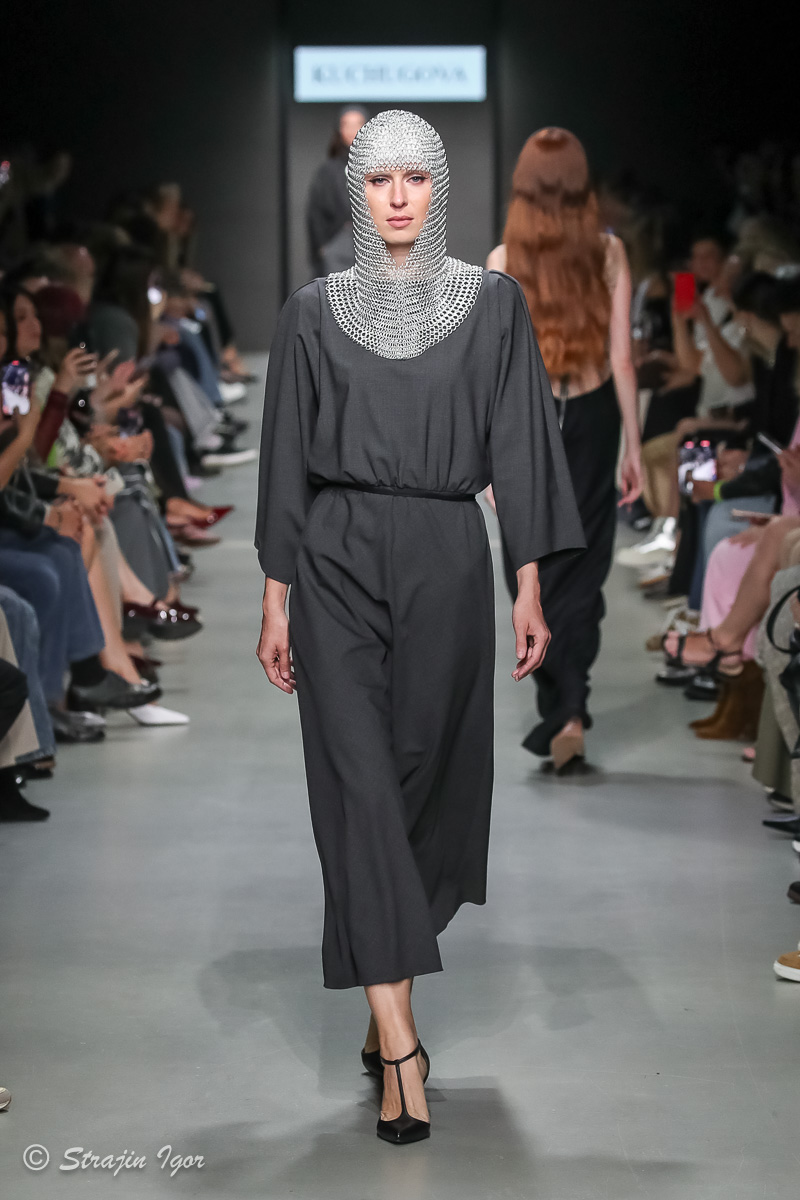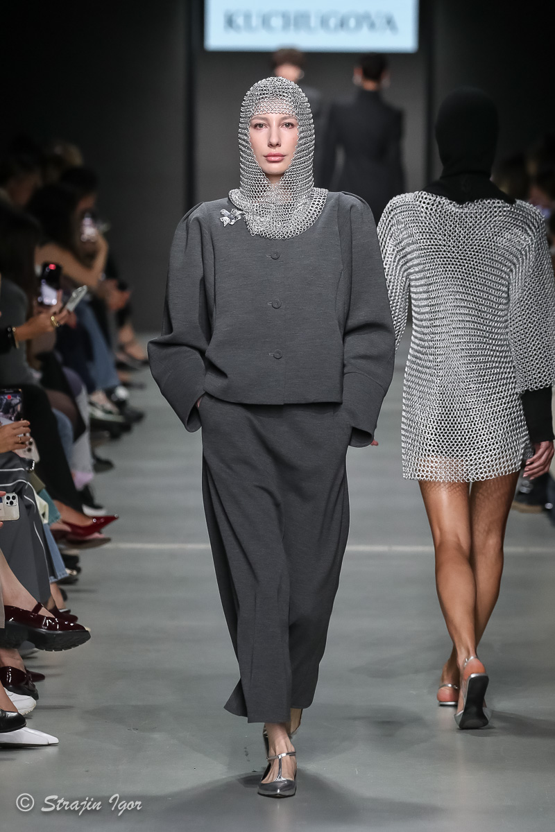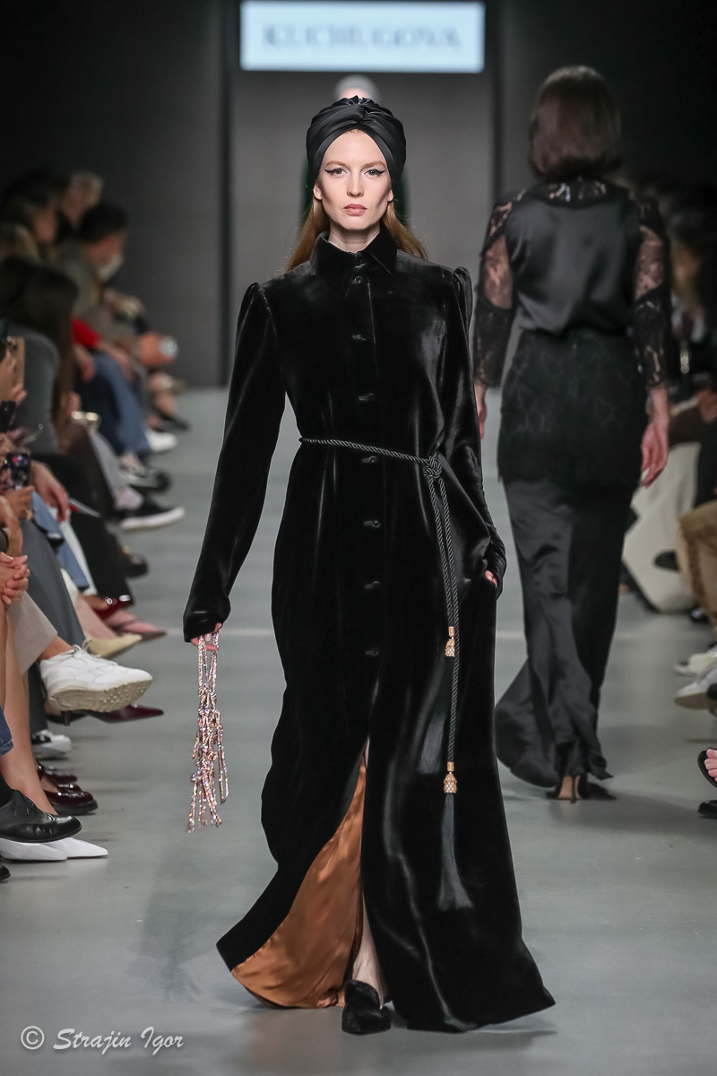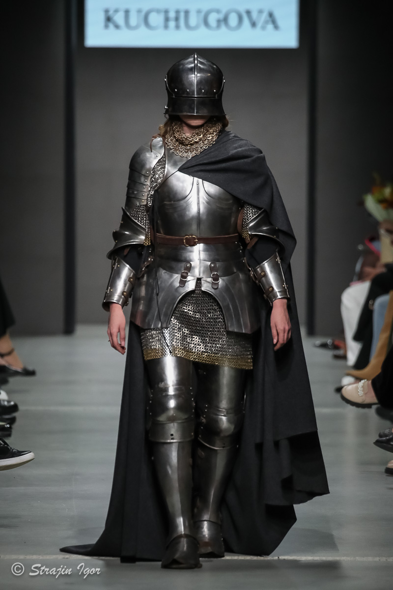 Коллекция бренда KUCHUGOVA (Москва) представлена на подиуме Московской недели моды, в которой были переосмыслены темы готики, культа рыцарства и образа прекрасной дамы.