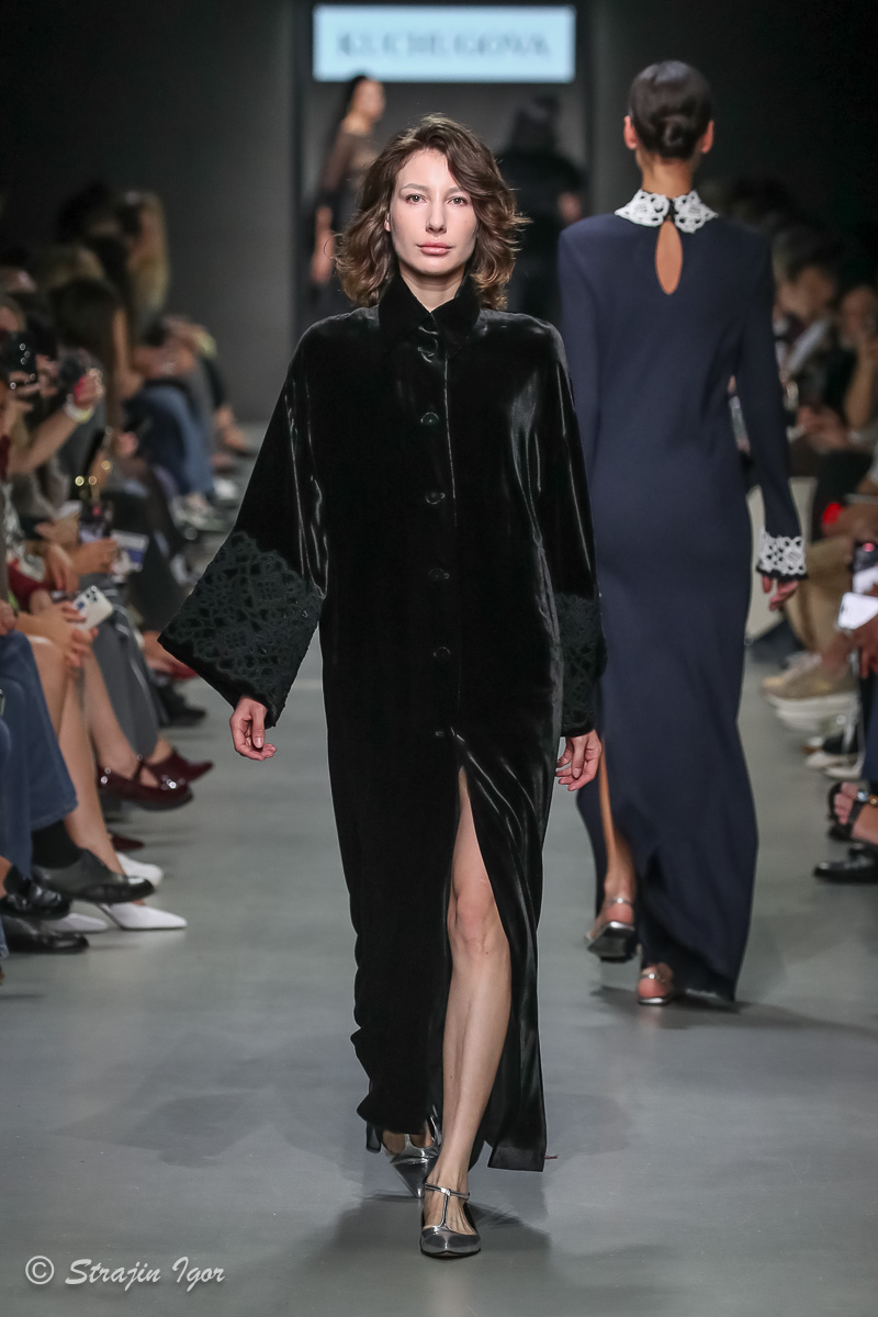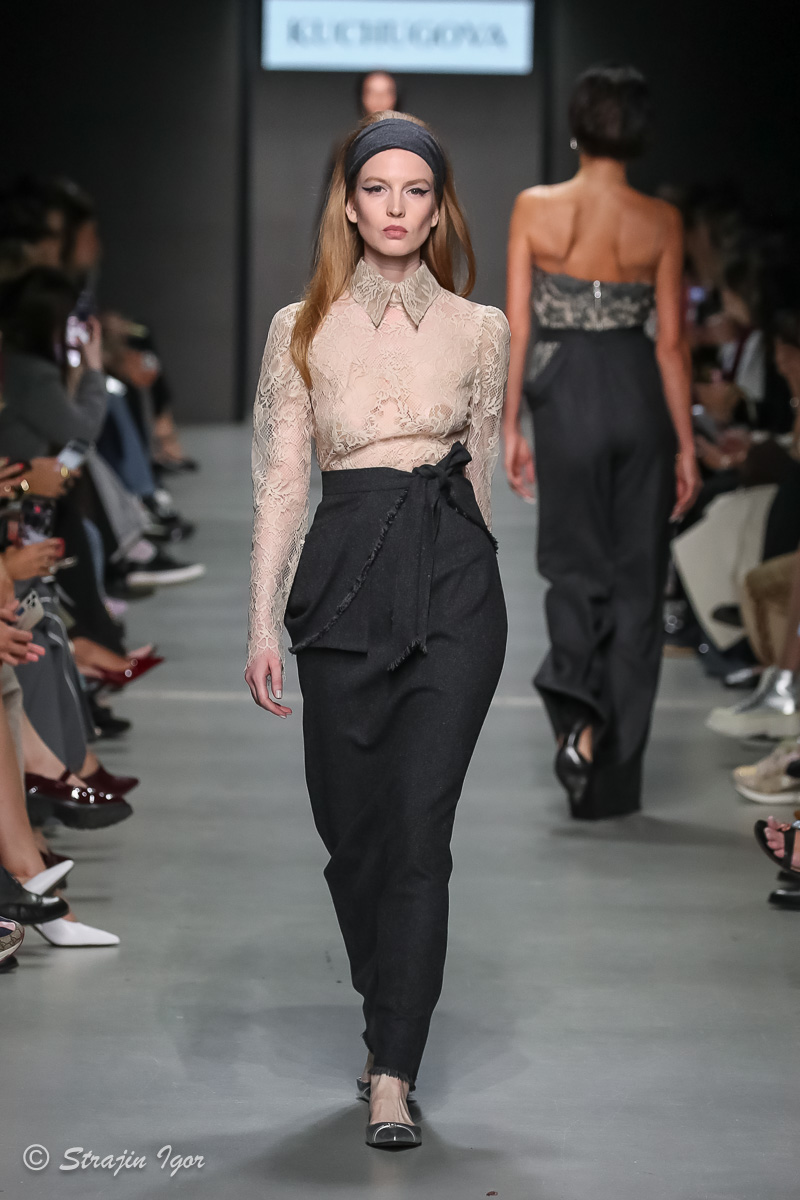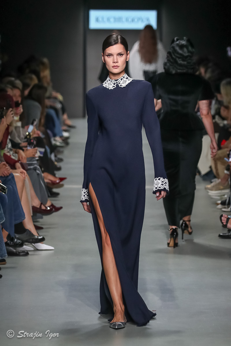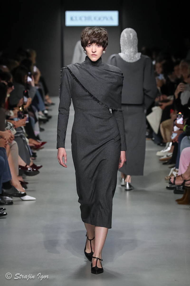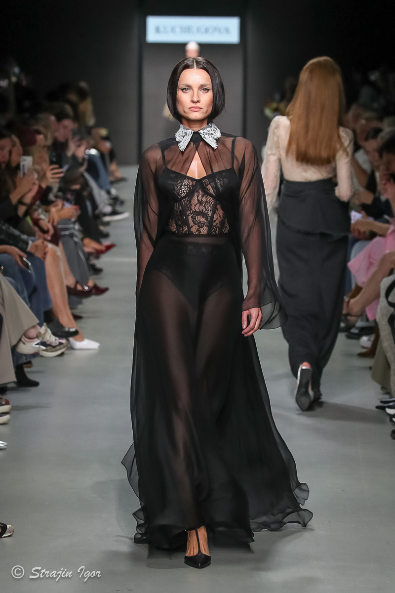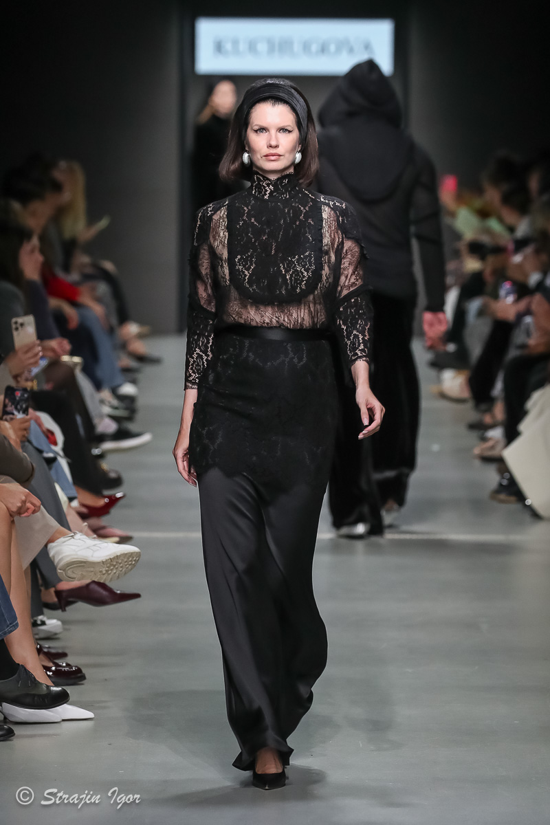 Коллекция бренда KUCHUGOVA (Москва) представлена на подиуме Московской недели моды, в которой были переосмыслены темы готики, культа рыцарства и образа прекрасной дамы.