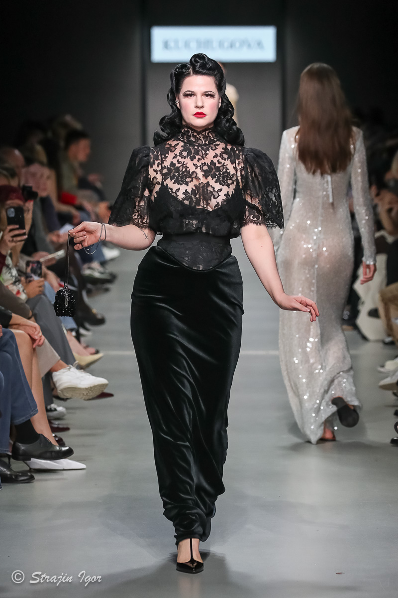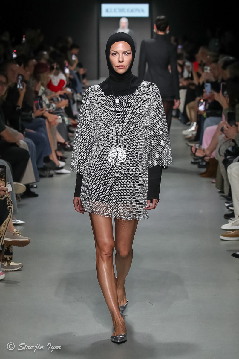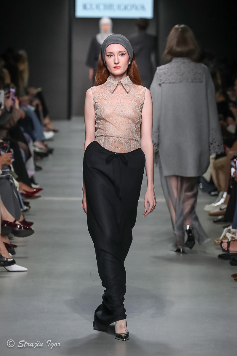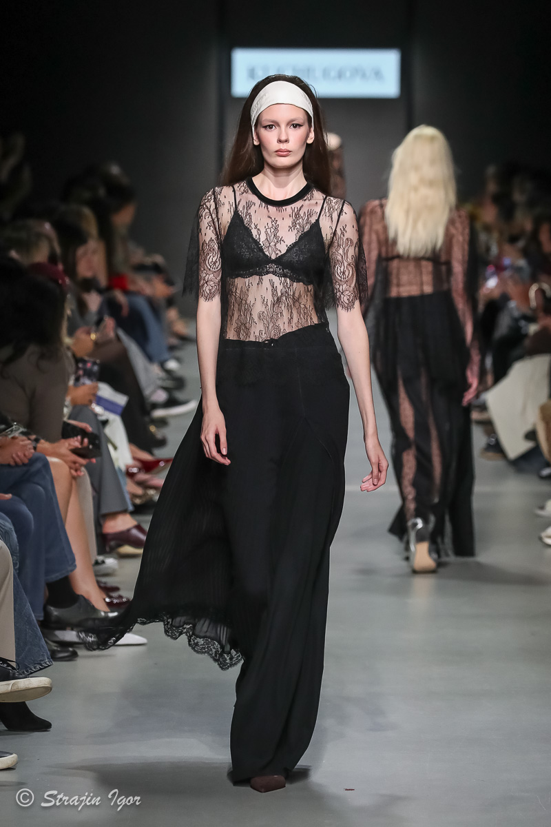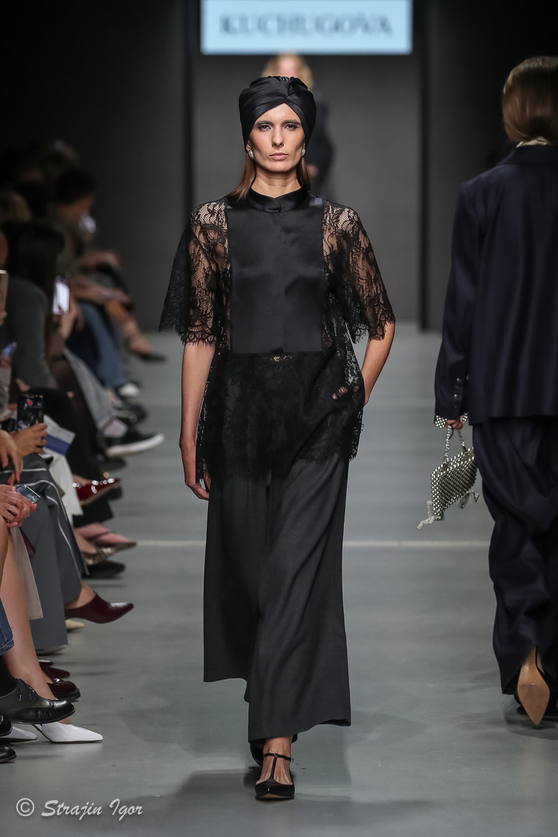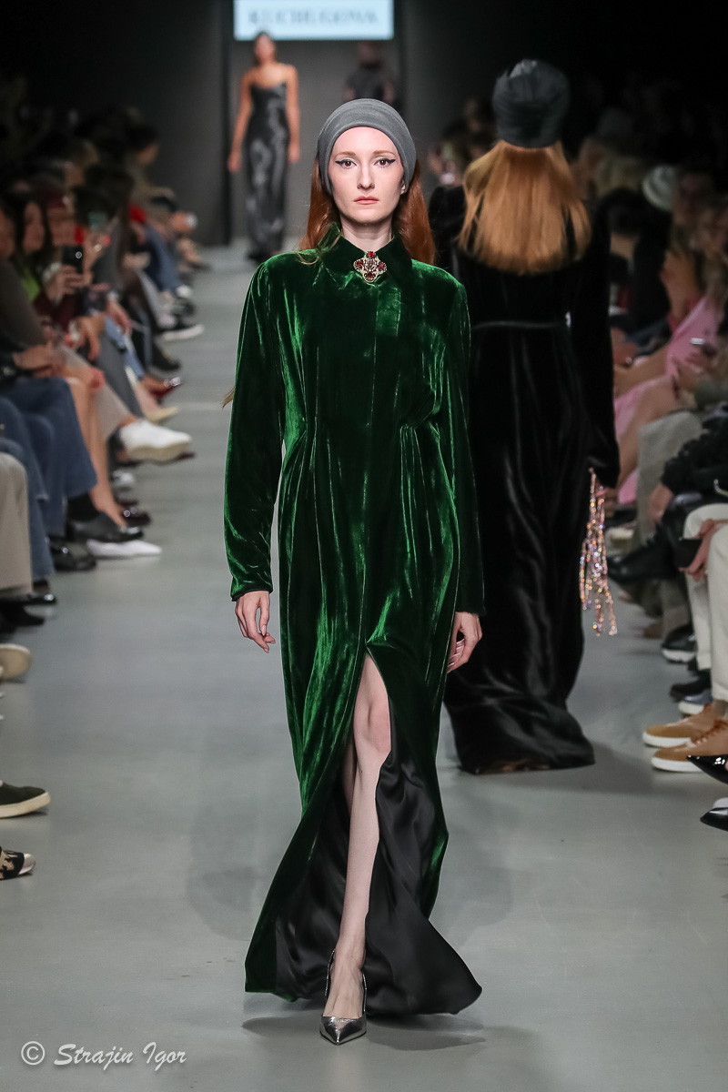 Коллекция бренда KUCHUGOVA (Москва) представлена на подиуме Московской недели моды, в которой были переосмыслены темы готики, культа рыцарства и образа прекрасной дамы.