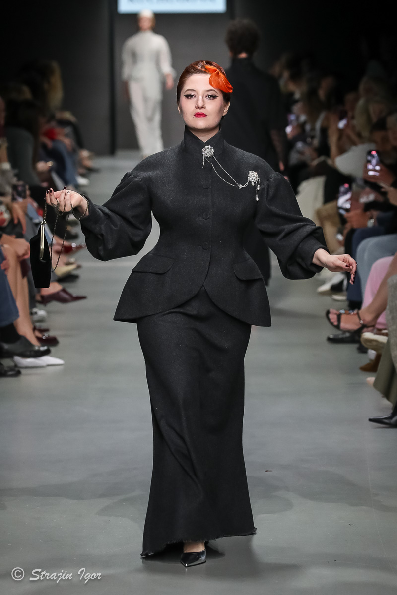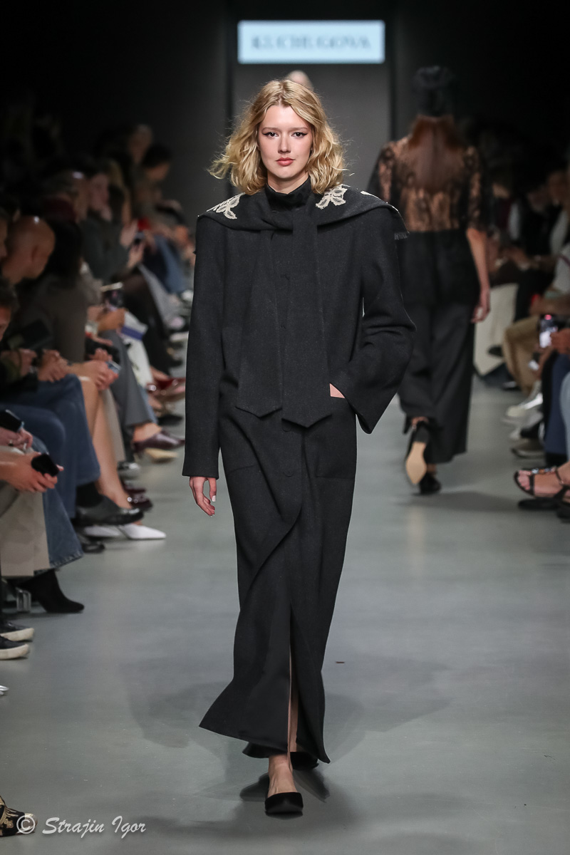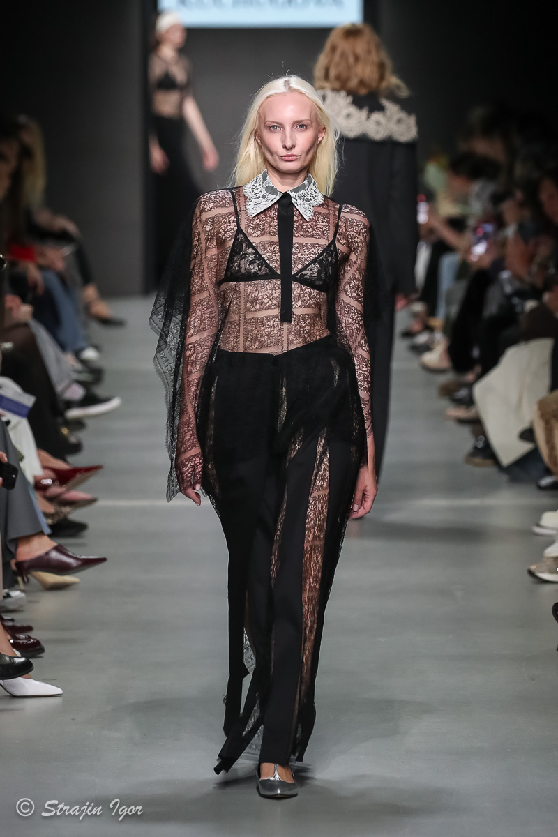 Команда исследовала трансформации исторического кроя, сохранив узнаваемые черты эпохи в современном прочтении. Элегантные силуэты выполнены из таких материалов как кашемир, шёлк и дополнены органзой и кружевом. В коллекции использована чёрно-белая гамма, сложные серые оттенки, а также принт «горох». Головные уборы и обувь, разработанные специально для этой линейки, стали её органичным продолжением.