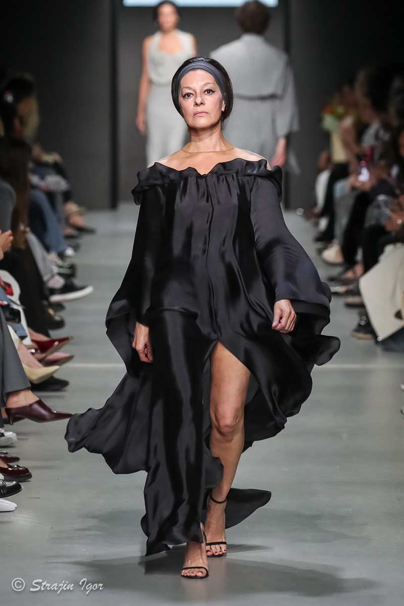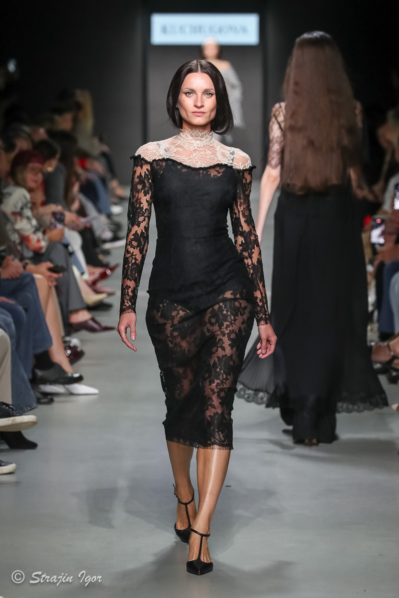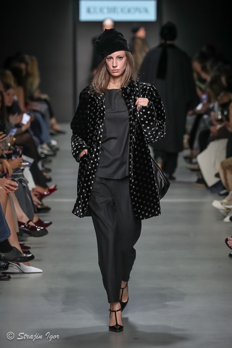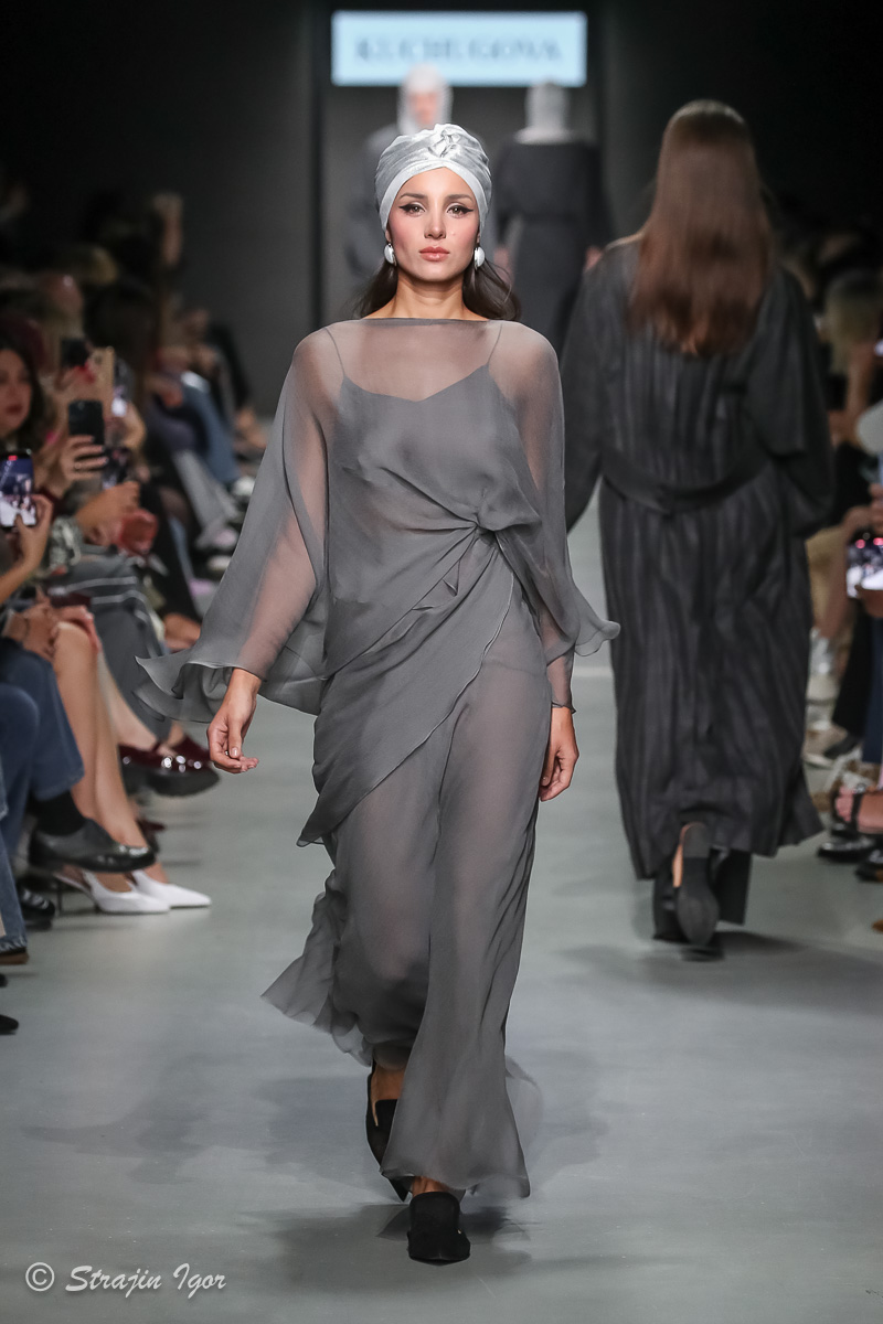 Команда исследовала трансформации исторического кроя, сохранив узнаваемые черты эпохи в современном прочтении. Элегантные силуэты выполнены из таких материалов как кашемир, шёлк и дополнены органзой и кружевом. В коллекции использована чёрно-белая гамма, сложные серые оттенки, а также принт «горох». Головные уборы и обувь, разработанные специально для этой линейки, стали её органичным продолжением.