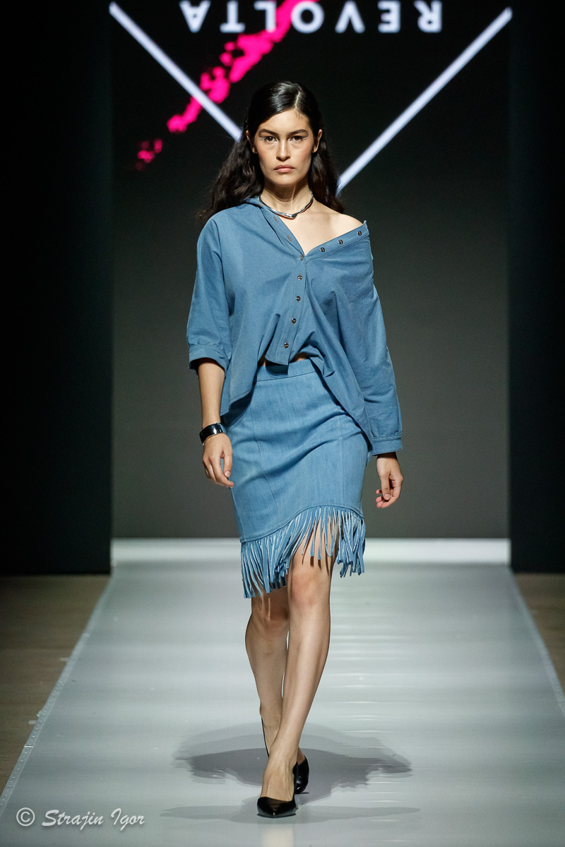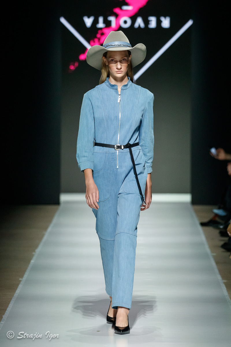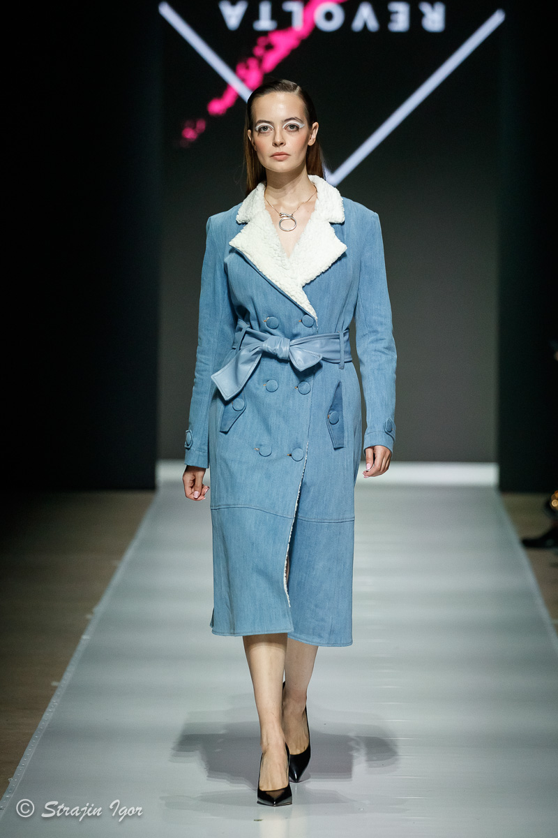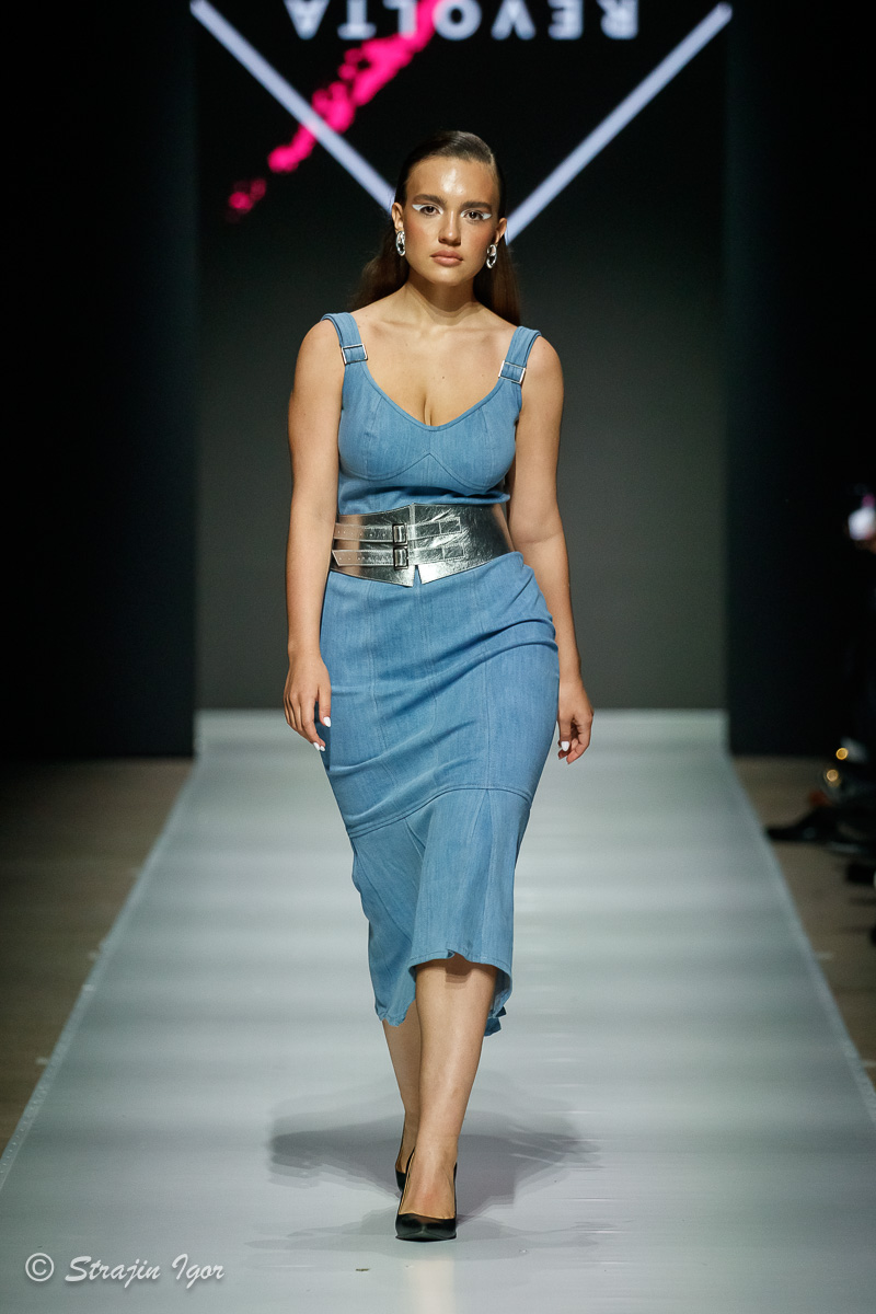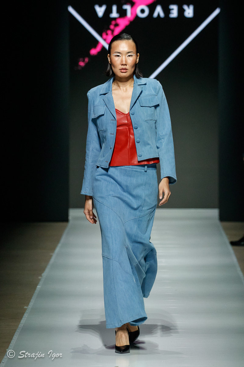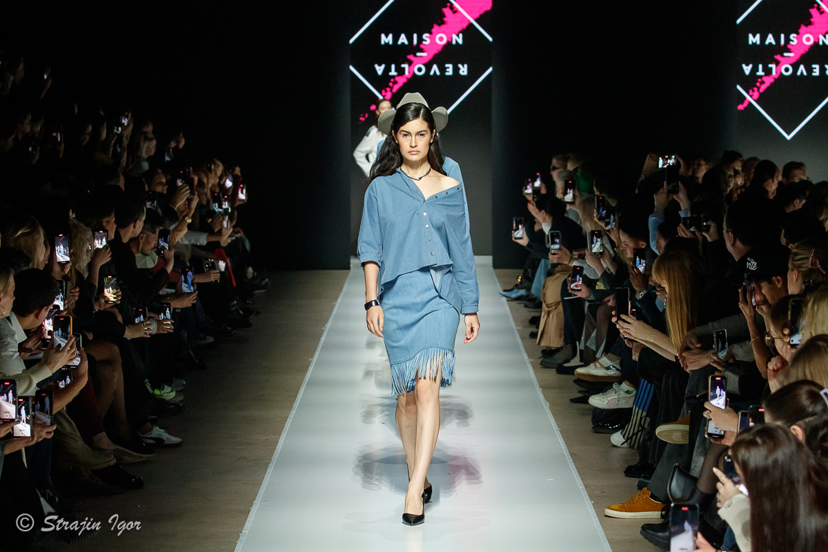 Деним, кожа и акцентные вставки: коллекция бразильского бренда MAISON REVOLTA на подиуме Московской недели моды.