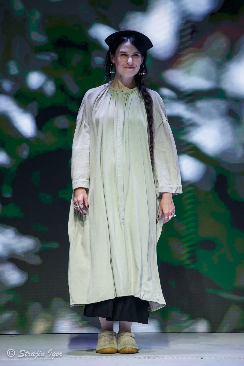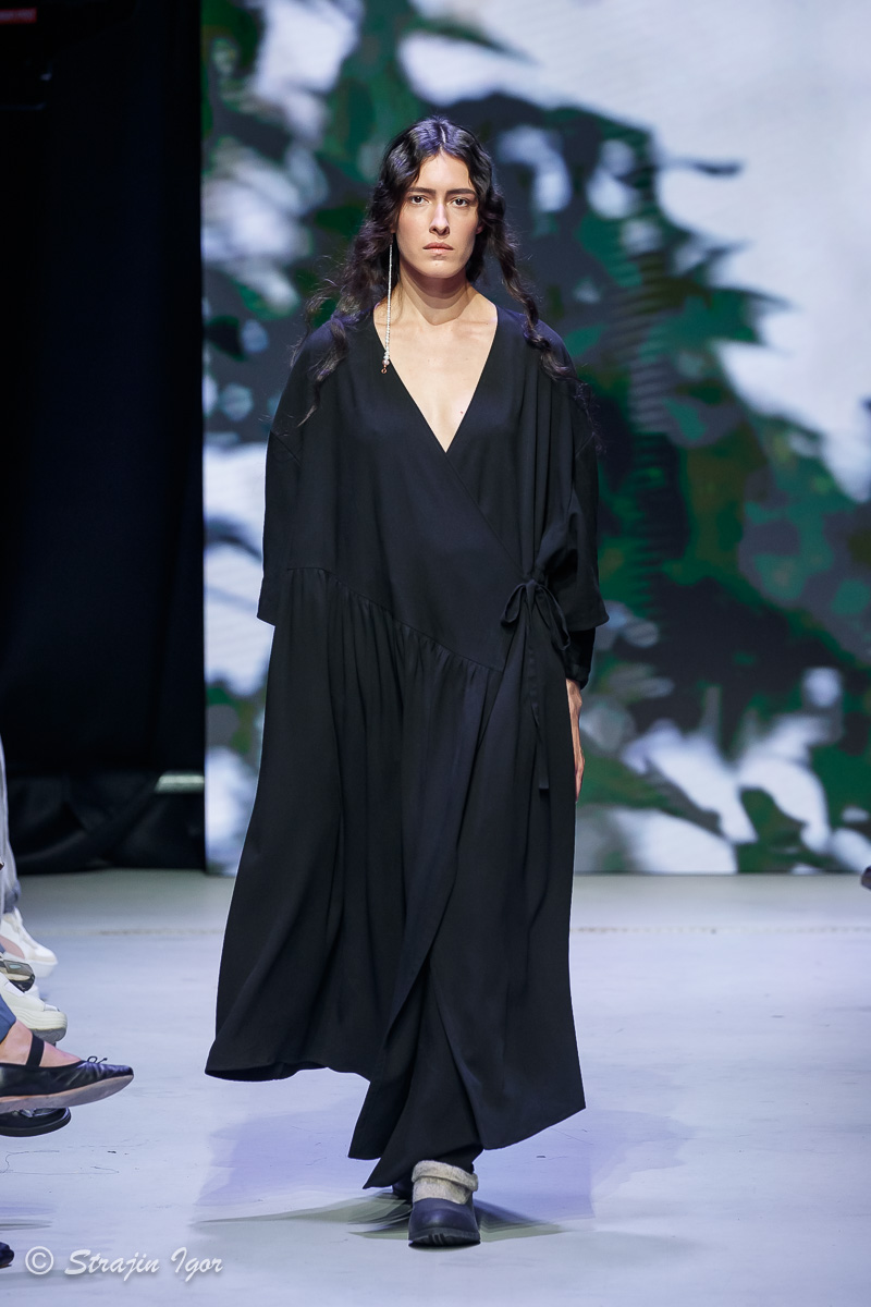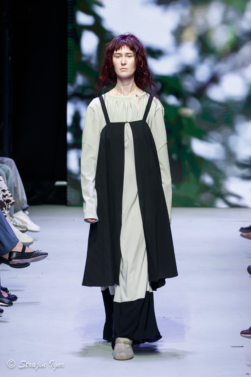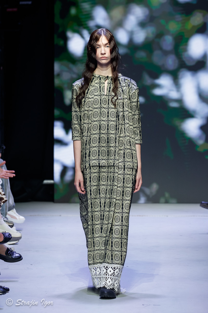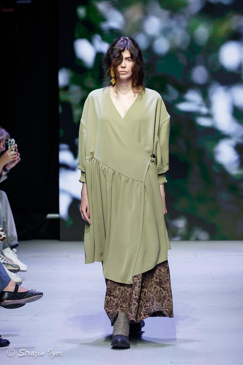 Основу линейки составили свободные платья макси, сарафаны, туники на запах и с асимметричными завязками, надетые поверх юбок. Силуэты преимущественно свободные, с акцентом на воздушность. В коллекции использовались легкие и плотные ткани с различными текстурами. Цветовая гамма строилась на нейтральных и пастельных тонах: чёрном, белом, бежевом и коричневом. Принты дополнили образы.