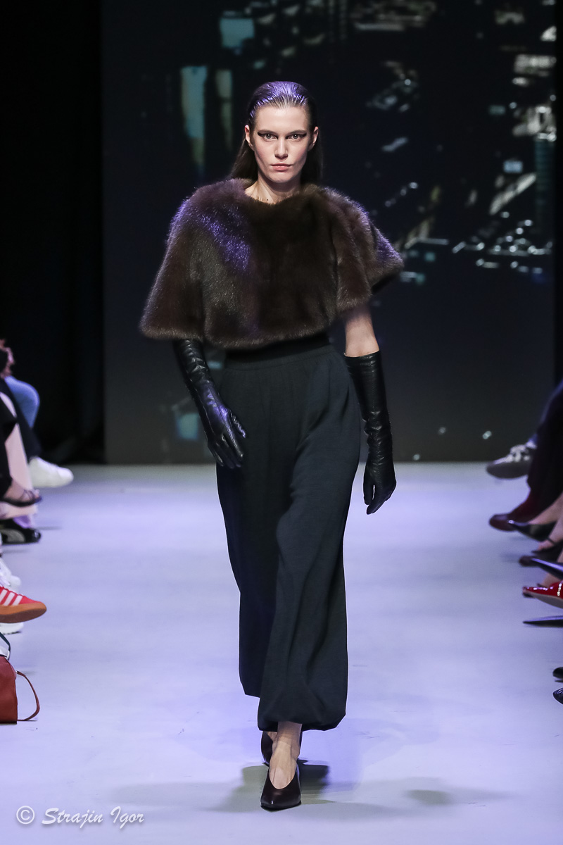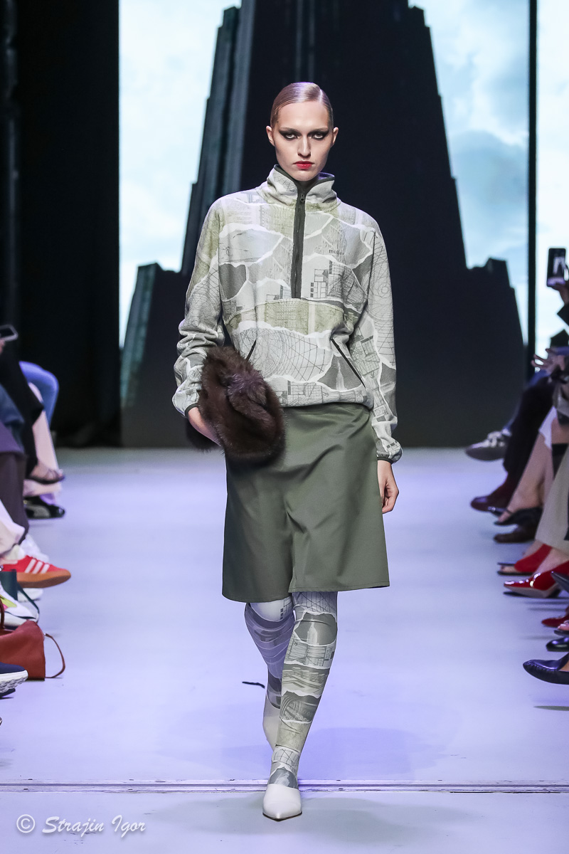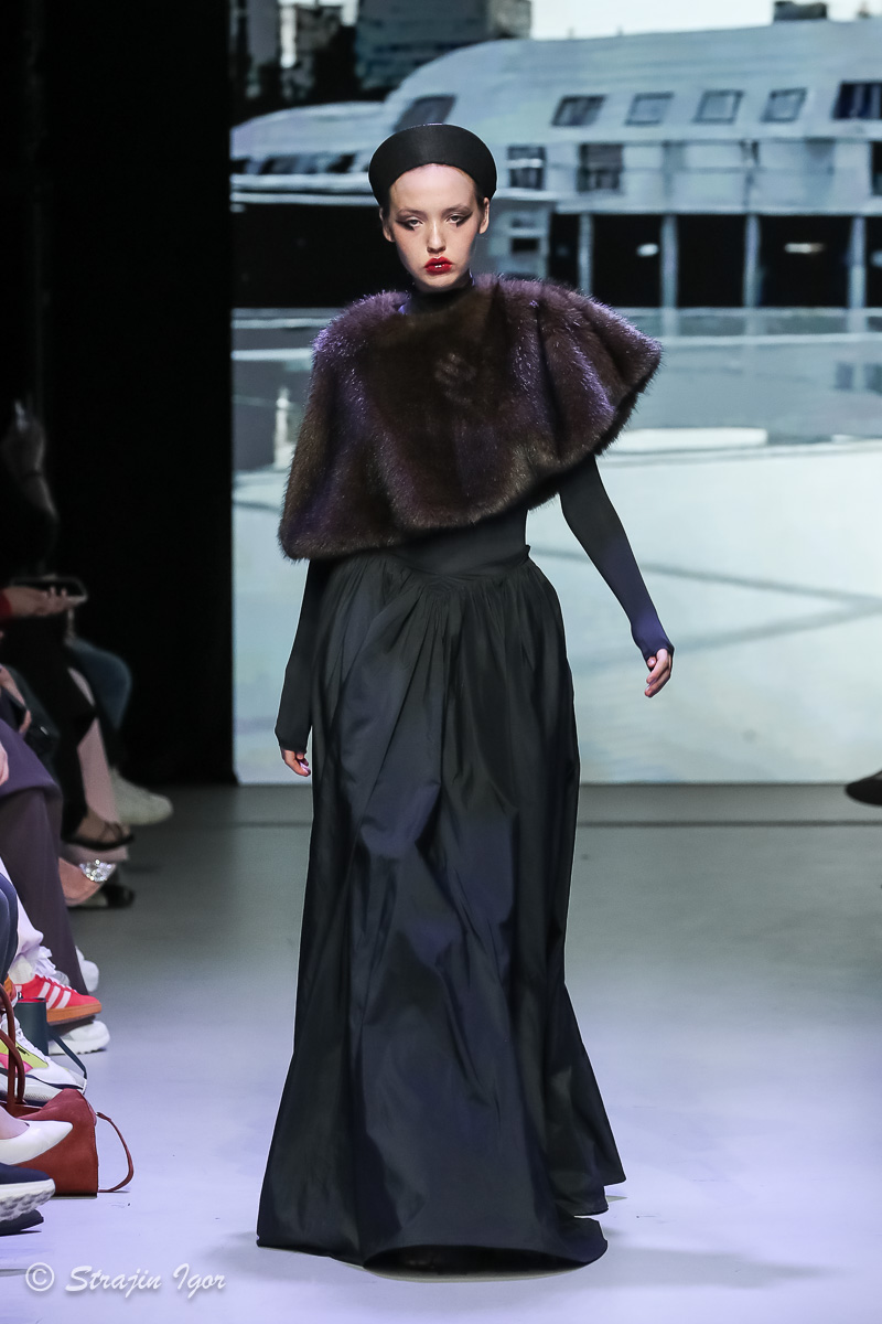 «Коллекция вдохновлена бумажной архитектурой — это то будущее, которое видели конструктивисты 1920-1960-х годов, но из-за сложных технических моментов не все возможно было реализовать. Мы взяли его за основу, переработали, создали свои принты, вдохновились русским кодом — теми элементами, которые всегда присущи русской моде, русской культуре. Мы их переработали в своем стиле. На показе были кокошники, много меха. Мех — это не только тренд этого сезона, но и часть русской культуры. Нам хотелось это донести не в лоб, а стильно, модно. И вот так мы замешали всю эту русскую культуру от авангарда до классических элементов»