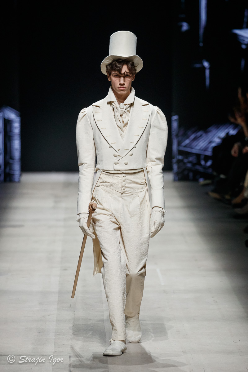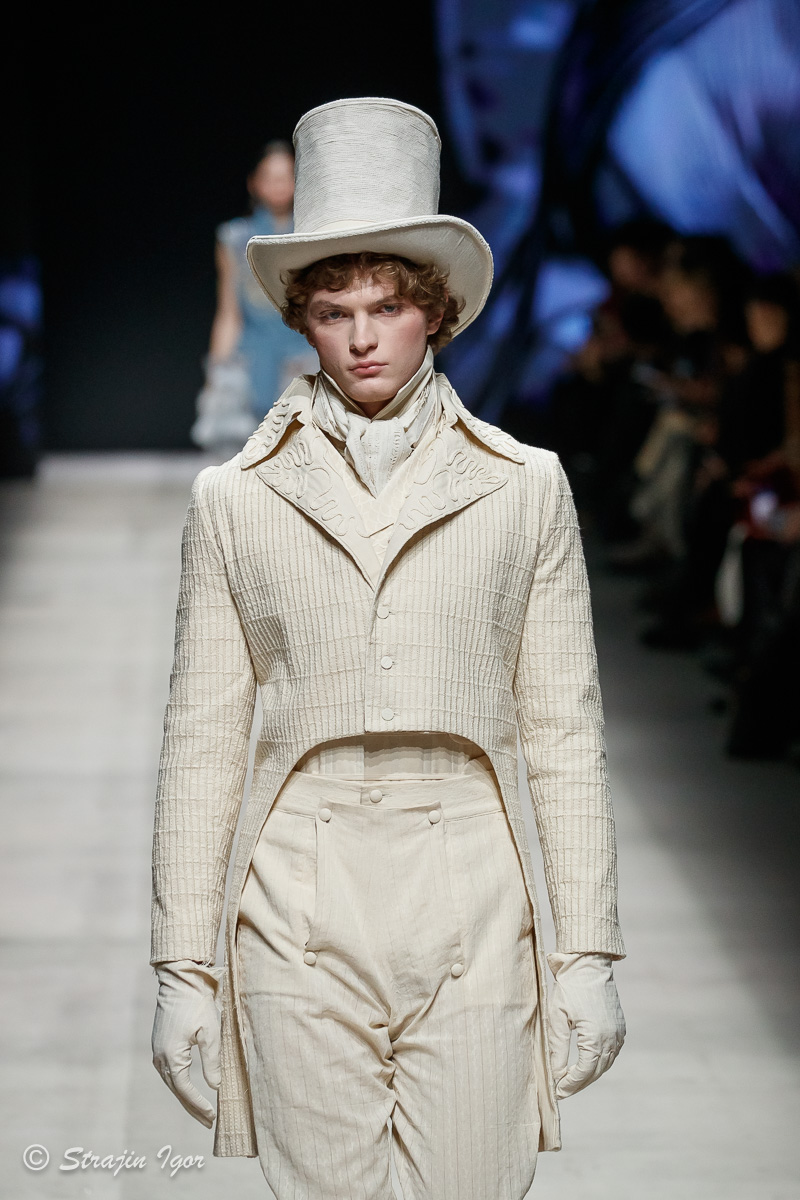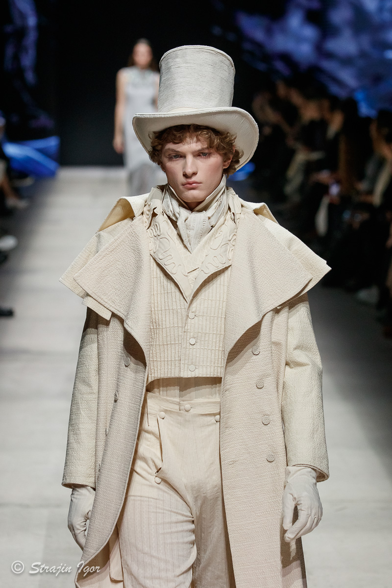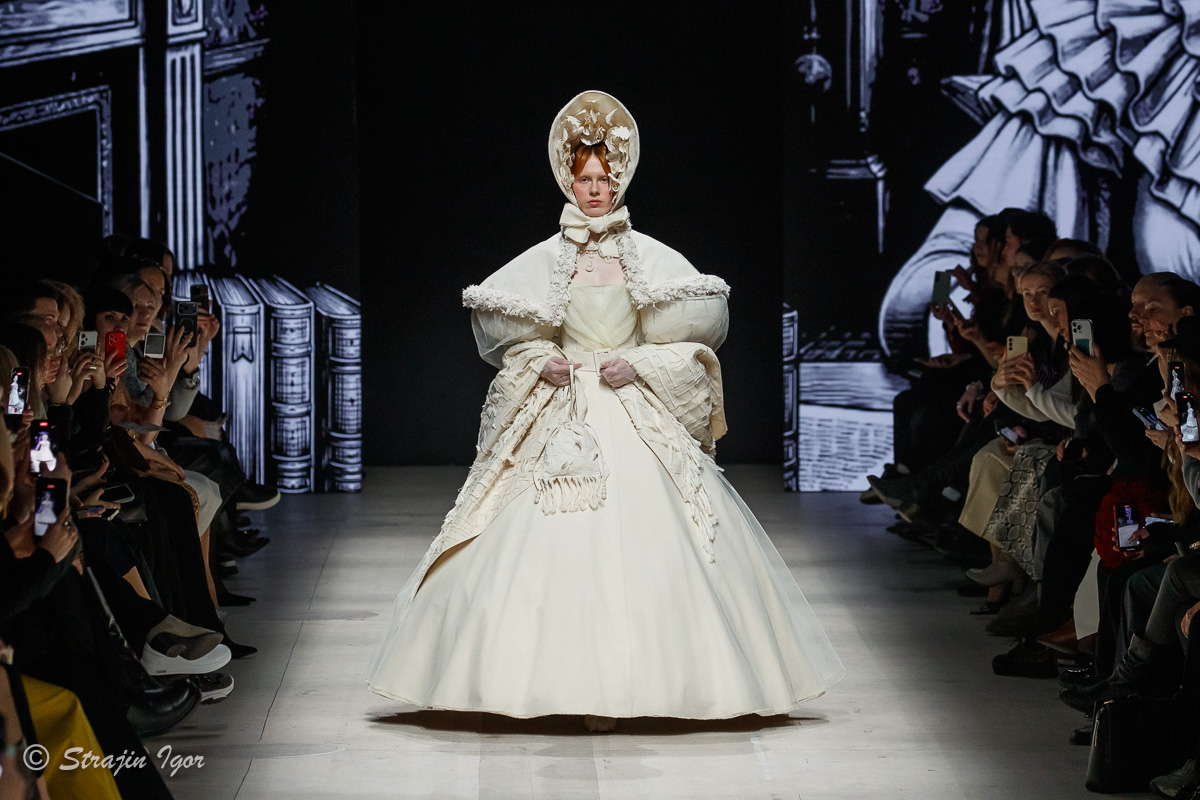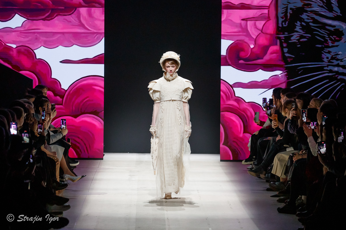 Студенты вдохновлёные образами XIX века: гравюрами, эскизами и литературными описаниями. Подготовили показ, где каждая деталь костюмов переносила зрителей в атмосферу дворянских салонов и волшебных сюжетов. Шапочки и шляпы, стилизованные под дворянские наряды, соседствовали с необычными элементами вроде юбки, напоминающей рыболовную сеть.