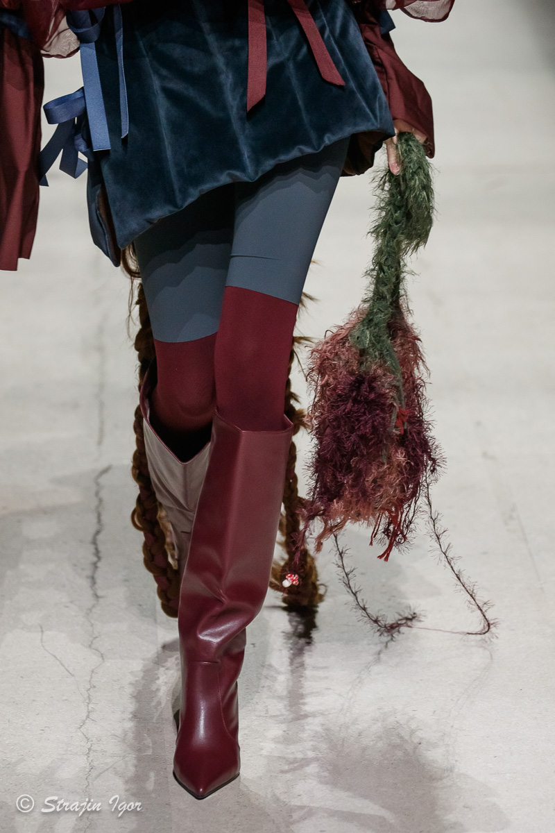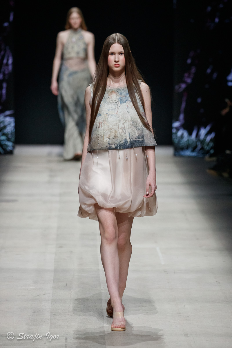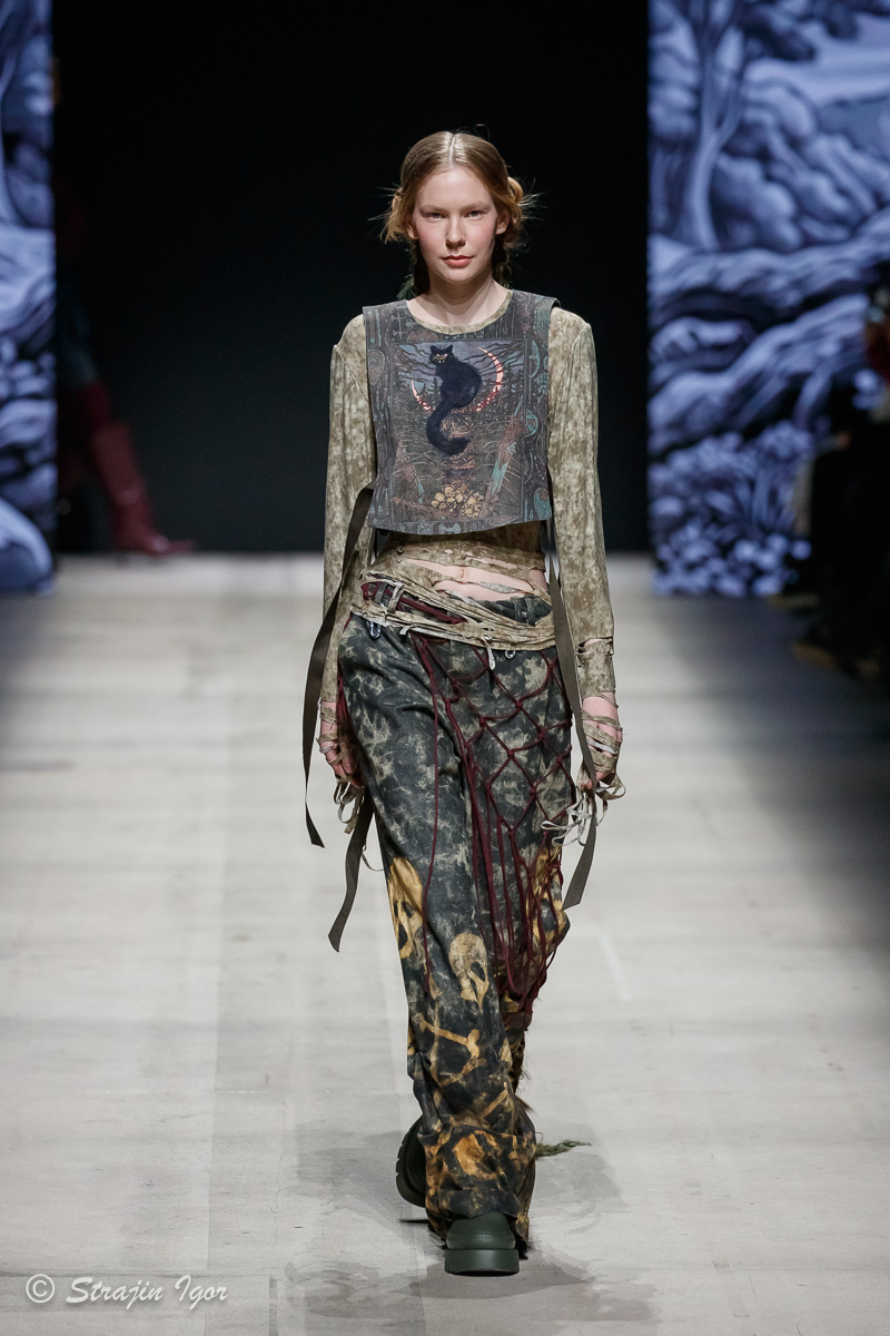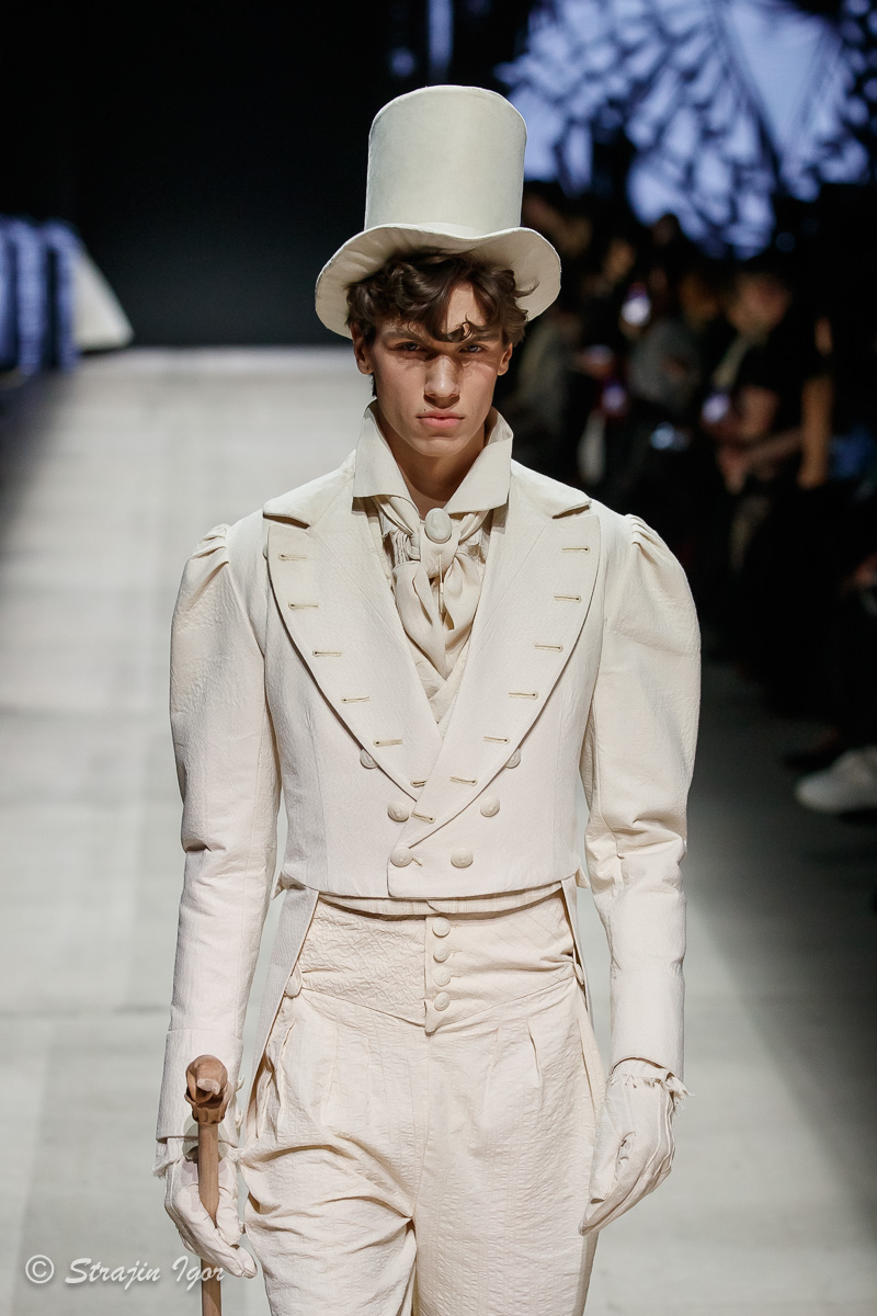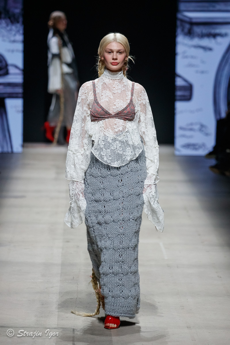 Студенты вдохновлёные образами XIX века: гравюрами, эскизами и литературными описаниями. Подготовили показ, где каждая деталь костюмов переносила зрителей в атмосферу дворянских салонов и волшебных сюжетов. Шапочки и шляпы, стилизованные под дворянские наряды, соседствовали с необычными элементами вроде юбки, напоминающей рыболовную сеть.