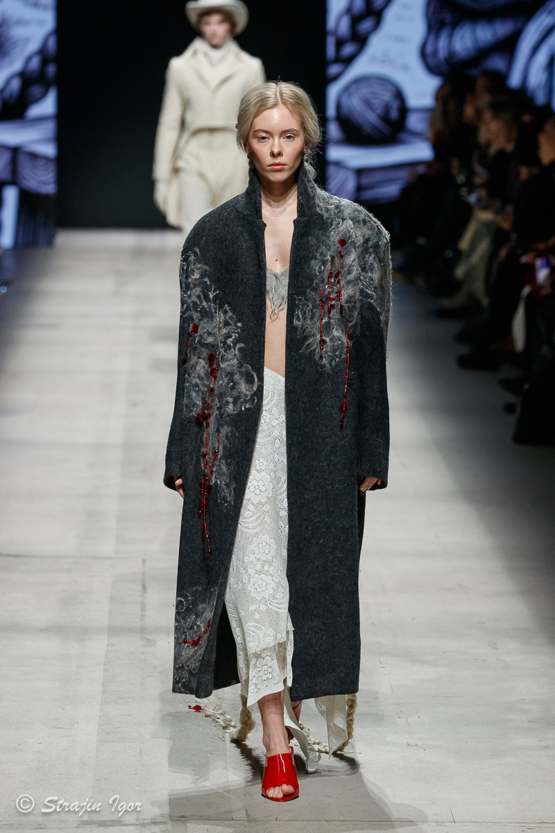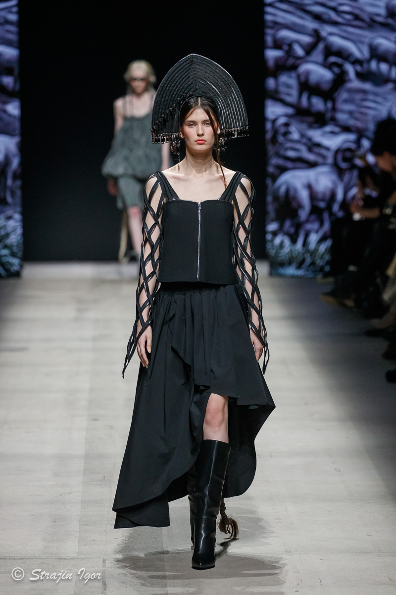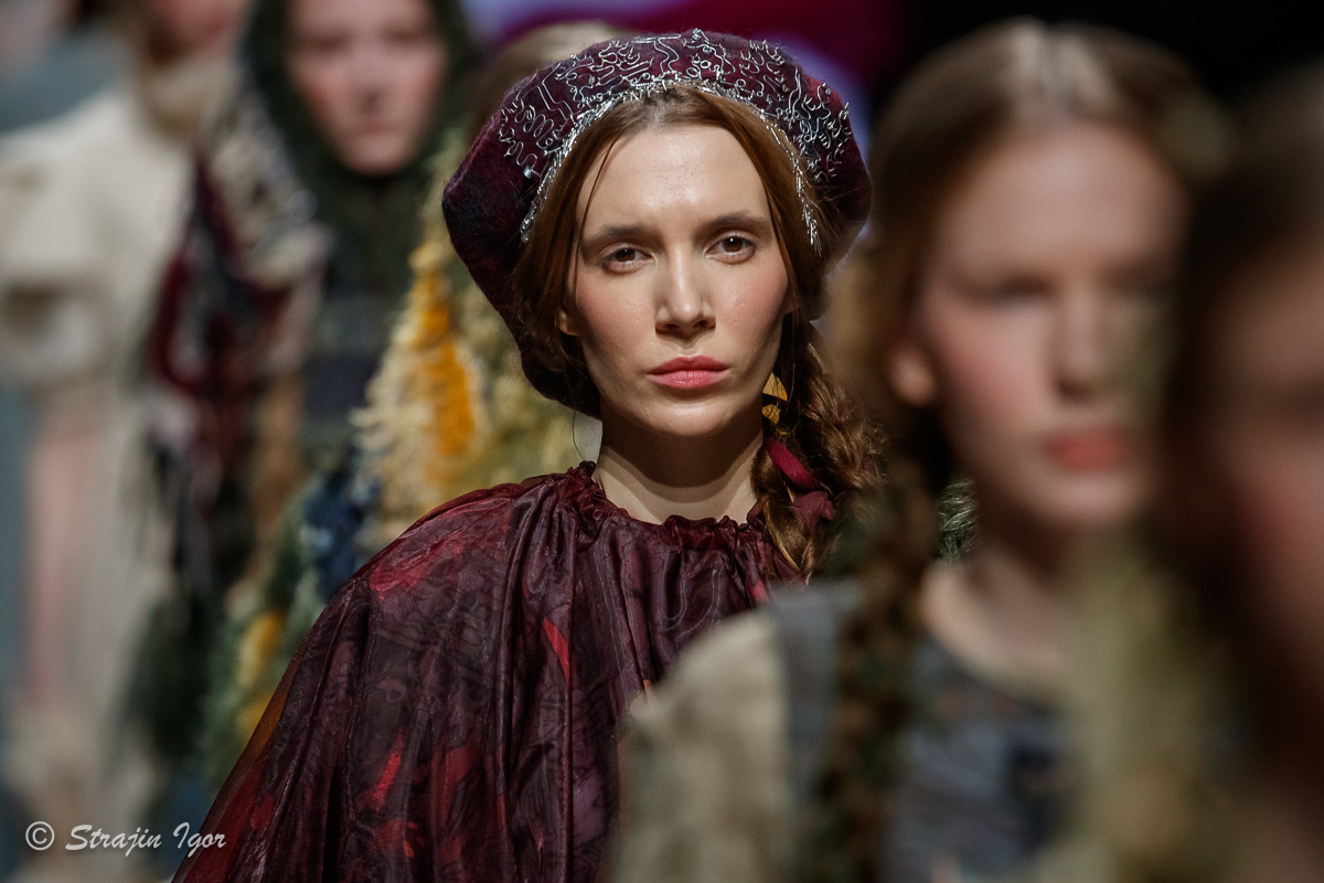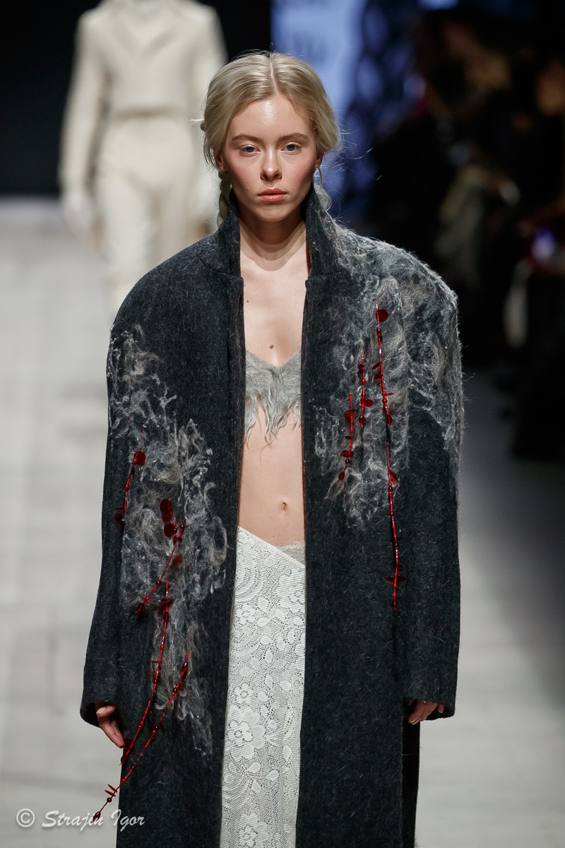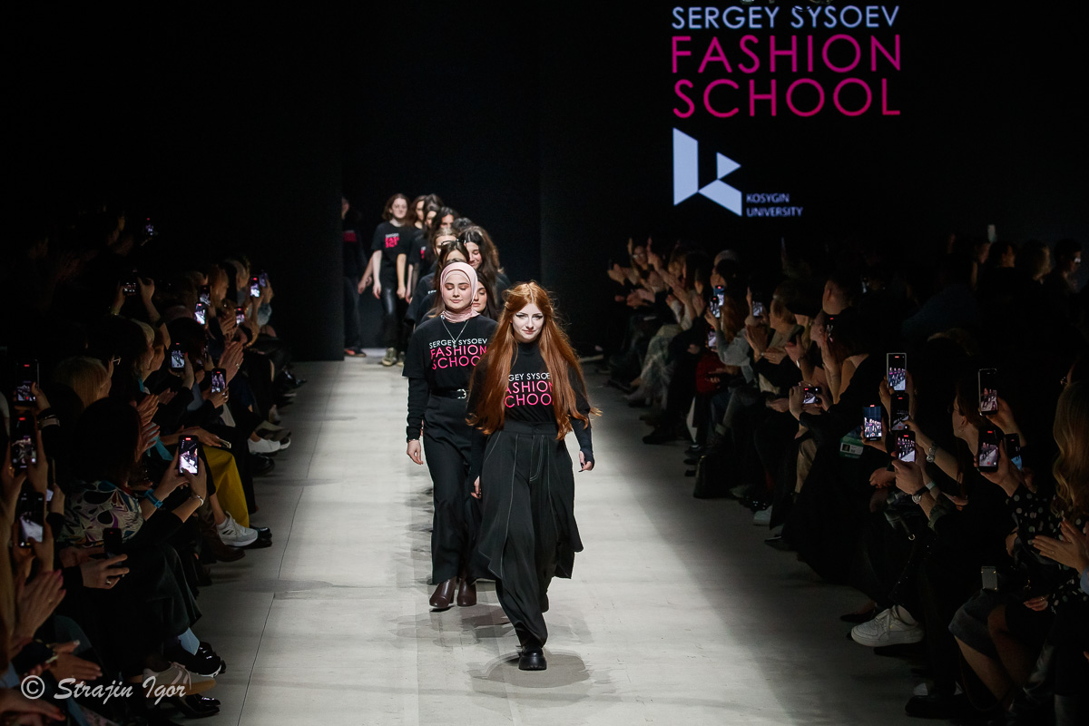 Коллекция учеников Школы моды Сергея Сысоева в РГУ им. А. Н. Косыгина (Москва) на подиуме Московской недели моды.