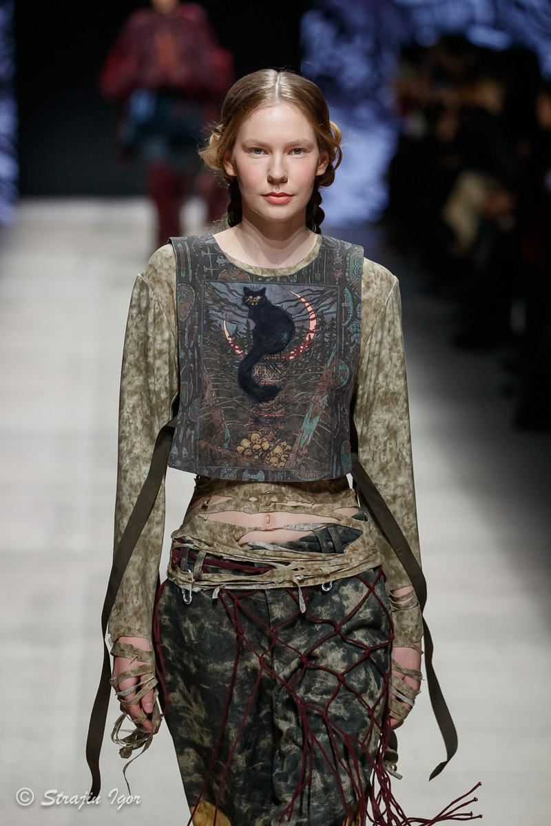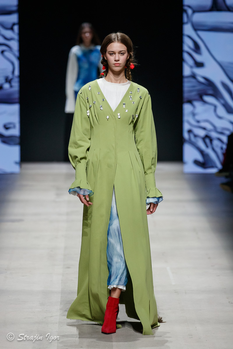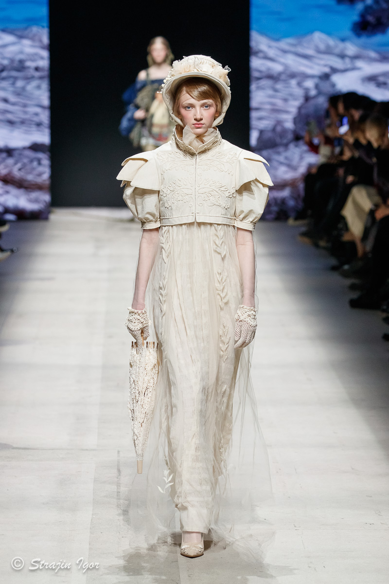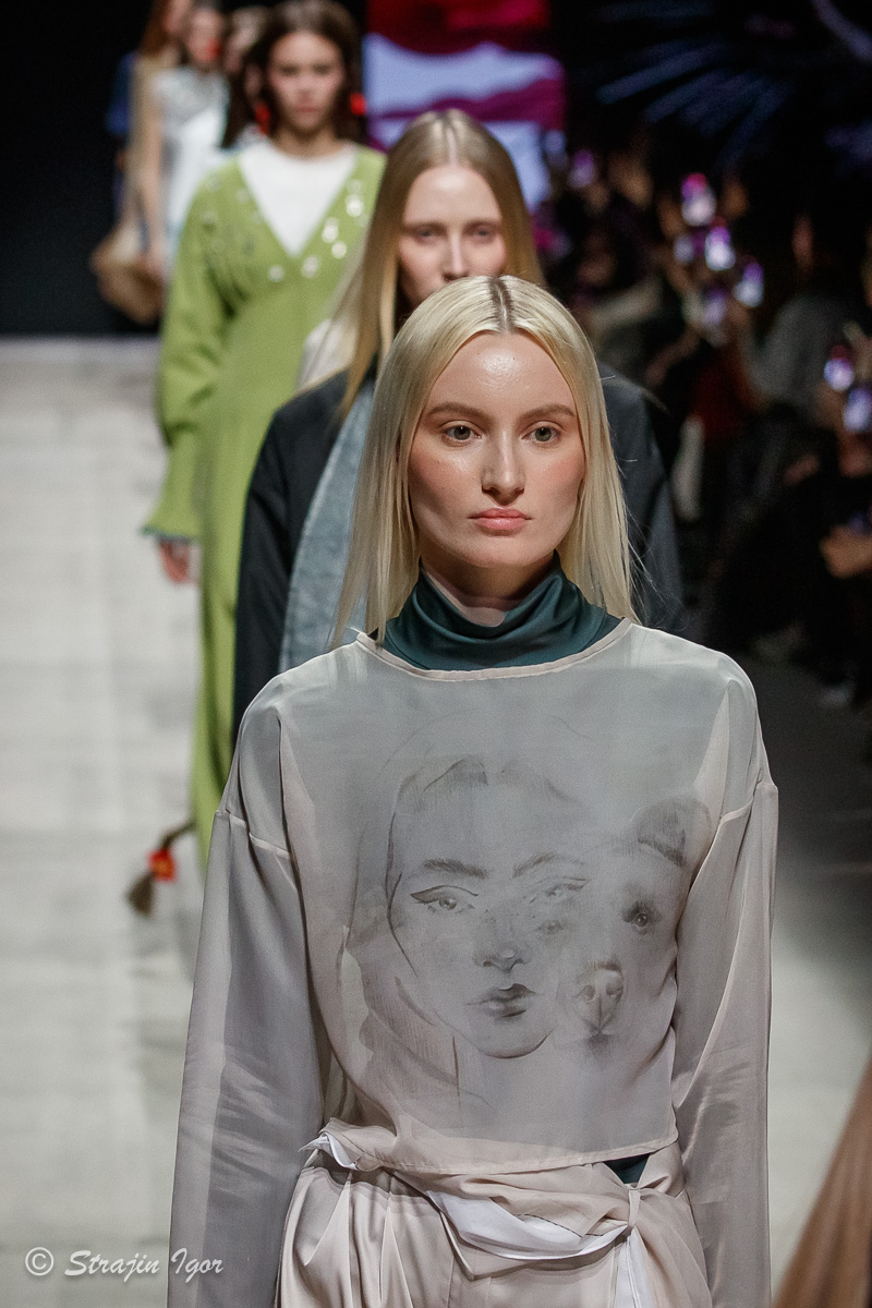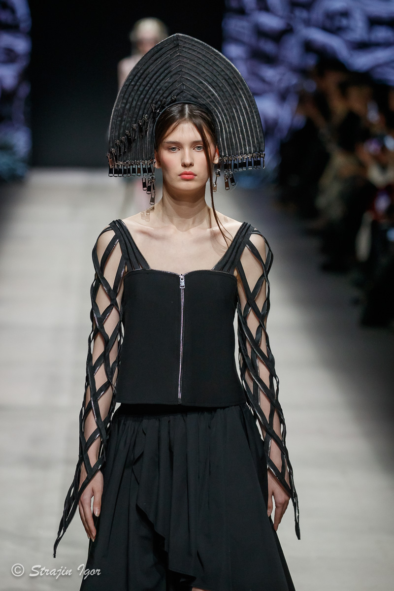 Коллекция учеников Школы моды Сергея Сысоева в РГУ им. А. Н. Косыгина (Москва) на подиуме Московской недели моды.