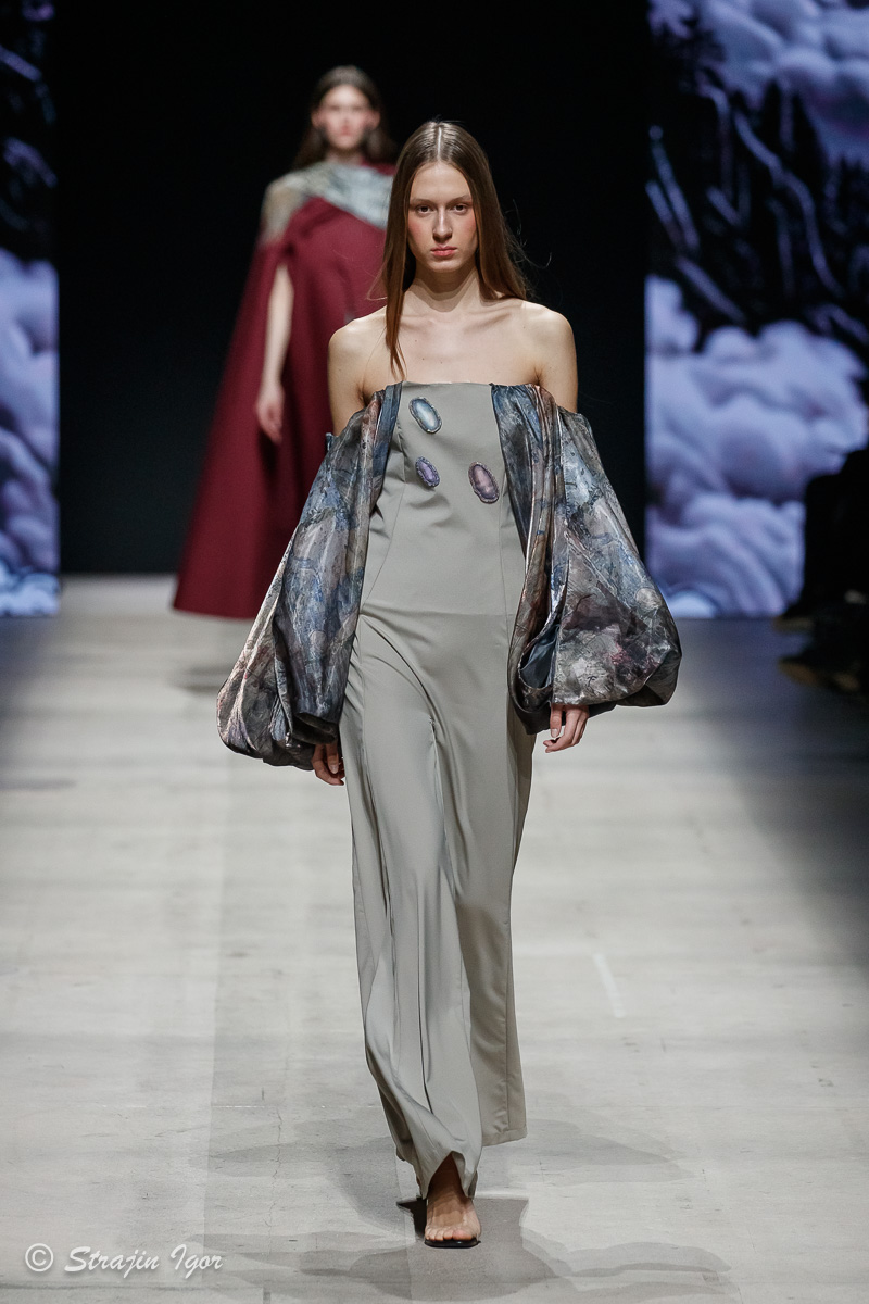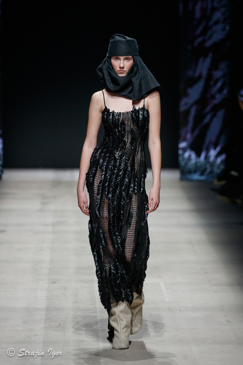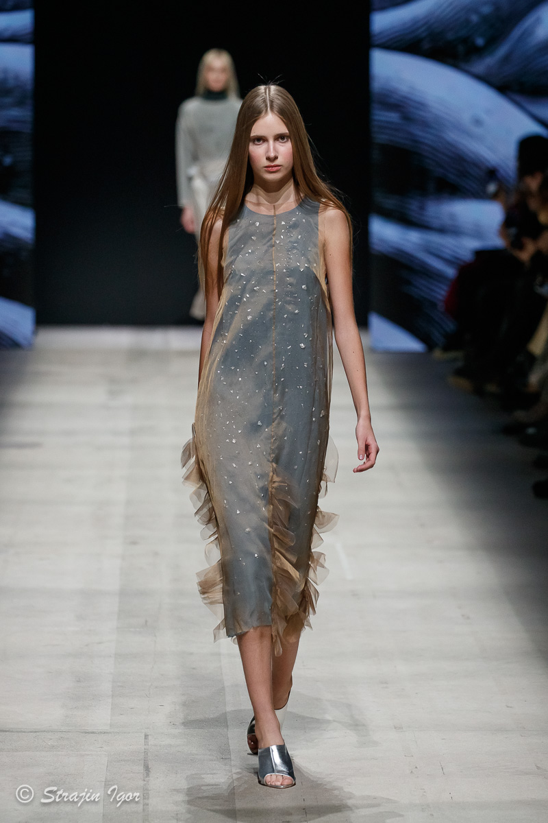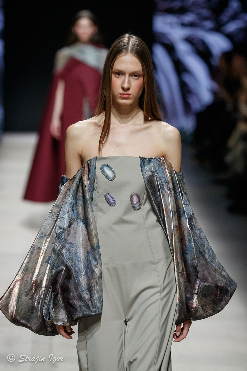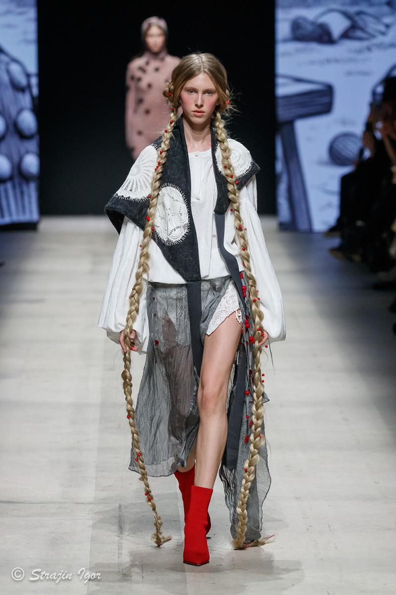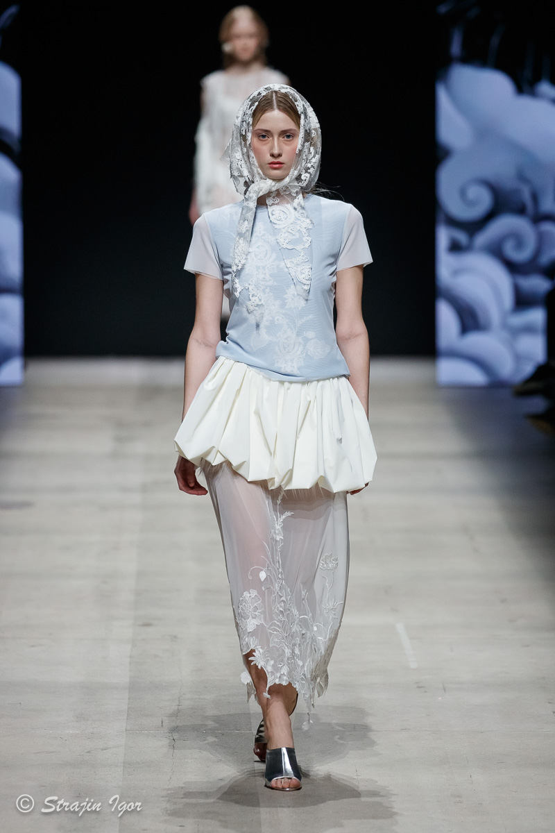 Коллекция учеников Школы моды Сергея Сысоева в РГУ им. А. Н. Косыгина (Москва) на подиуме Московской недели моды.