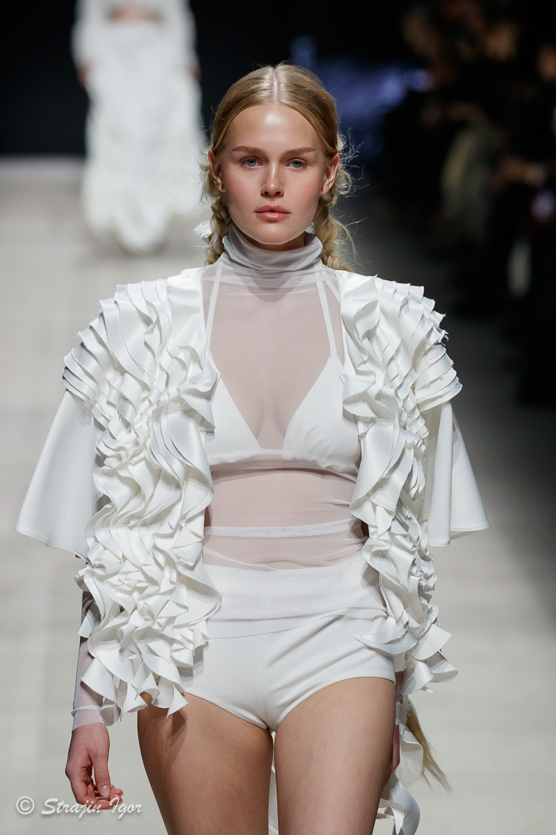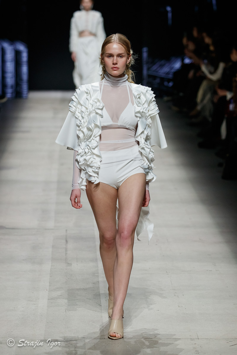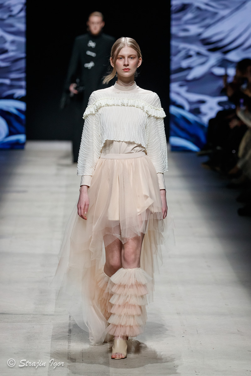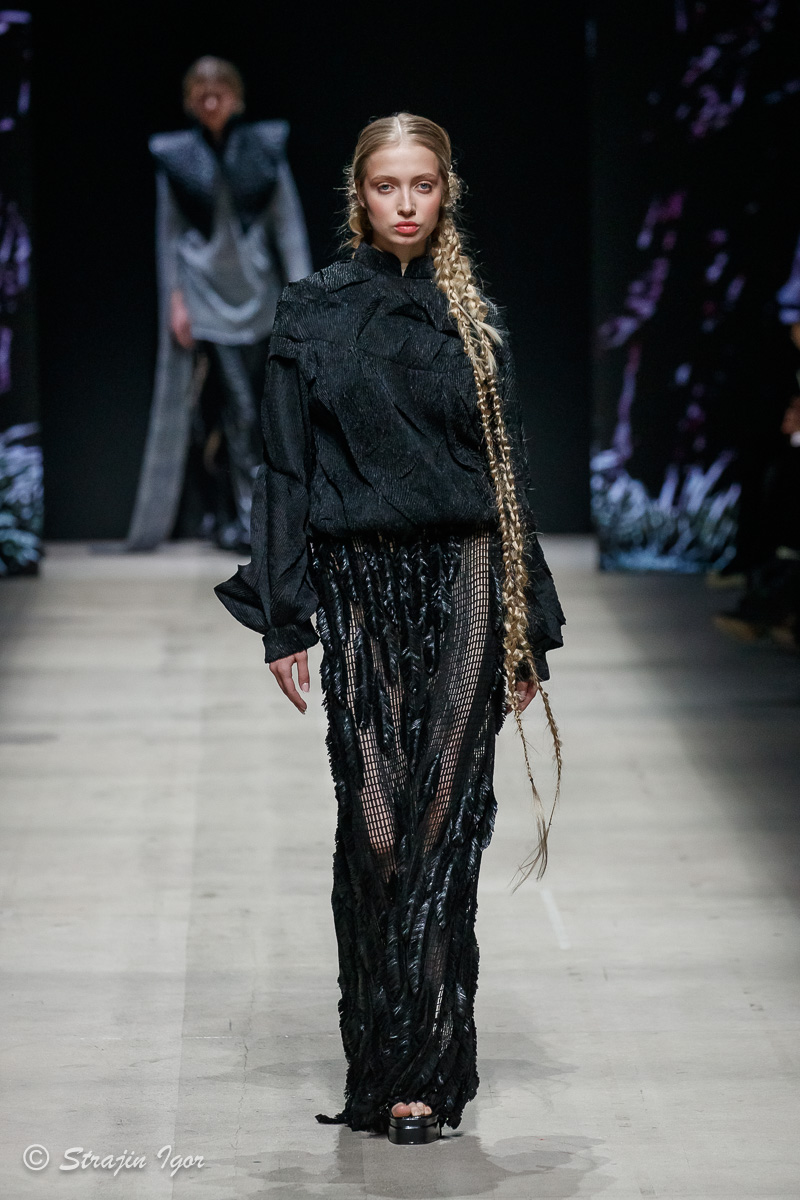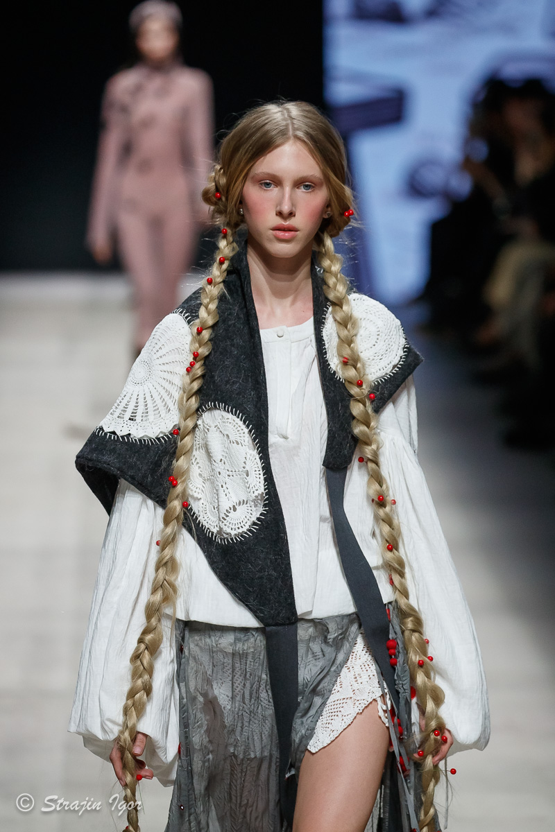 Коллекция учеников Школы моды Сергея Сысоева в РГУ им. А. Н. Косыгина (Москва) на подиуме Московской недели моды.