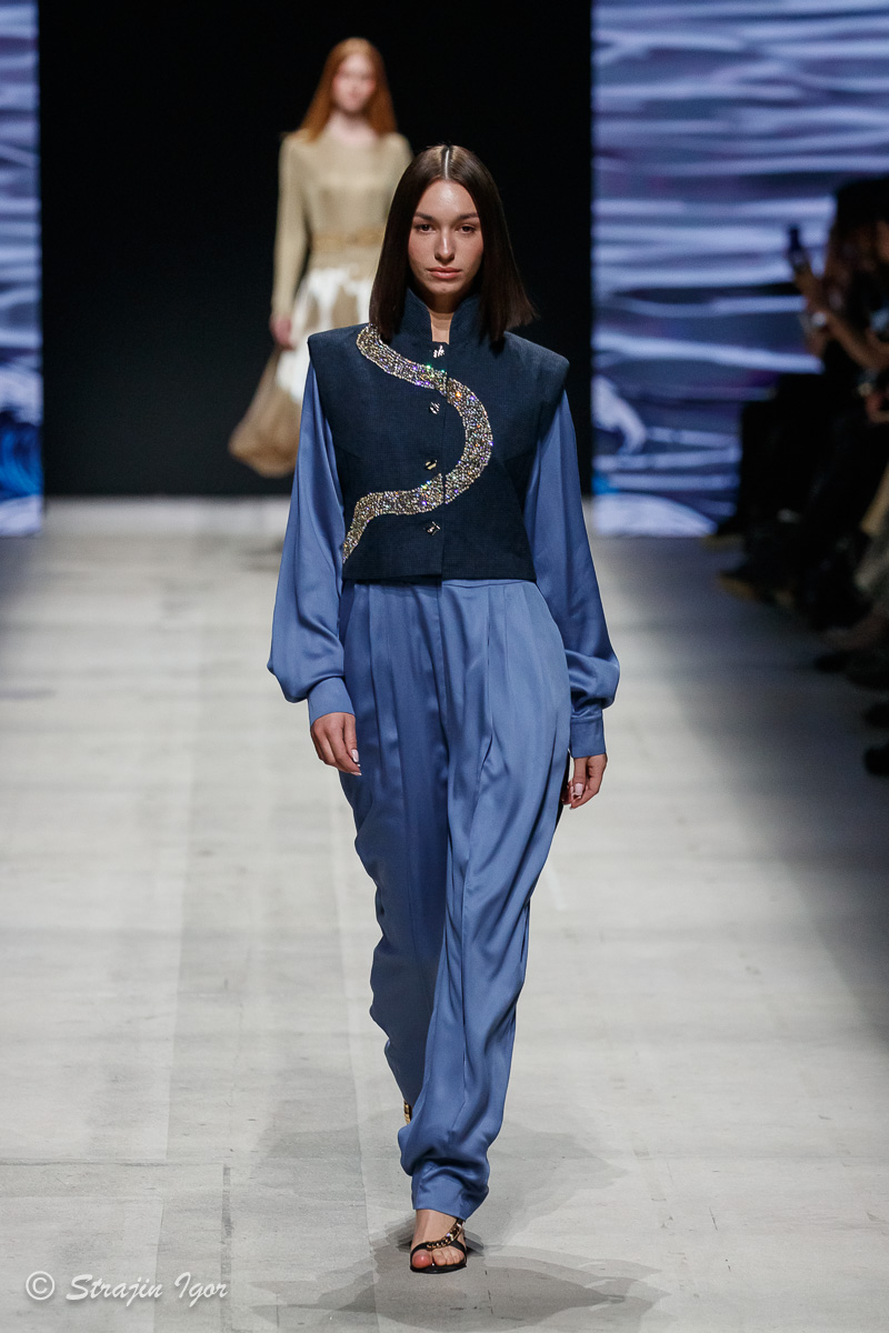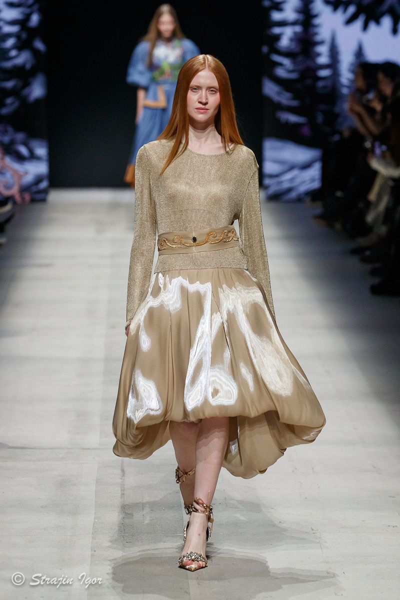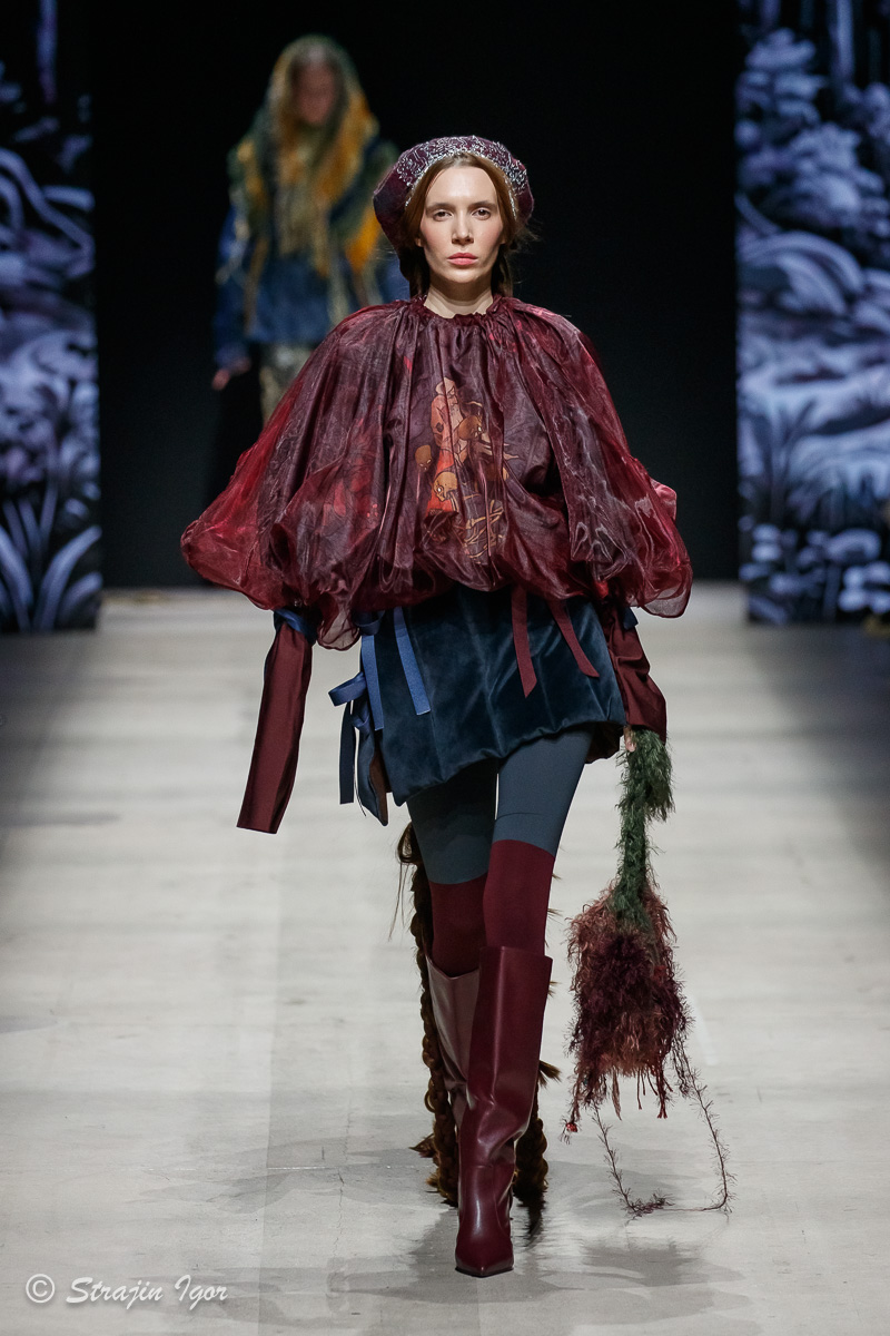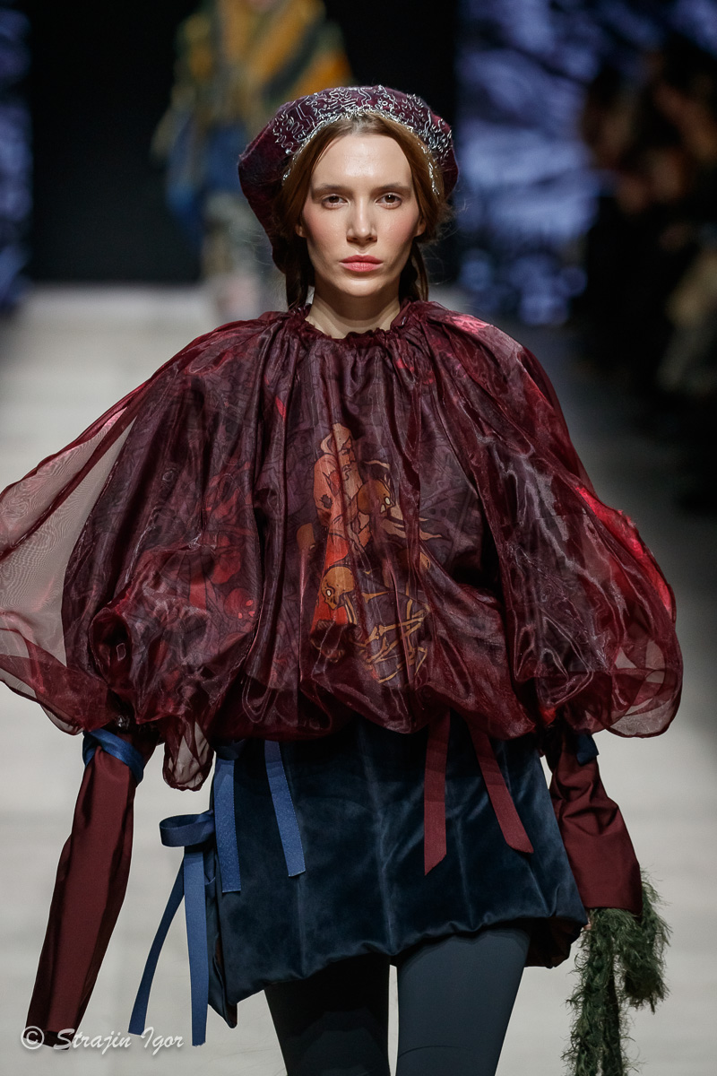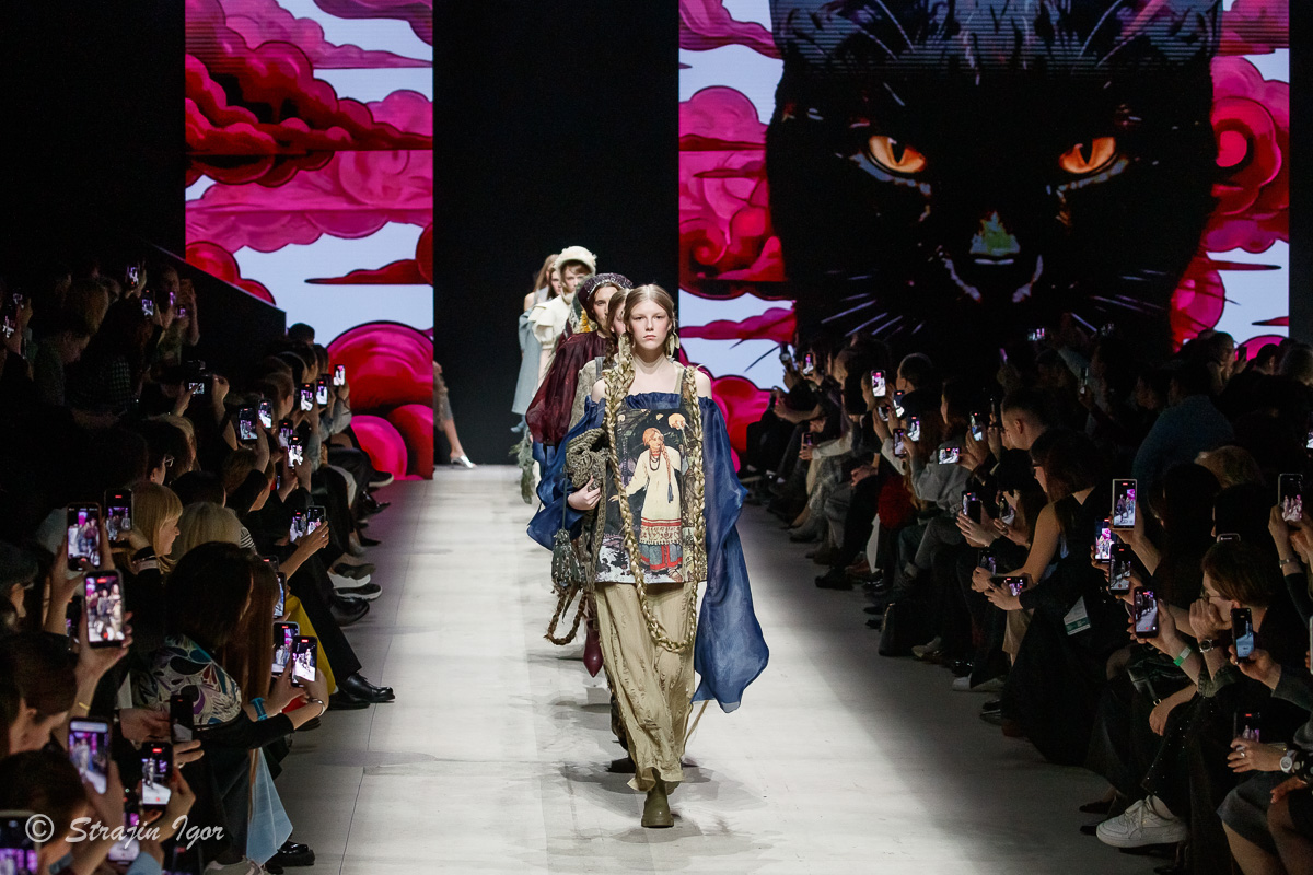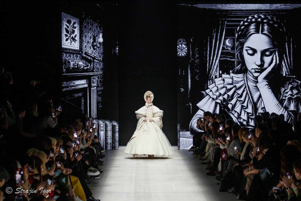 Выход моделей сопровождался озвучкой классических произведений Александра Сергеевича Пушкина. На подиуме ожили сказки, а образы героев воплотились в коллекции.