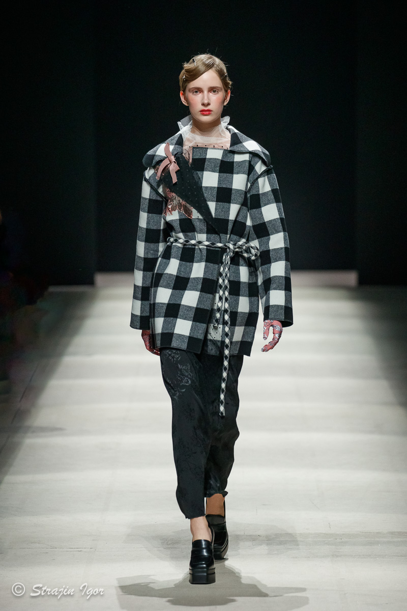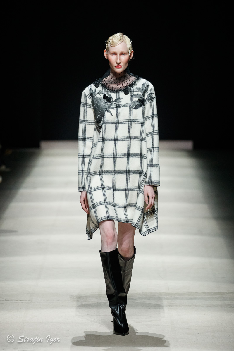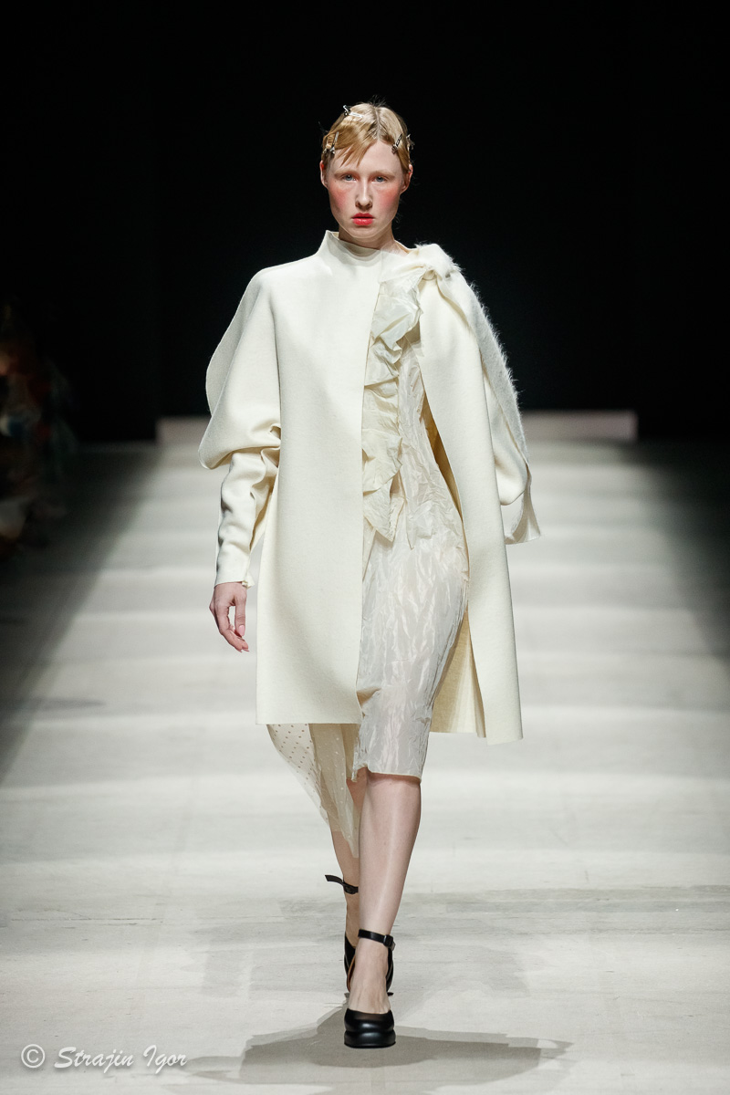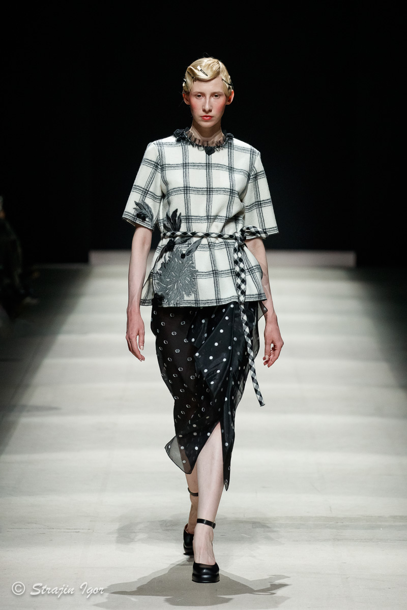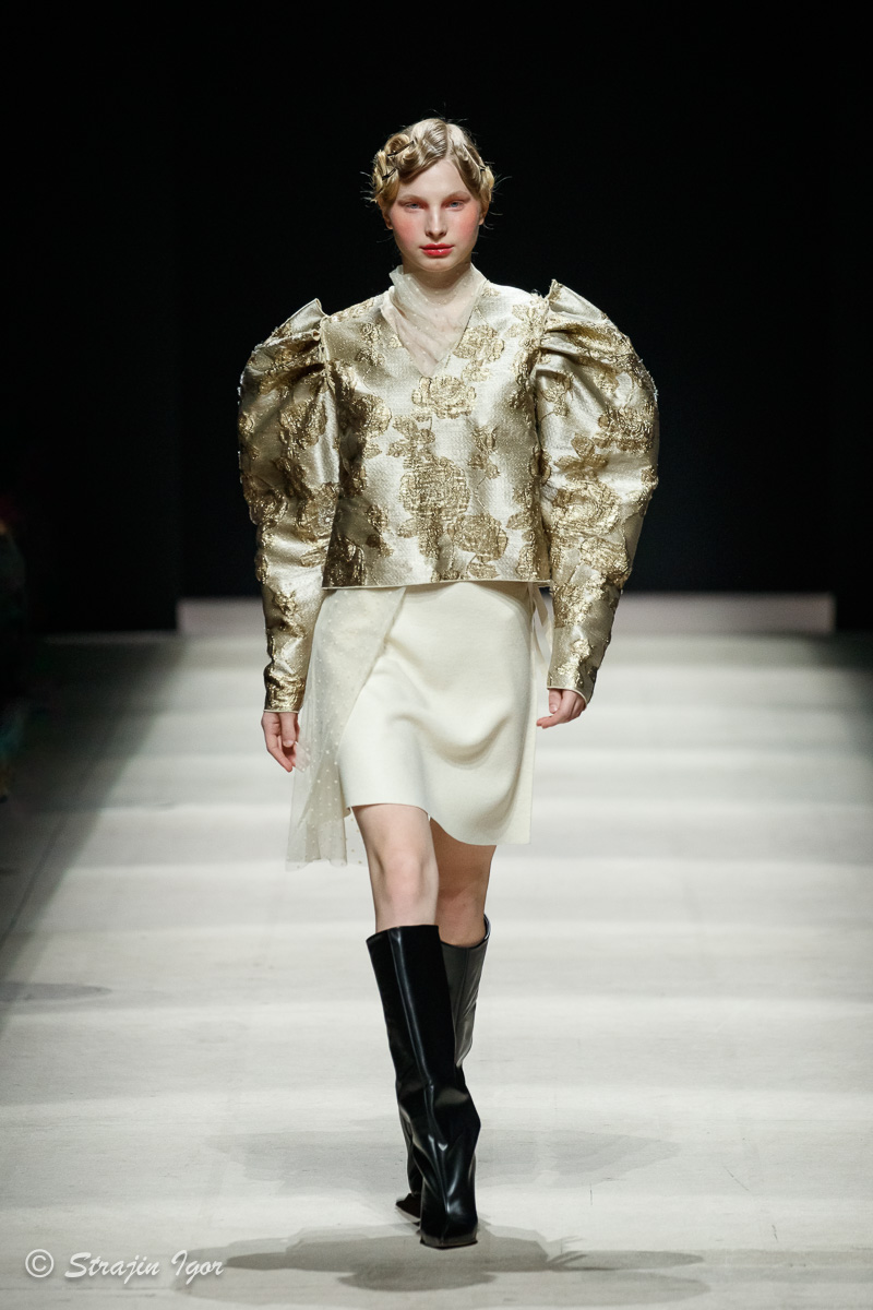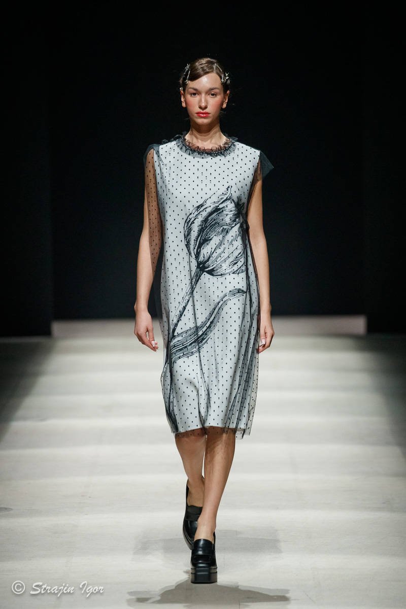 На подиуме в ЦВЗ «Манеж» — будто ожившие страницы прошлого: чёрно-белая палитра, закрытые силуэты, струящийся шёлк, архитектурное кружево, фактуры, в которых читаются фасады старинного имения и даже дикие розы.