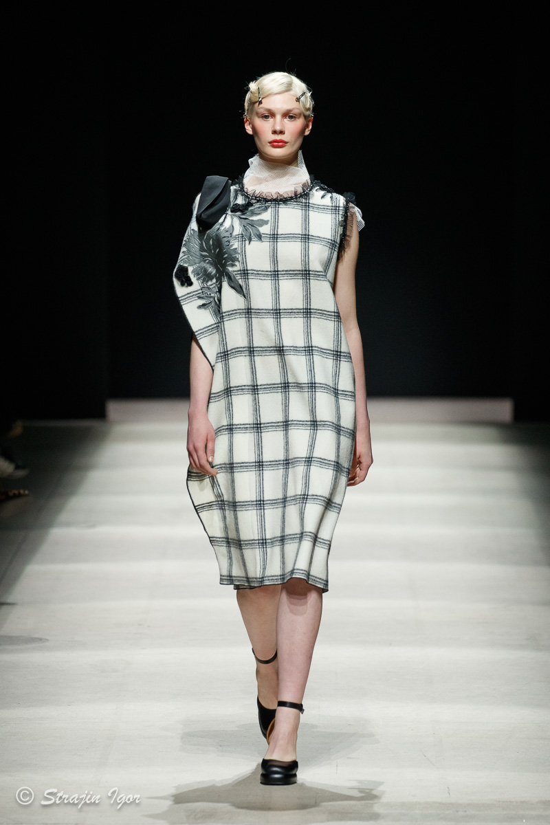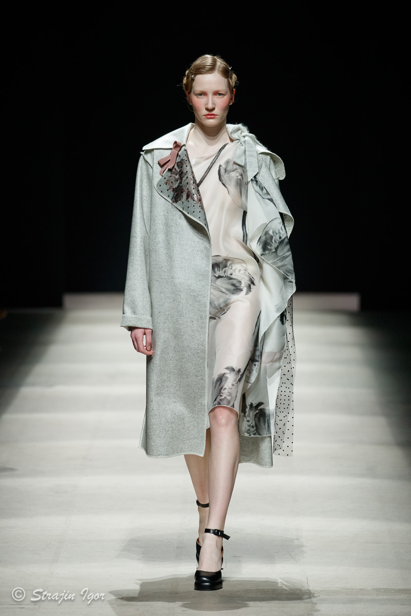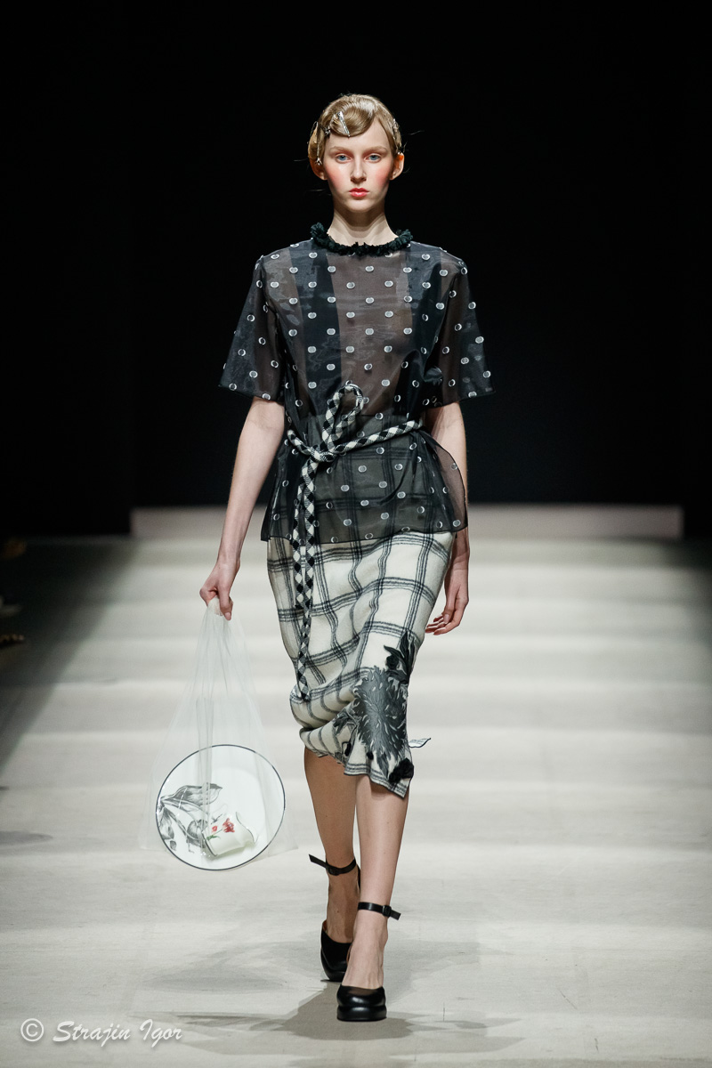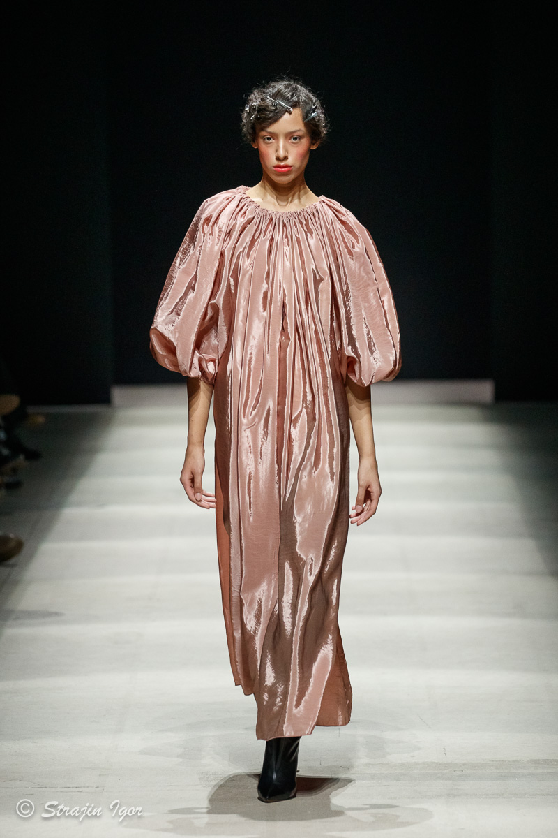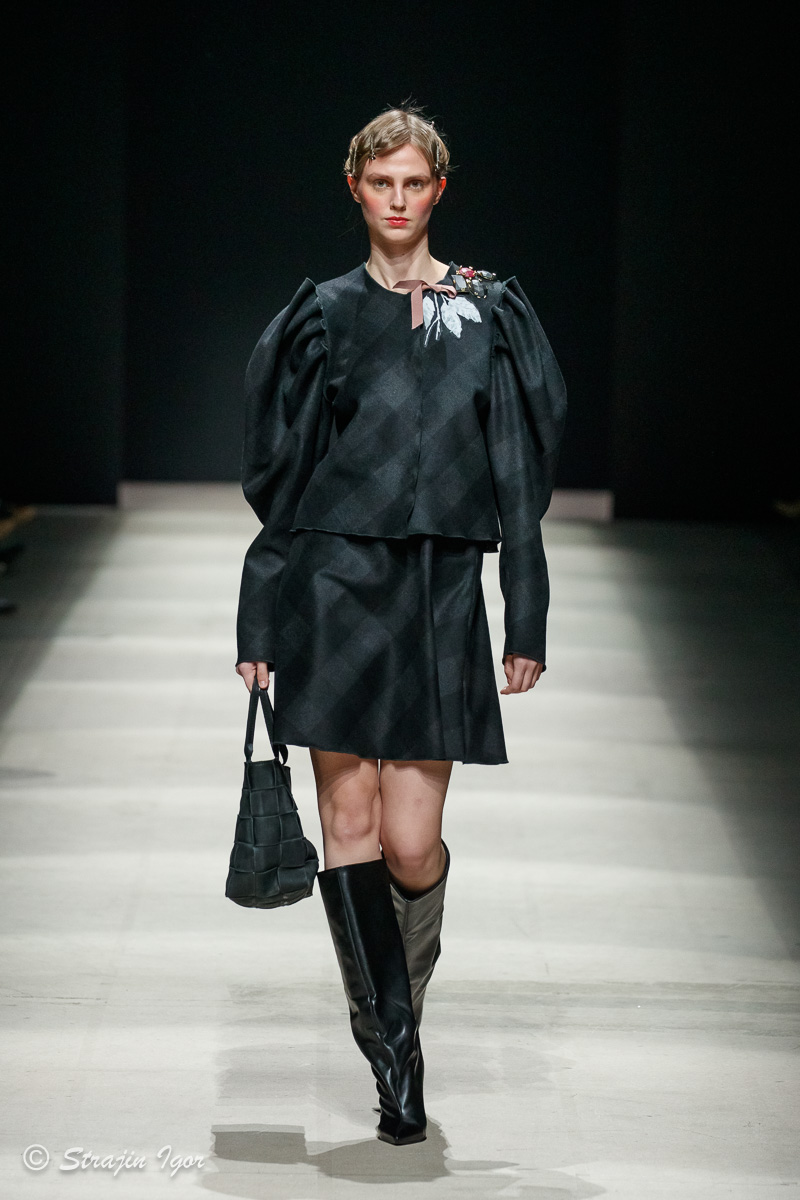 На подиуме в ЦВЗ «Манеж» — будто ожившие страницы прошлого: чёрно-белая палитра, закрытые силуэты, струящийся шёлк, архитектурное кружево, фактуры, в которых читаются фасады старинного имения и даже дикие розы.