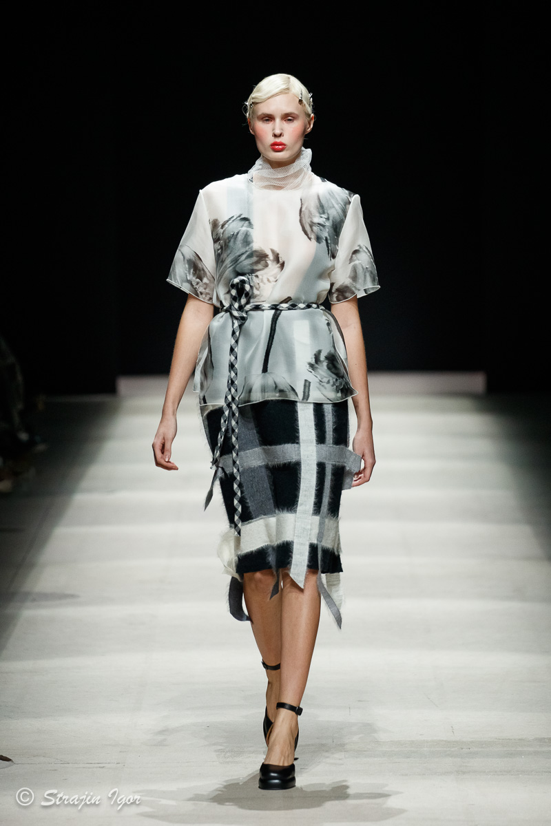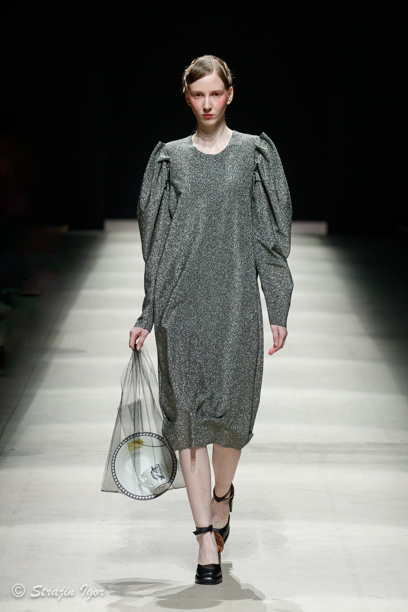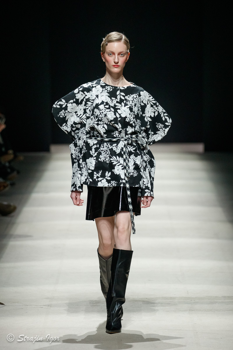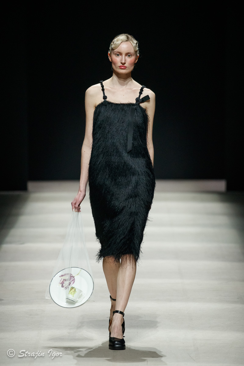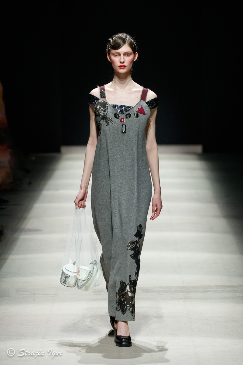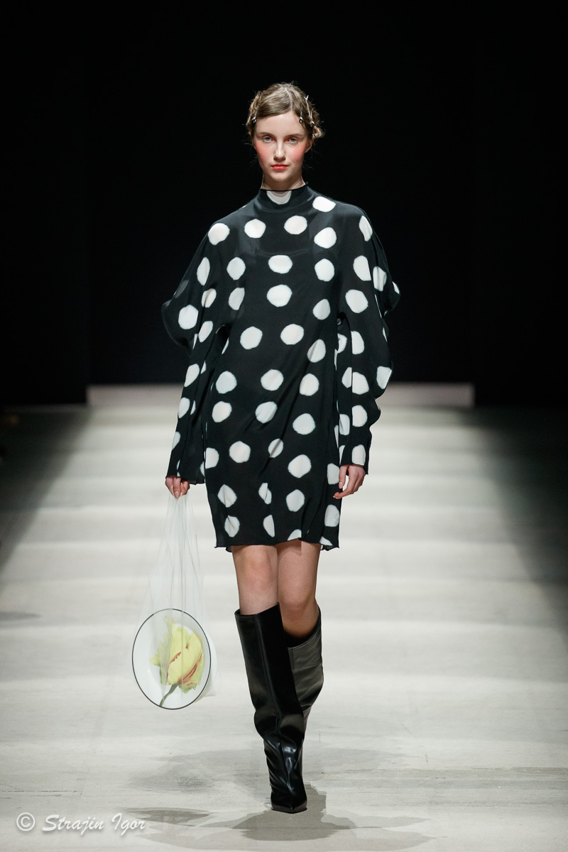 На подиуме в ЦВЗ «Манеж» — будто ожившие страницы прошлого: чёрно-белая палитра, закрытые силуэты, струящийся шёлк, архитектурное кружево, фактуры, в которых читаются фасады старинного имения и даже дикие розы.