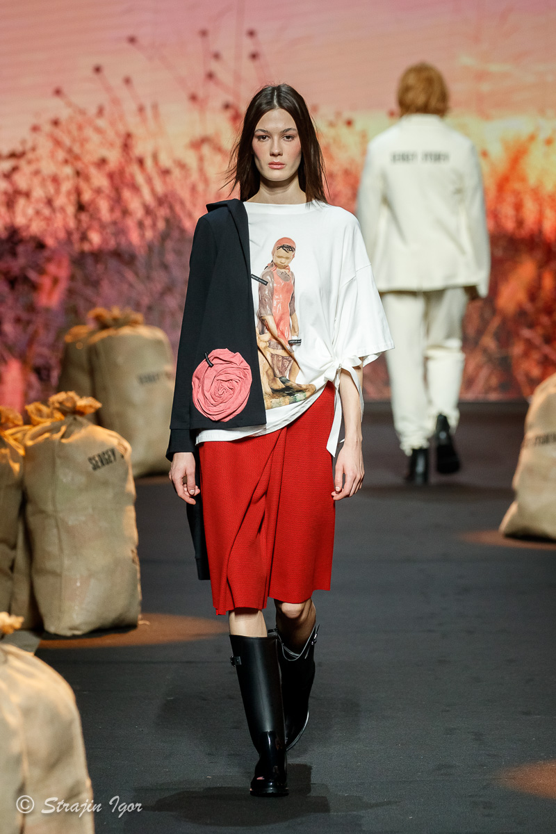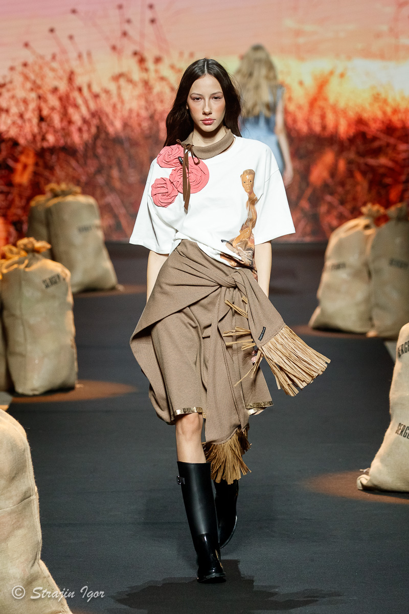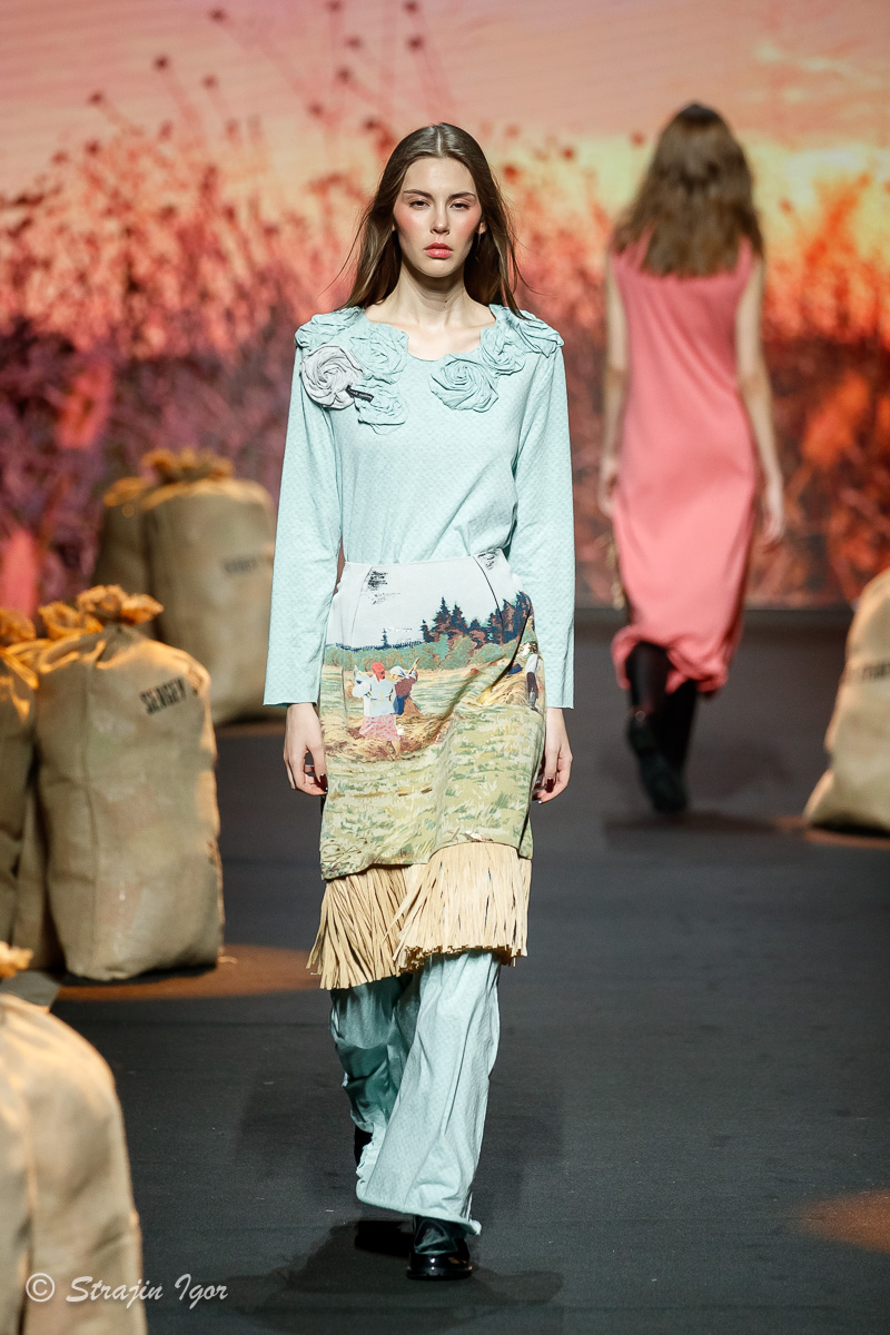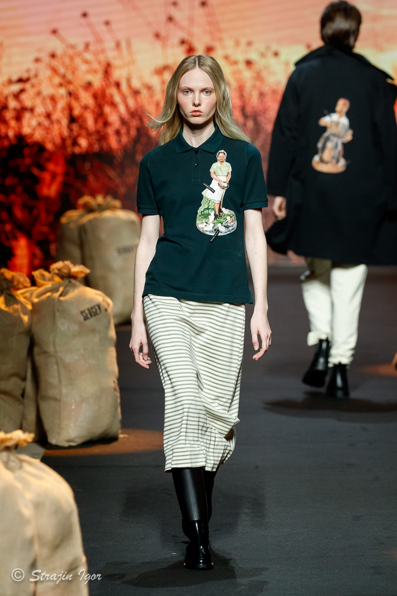 Коллекция дизайнера Сергея Сысоева вдохновлена скульптурами Гжели и других предприятий советского периода 1950-х, на которых изображены механизаторы, швеи, собирательницы хлопка, птичницы и другие. Собственно, яркая национальная самобытность и разнообразие сюжетов в этих работах плавно перетекают в концепцию новой линейки.